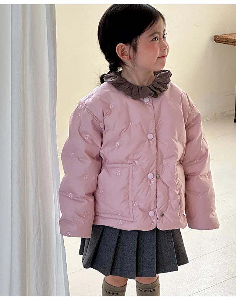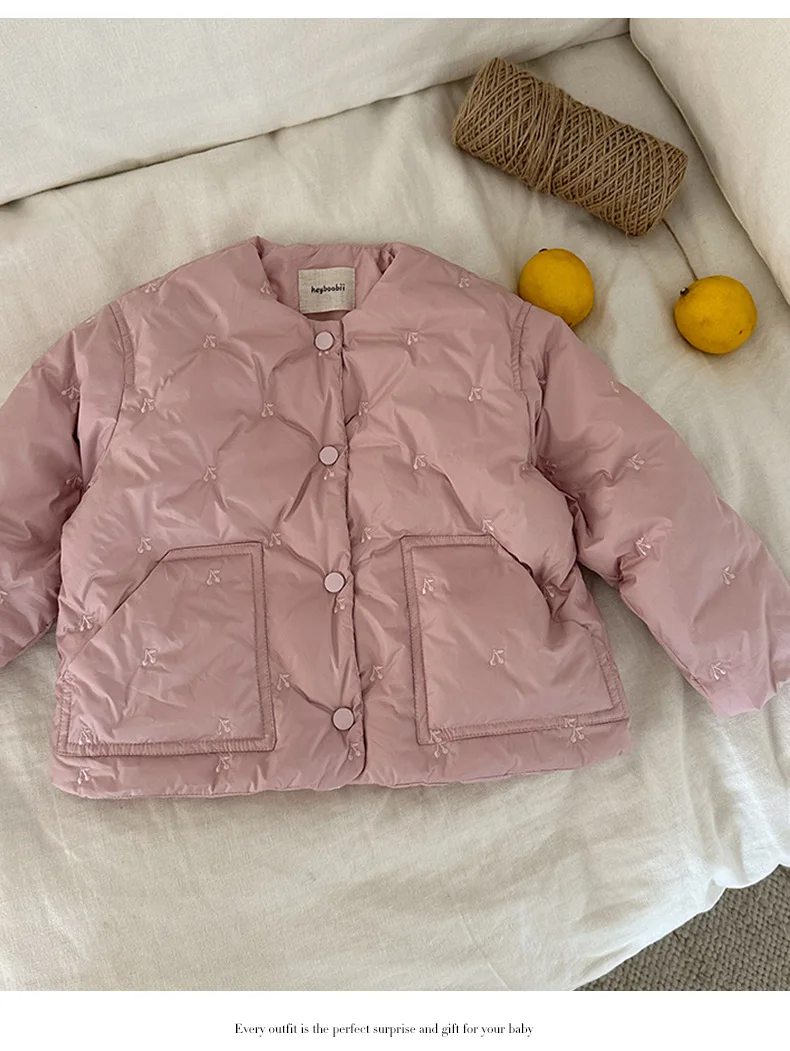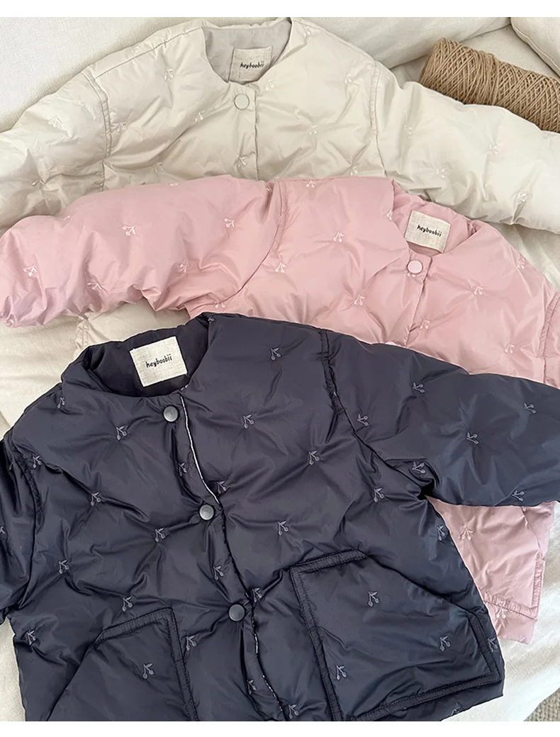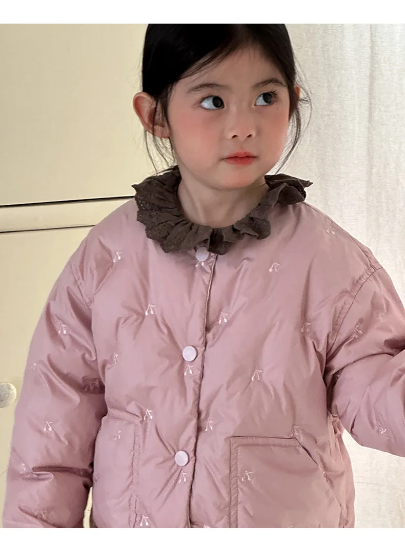 #キッズファッション #チェリー刺繍 #キルティングコート #パデッドジャケット #冬用アウター #韓国子供服 #カジュアルスタイル