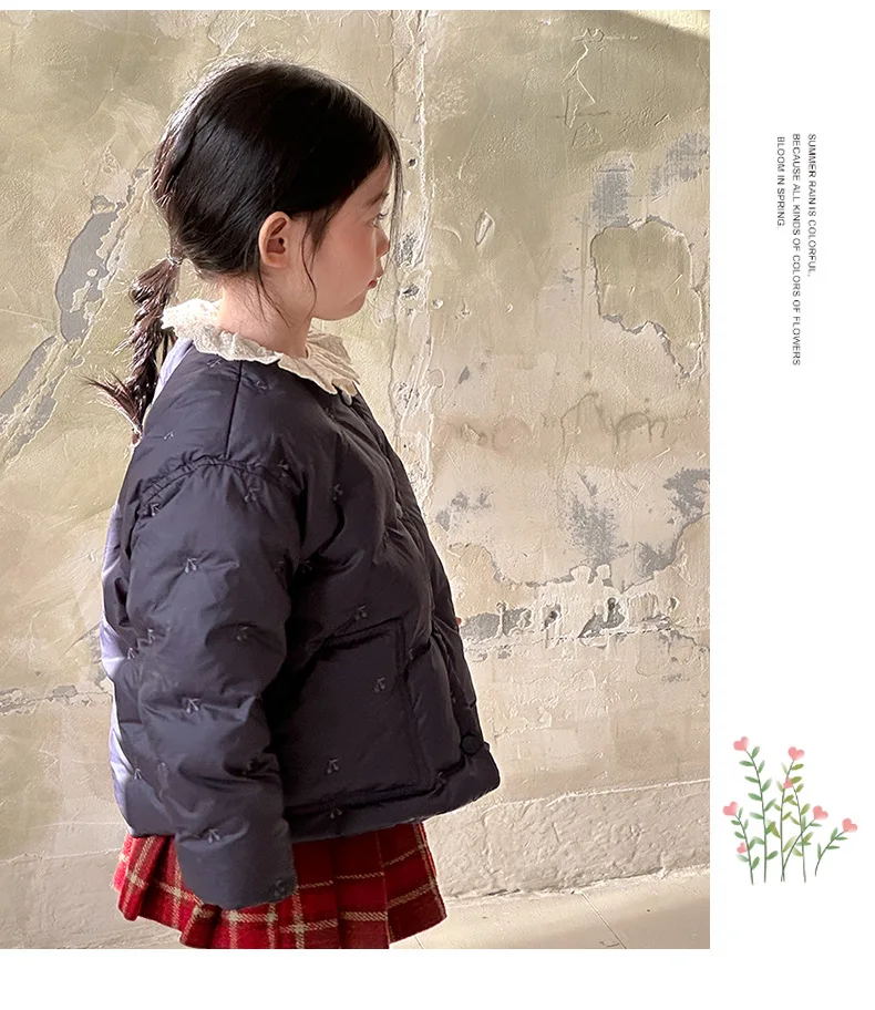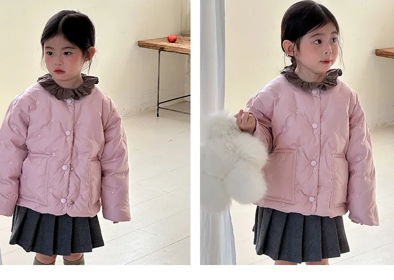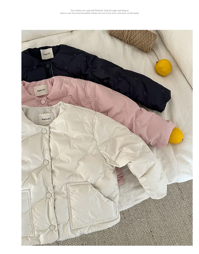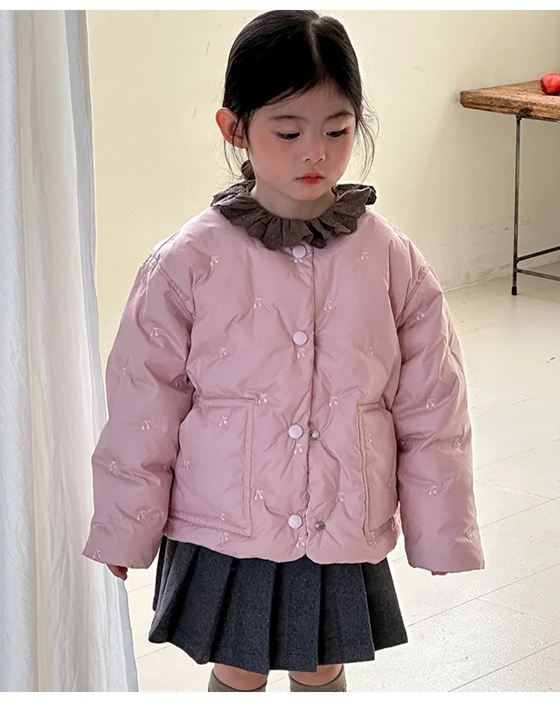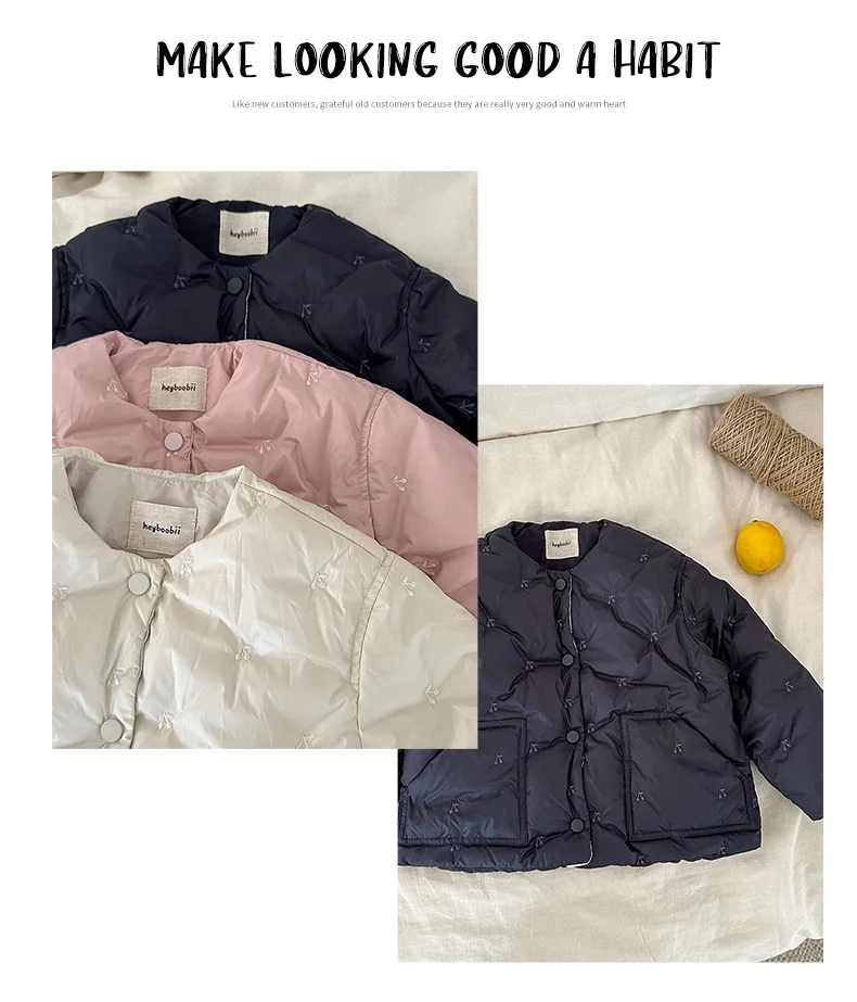#キッズファッション #チェリー刺繍 #キルティングコート #パデッドジャケット #冬用アウター #韓国子供服 #カジュアルスタイル