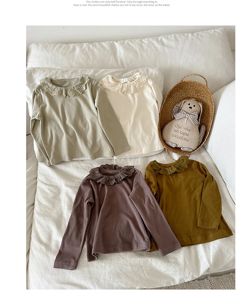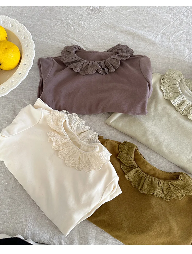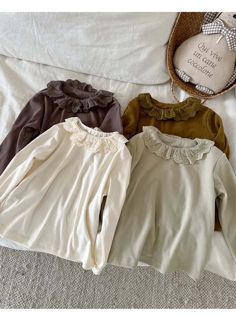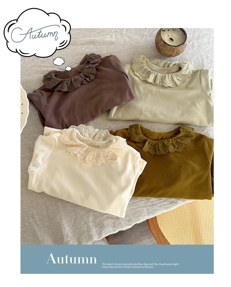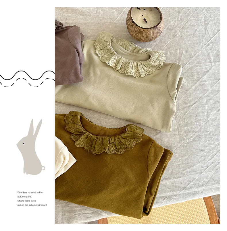 #キッズファッション #ラッフルレース襟 #長袖Tシャツ #冬用トップス #韓国子供服 #エレガントスタイル #カジュアルフォーマル