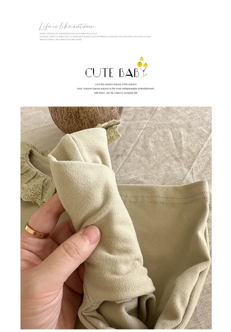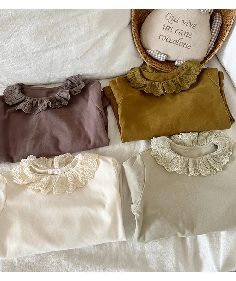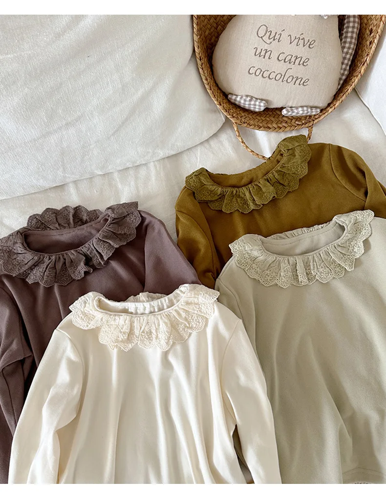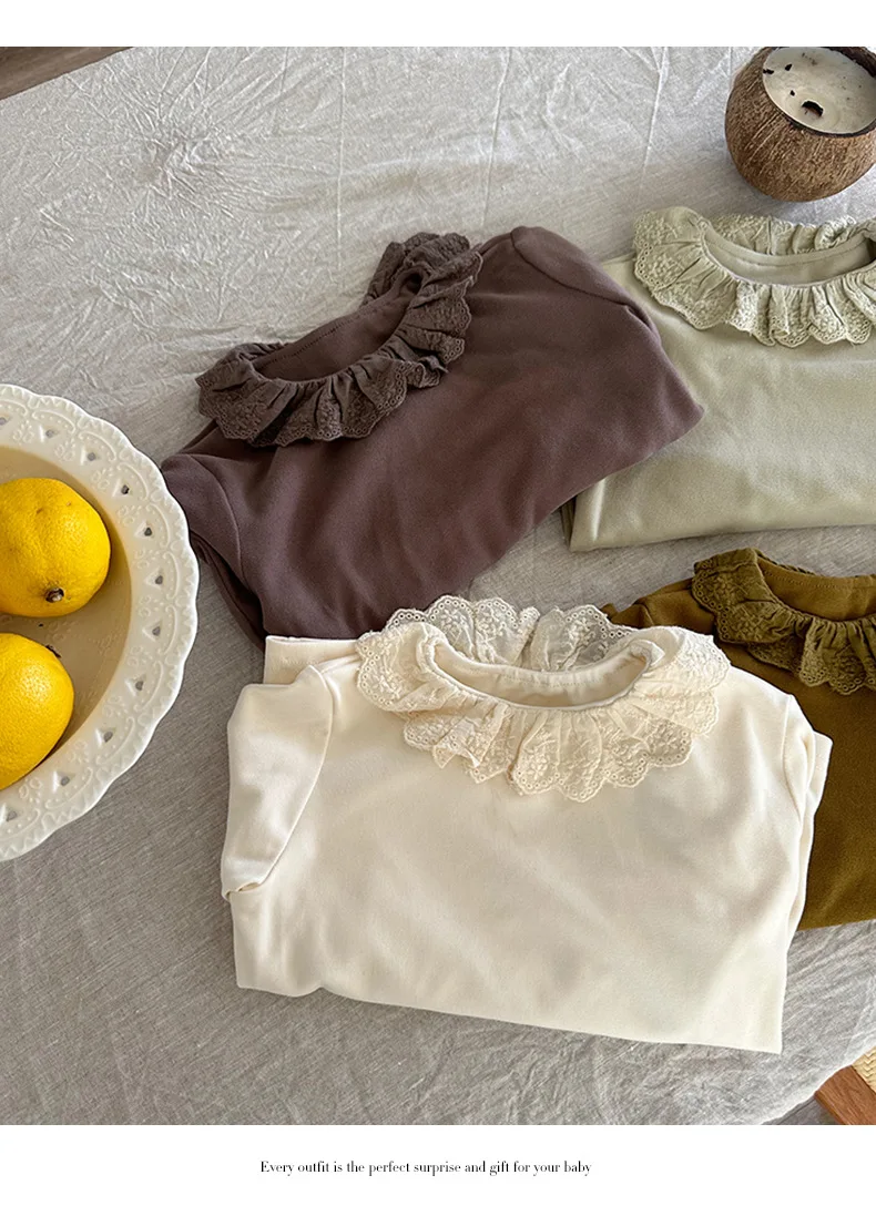 #キッズファッション #ラッフルレース襟 #長袖Tシャツ #冬用トップス #韓国子供服 #エレガントスタイル #カジュアルフォーマル