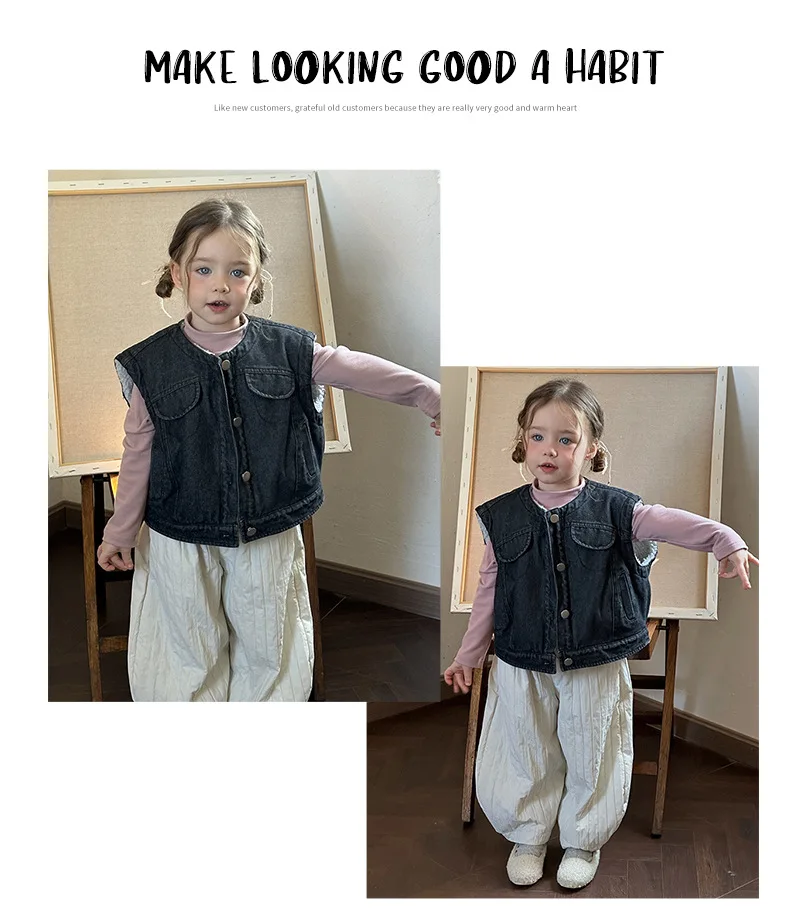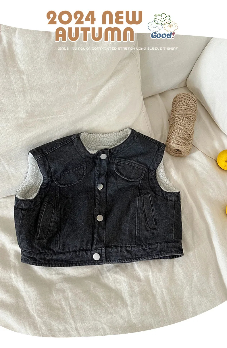 キッズベスト 裏ボアフリースデニムベスト【mh0008246】