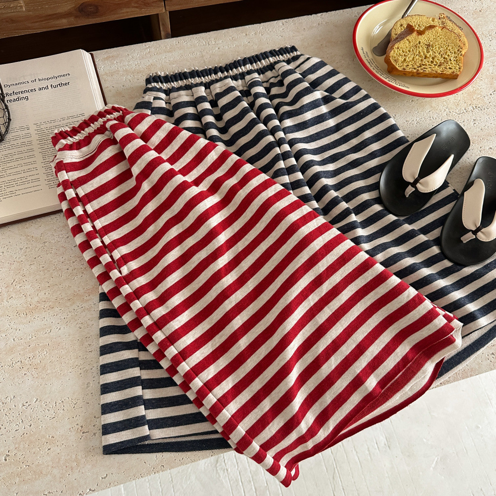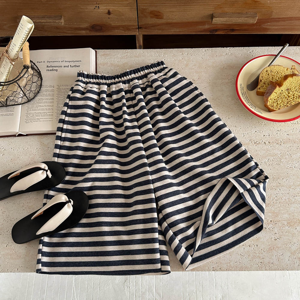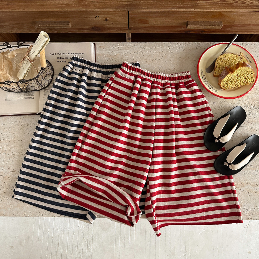 ボーダーワイドルーズクロップドパンツ【mh0010065】
