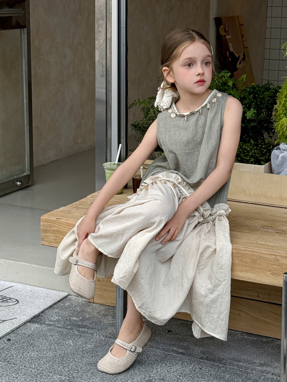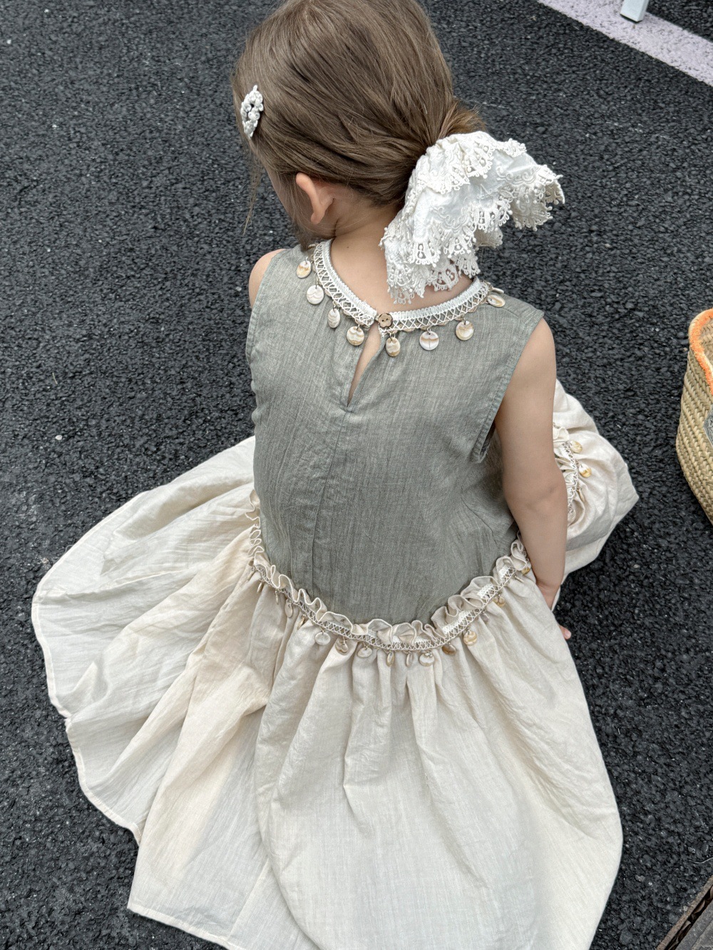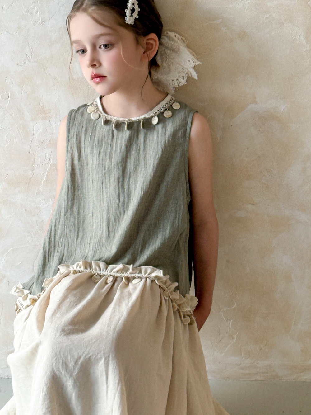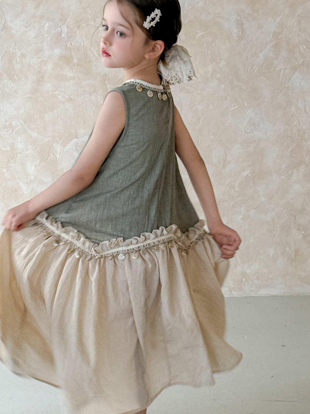 涼しげなノースリーブデザインで、暑い日でもお子さんは快適に過ごせます。最大の特徴は、胸元や裾にあしらわれたタッセルとフリル。コントラストカラーの組み合わせが、おしゃれで個性的な印象を与えます。ゆったりとしたシルエットで動きやすく、普段使いはもちろん、ビーチや旅行など、リゾートシーンにも活躍するでしょう。