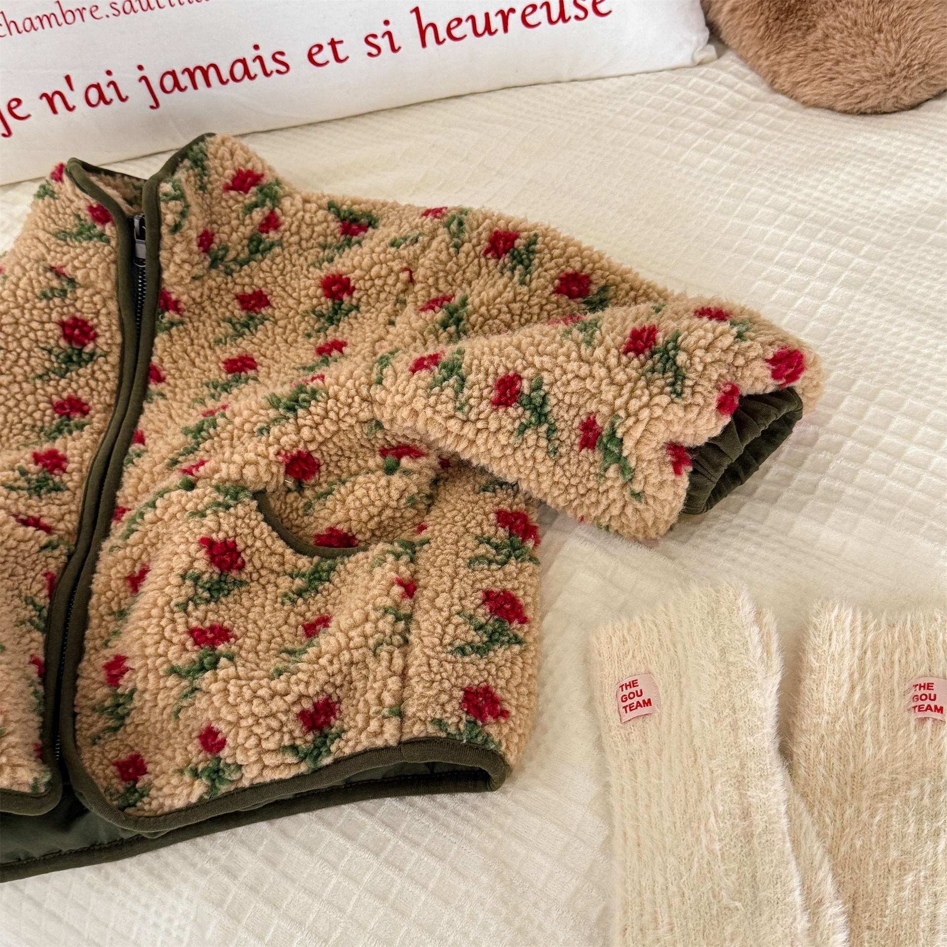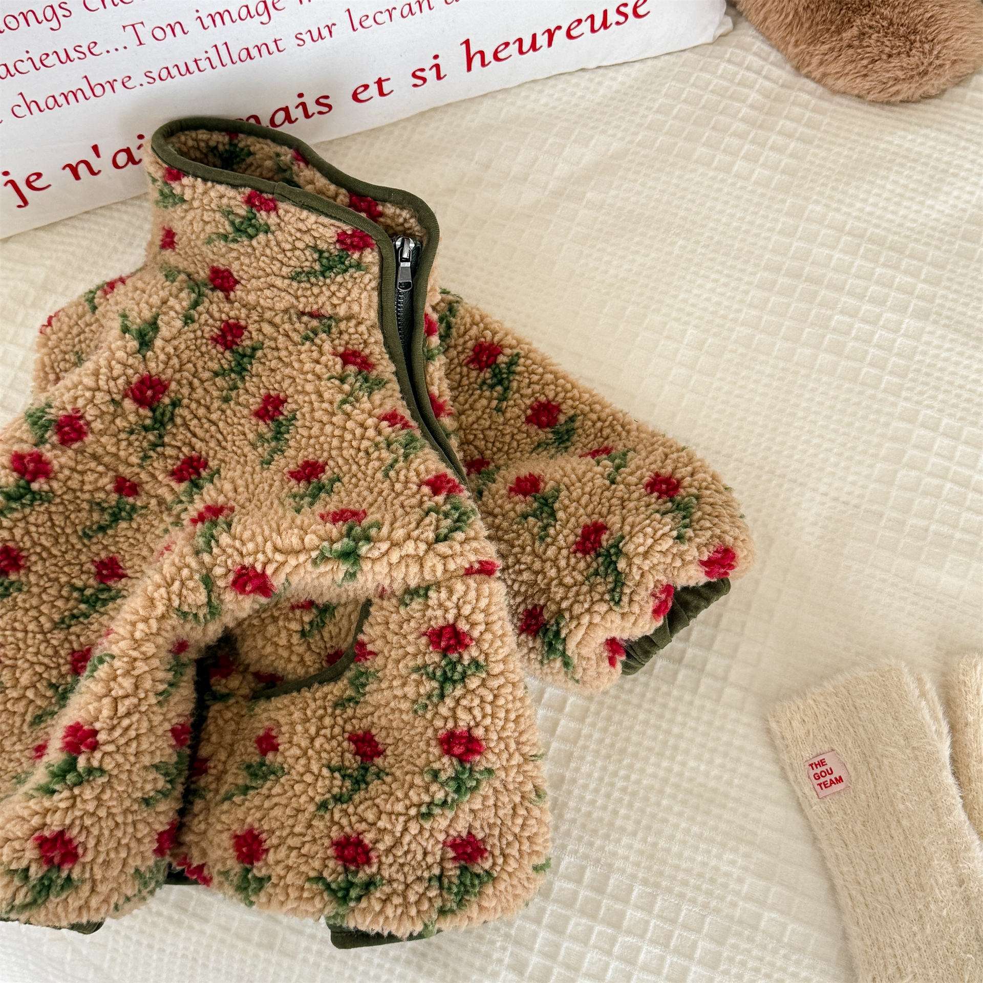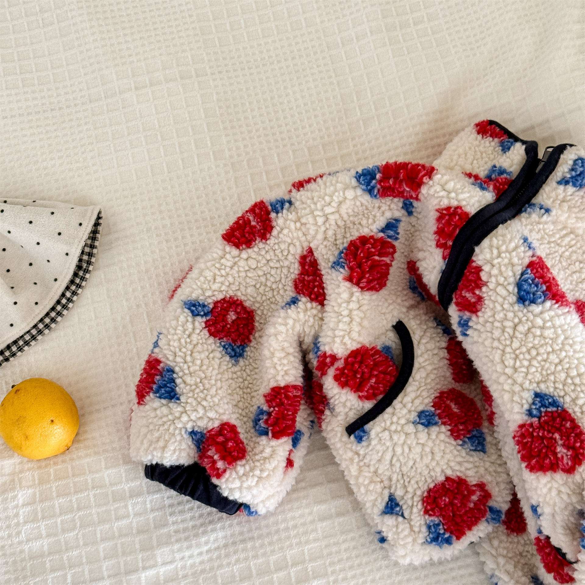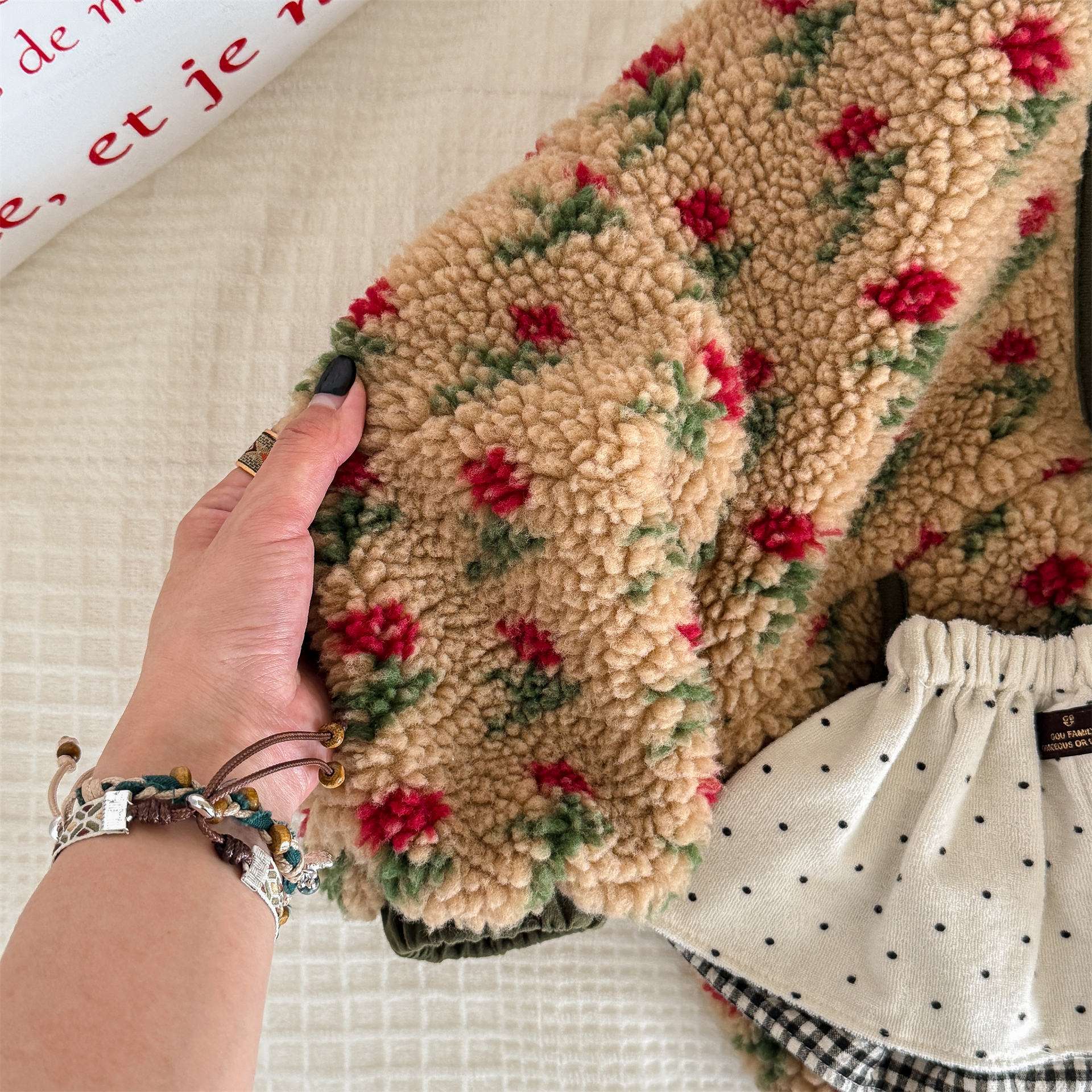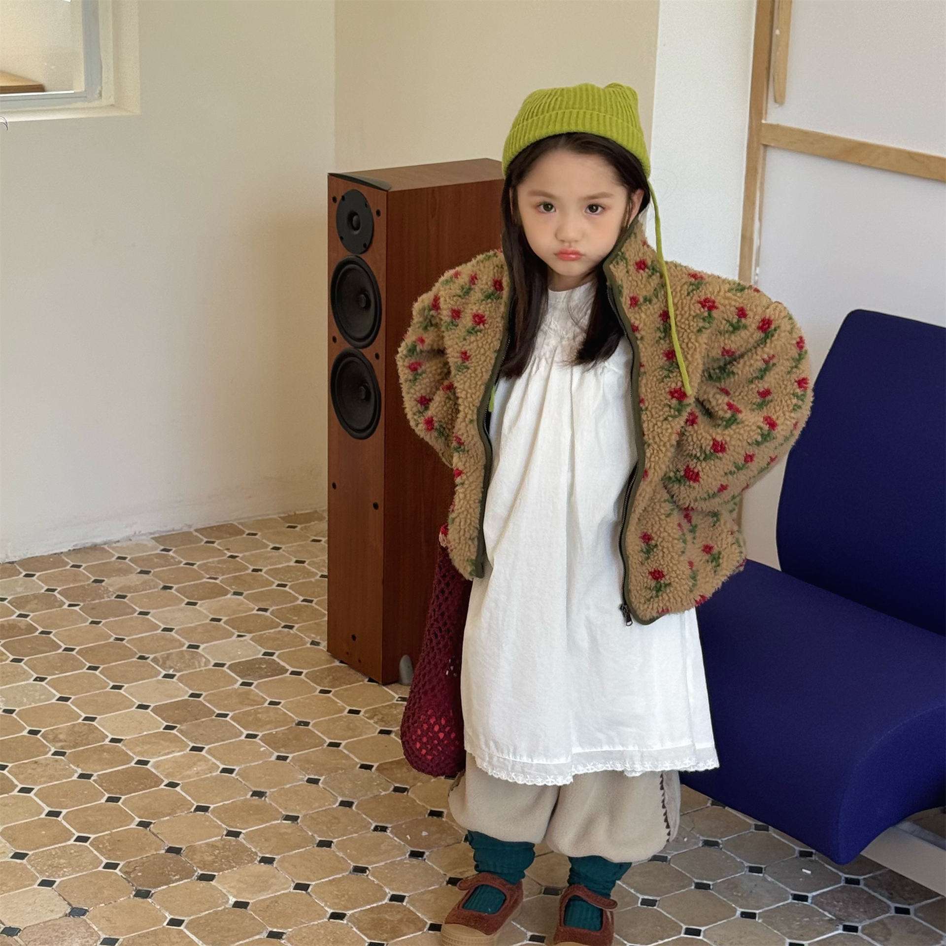 華やかな花柄とふわふわのシープボアが織りなすフリースジャケットは、ベビーの装いに愛らしい魅力を添える一着です。たっぷりの厚みがあるもこもこアウターが、冷たい風からしっかりと守り、おしゃれな防寒対策を叶えます。このキュートなコートは、ベビー服のコーディネートに上品さと暖かさをプラスする、冬のお出かけに欠かせないアイテムです。