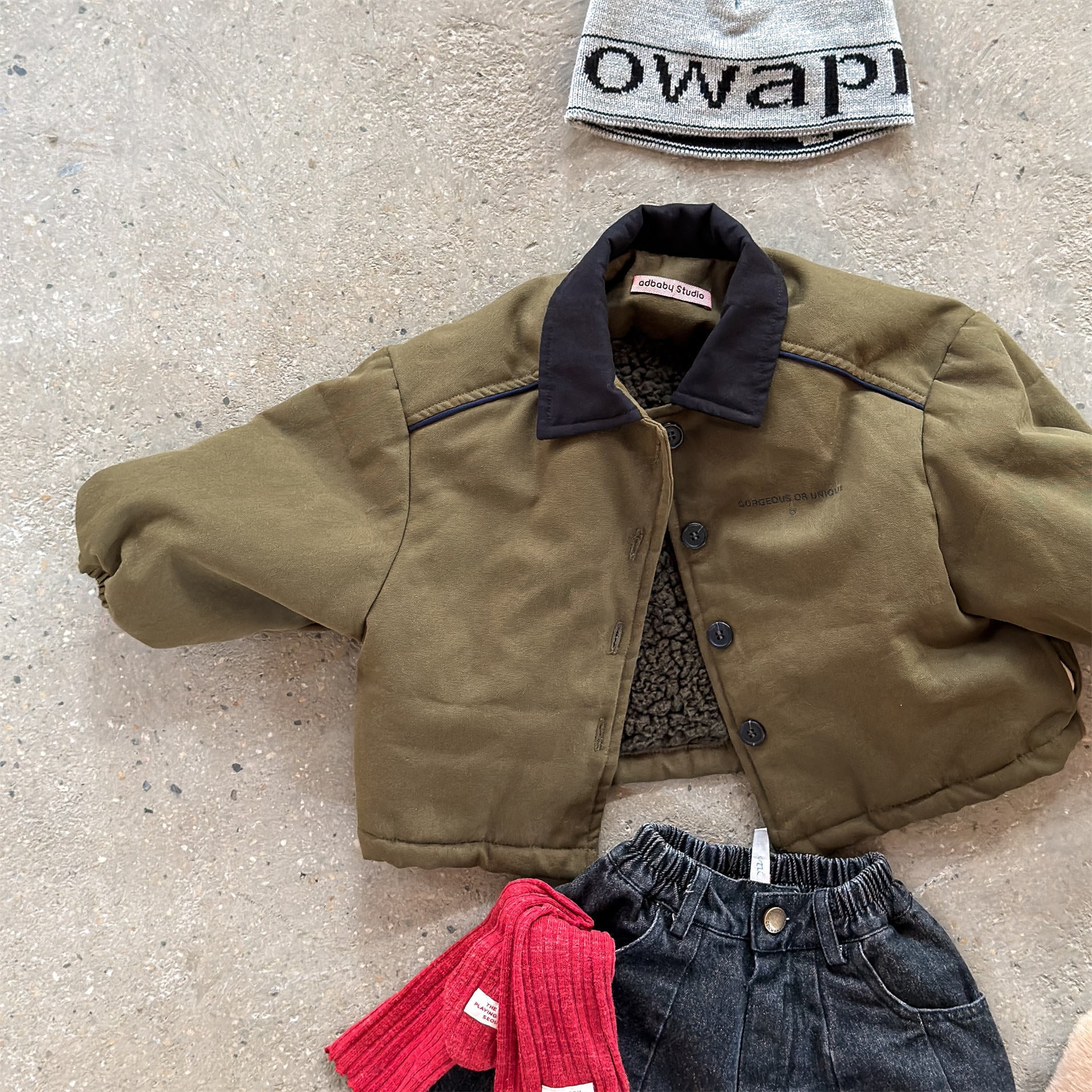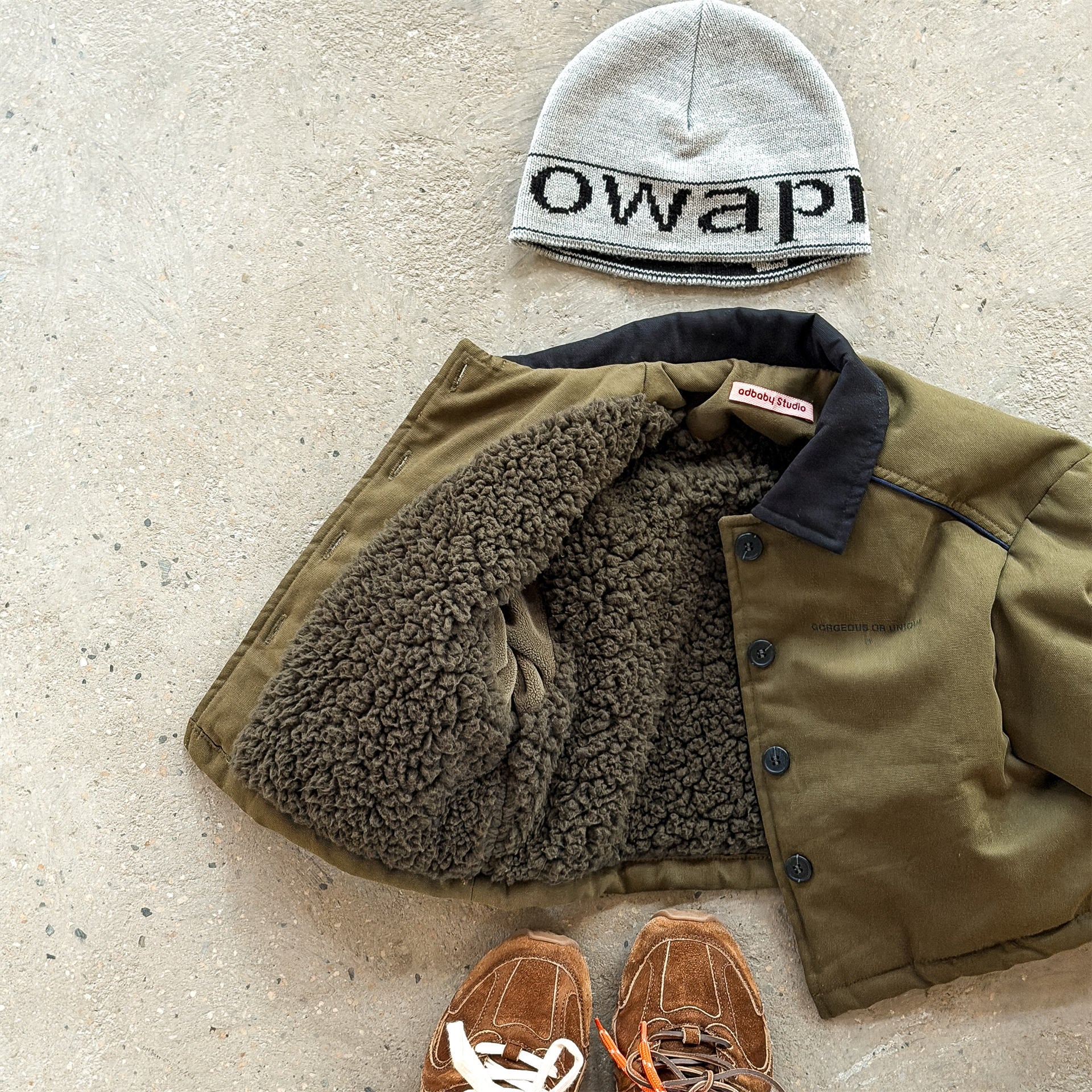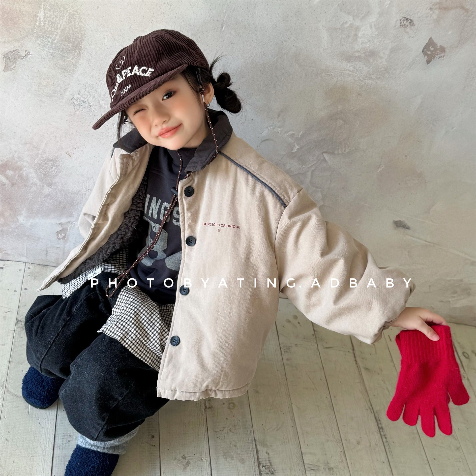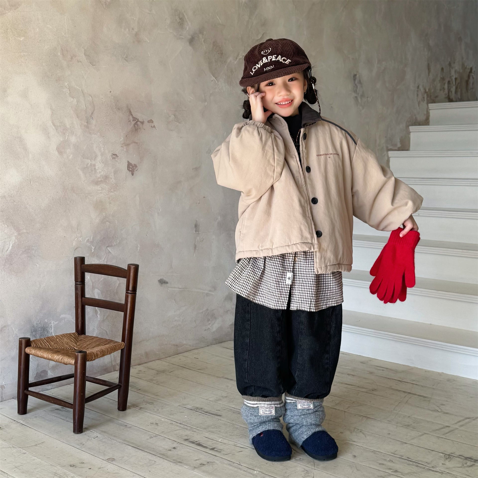 タフなワークテイストを取り入れたデザインが目を引く、ストリートカジュアルな中綿ジャケットです。内側は暖かなボア裏地で仕上げられ、おしゃれを楽しみながらベビーや子どもたちを寒さから守る機能的なアウターです。立体感のあるカーゴポケットや丸みを帯びたシルエットが、着るだけで洗練されたおしゃれな雰囲気を演出します。