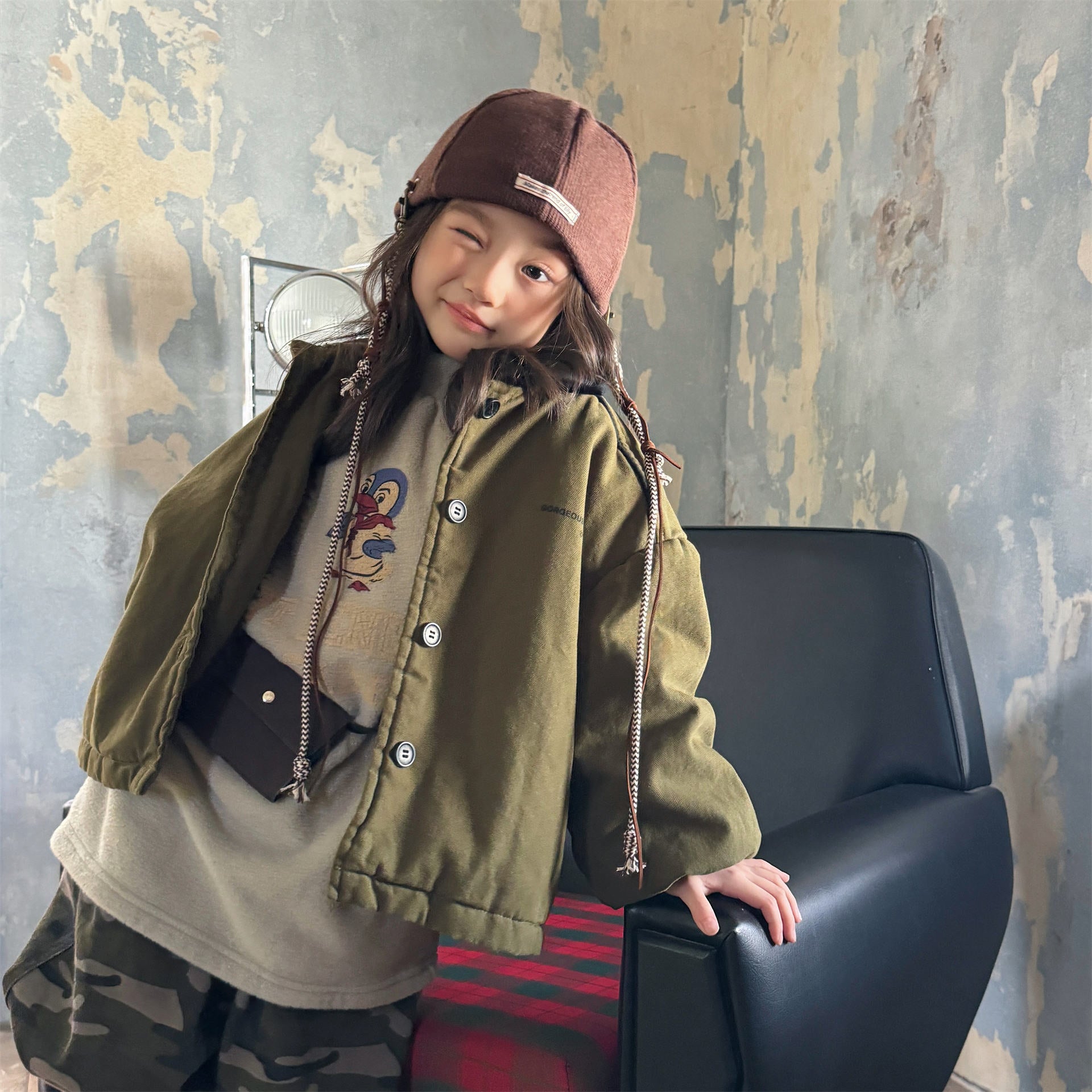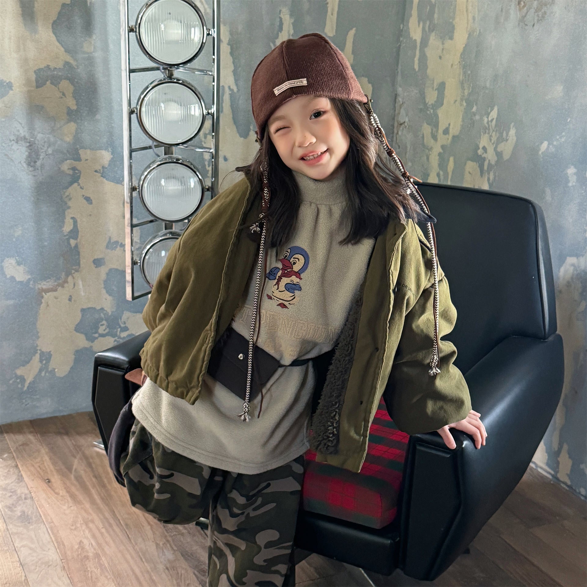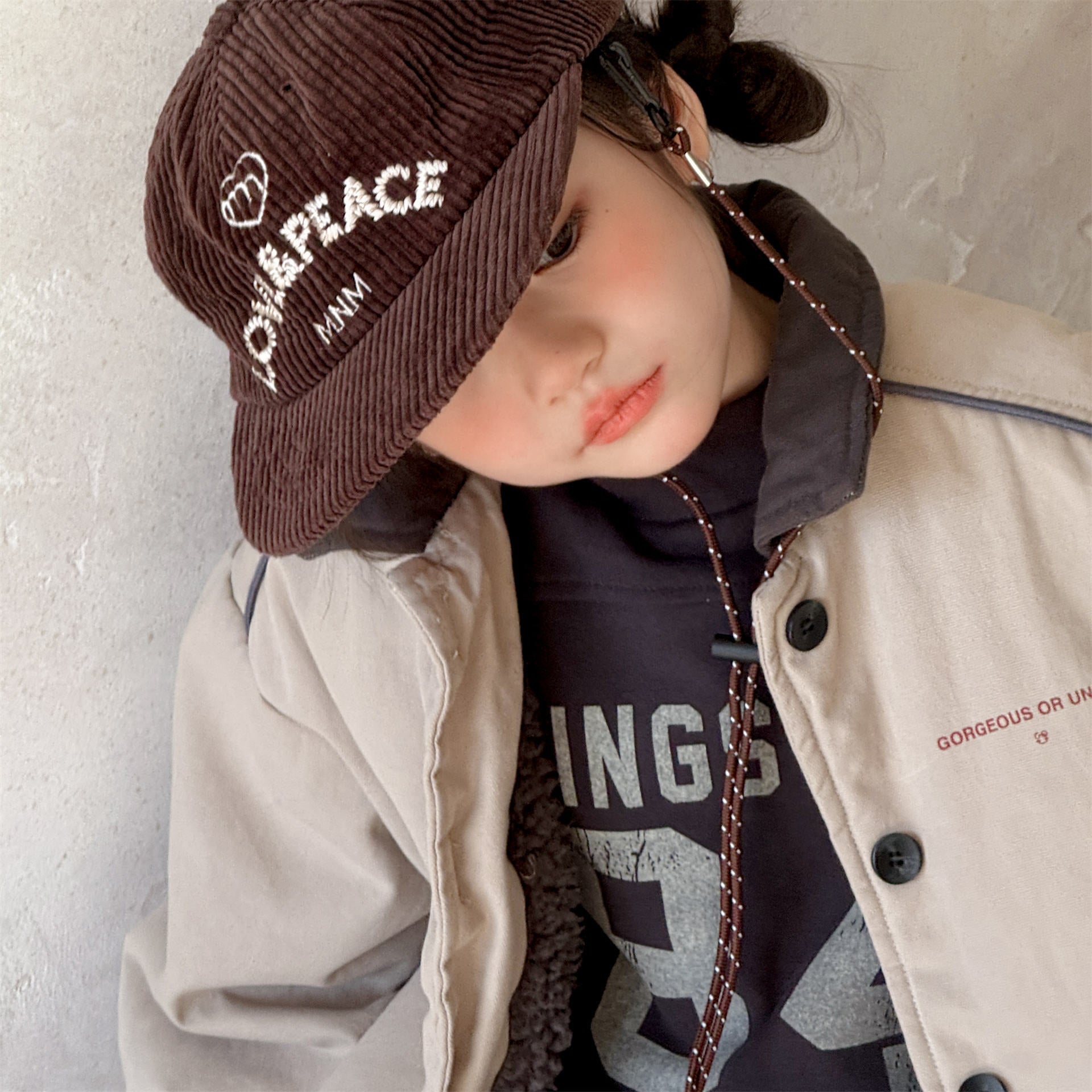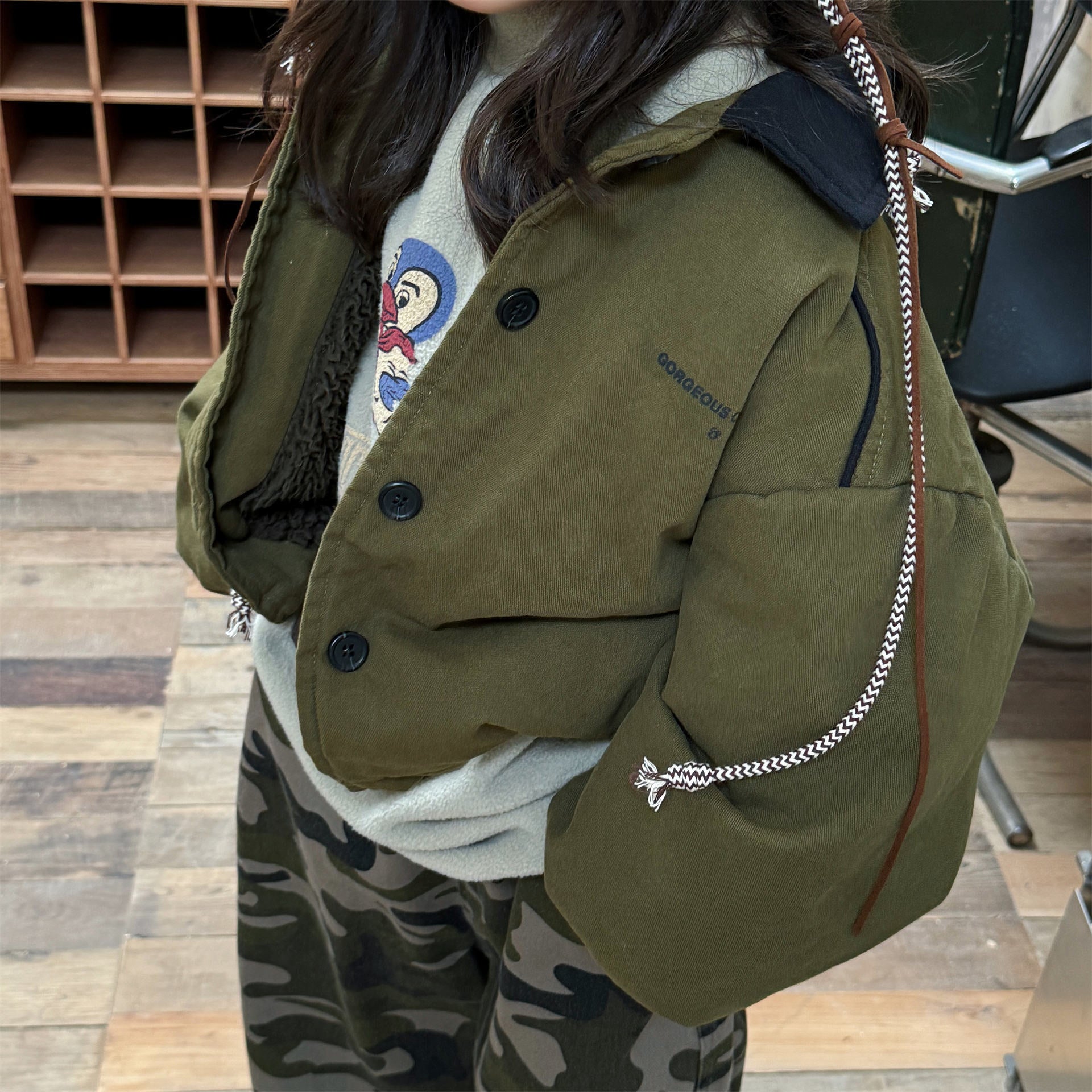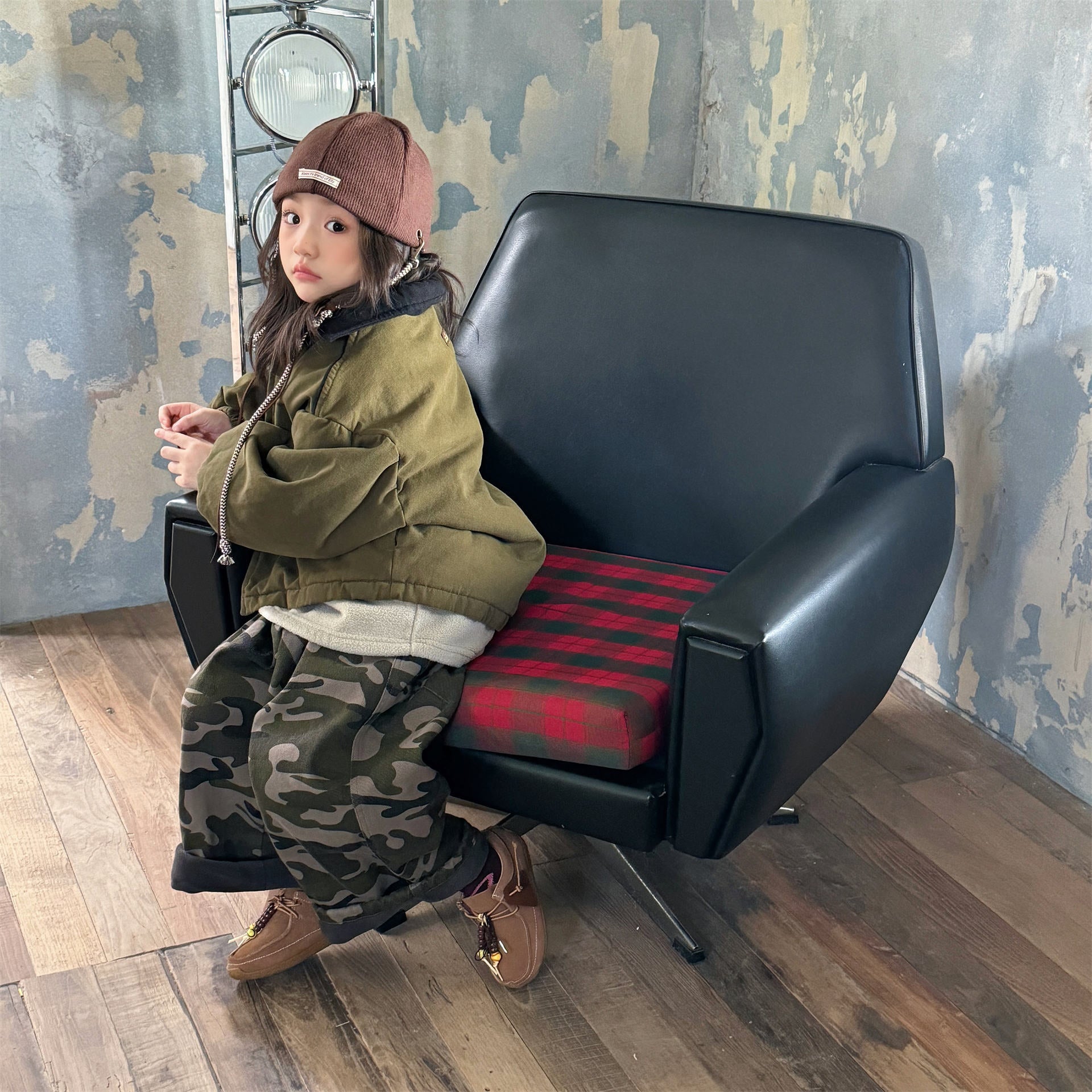 タフなワークテイストを取り入れたデザインが目を引く、ストリートカジュアルな中綿ジャケットです。内側は暖かなボア裏地で仕上げられ、おしゃれを楽しみながらベビーや子どもたちを寒さから守る機能的なアウターです。立体感のあるカーゴポケットや丸みを帯びたシルエットが、着るだけで洗練されたおしゃれな雰囲気を演出します。