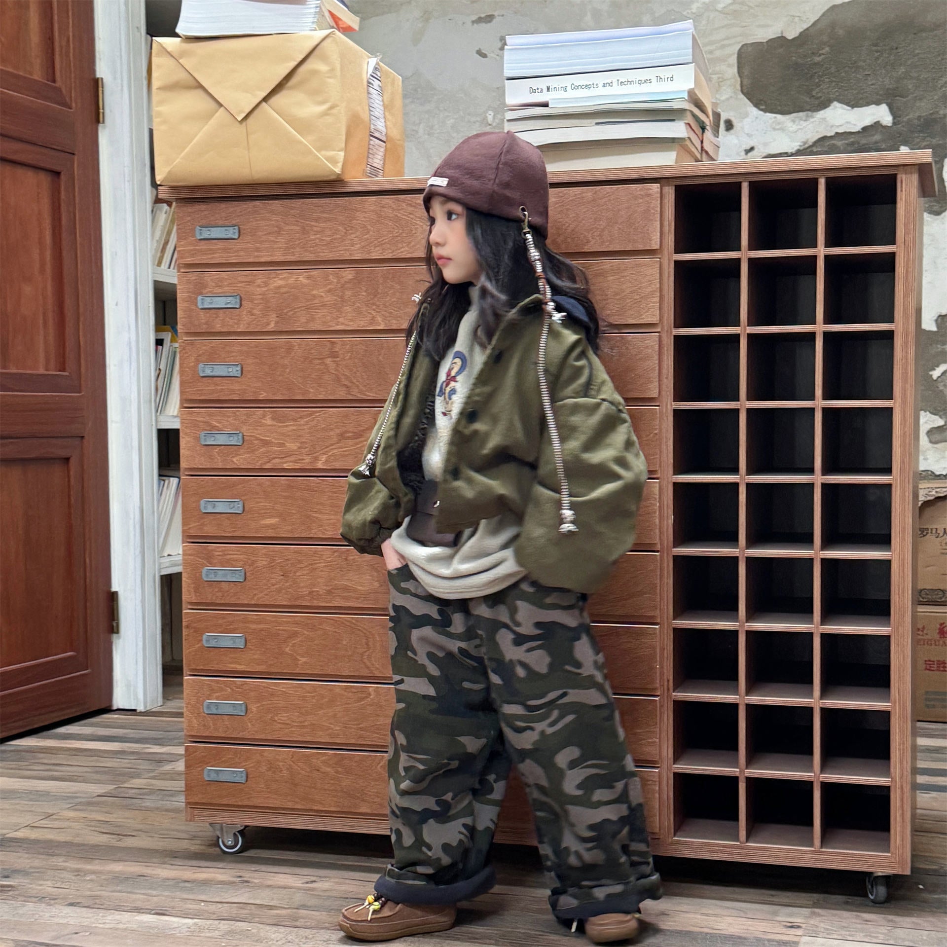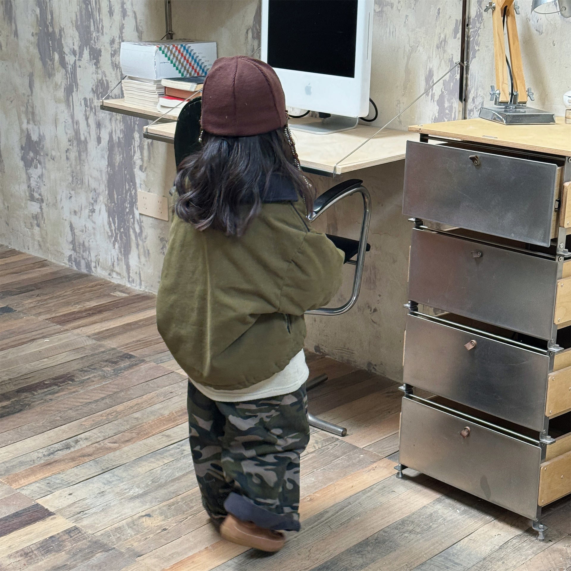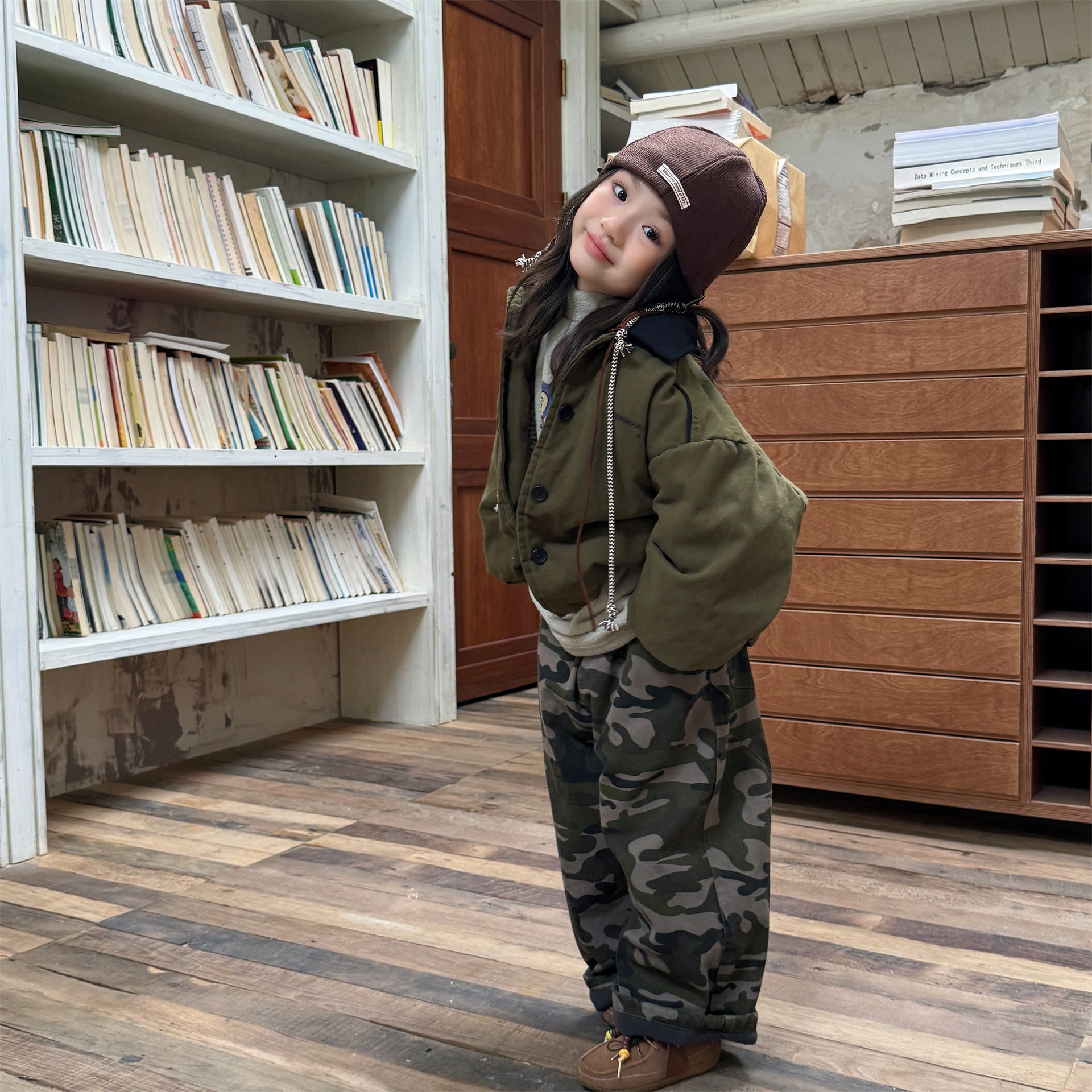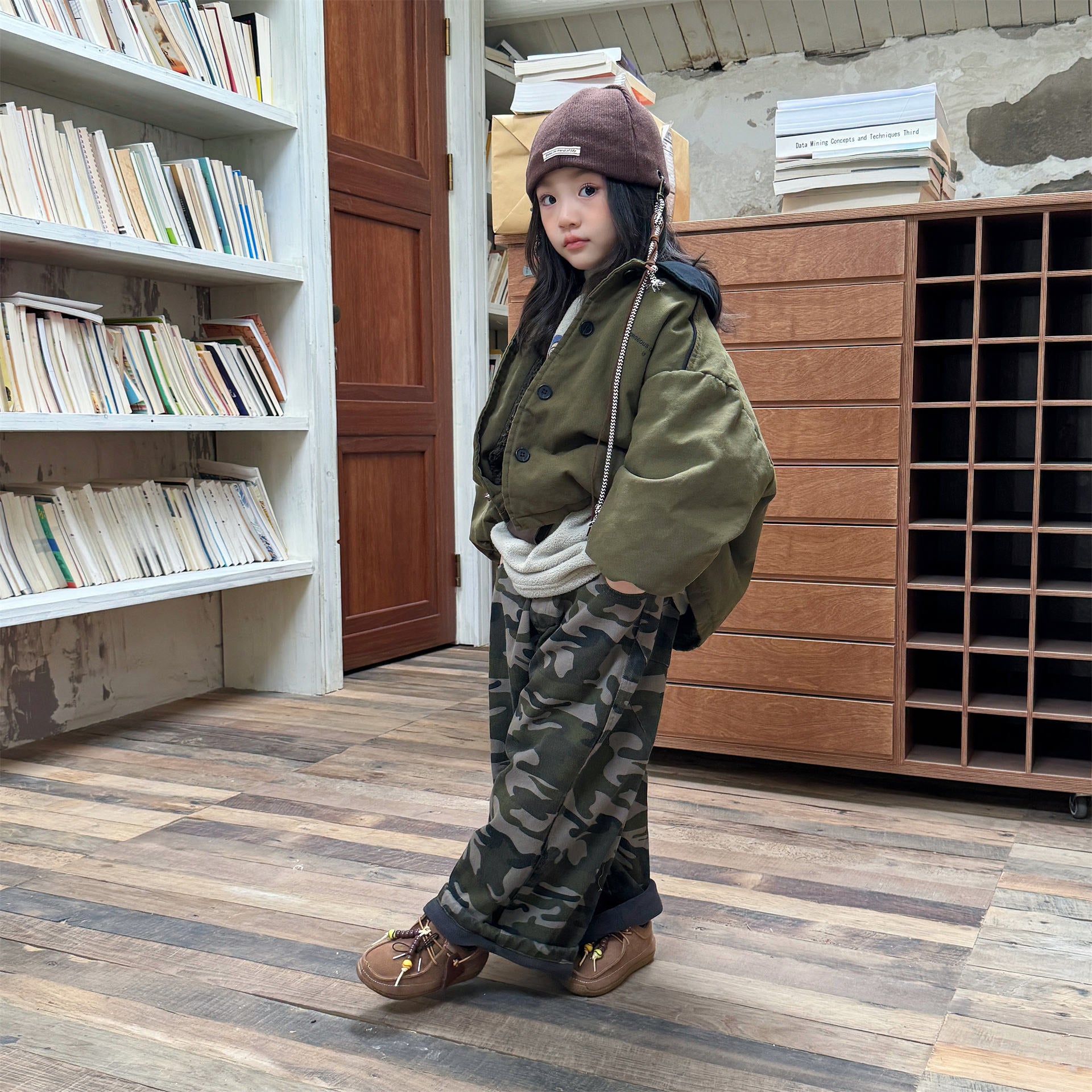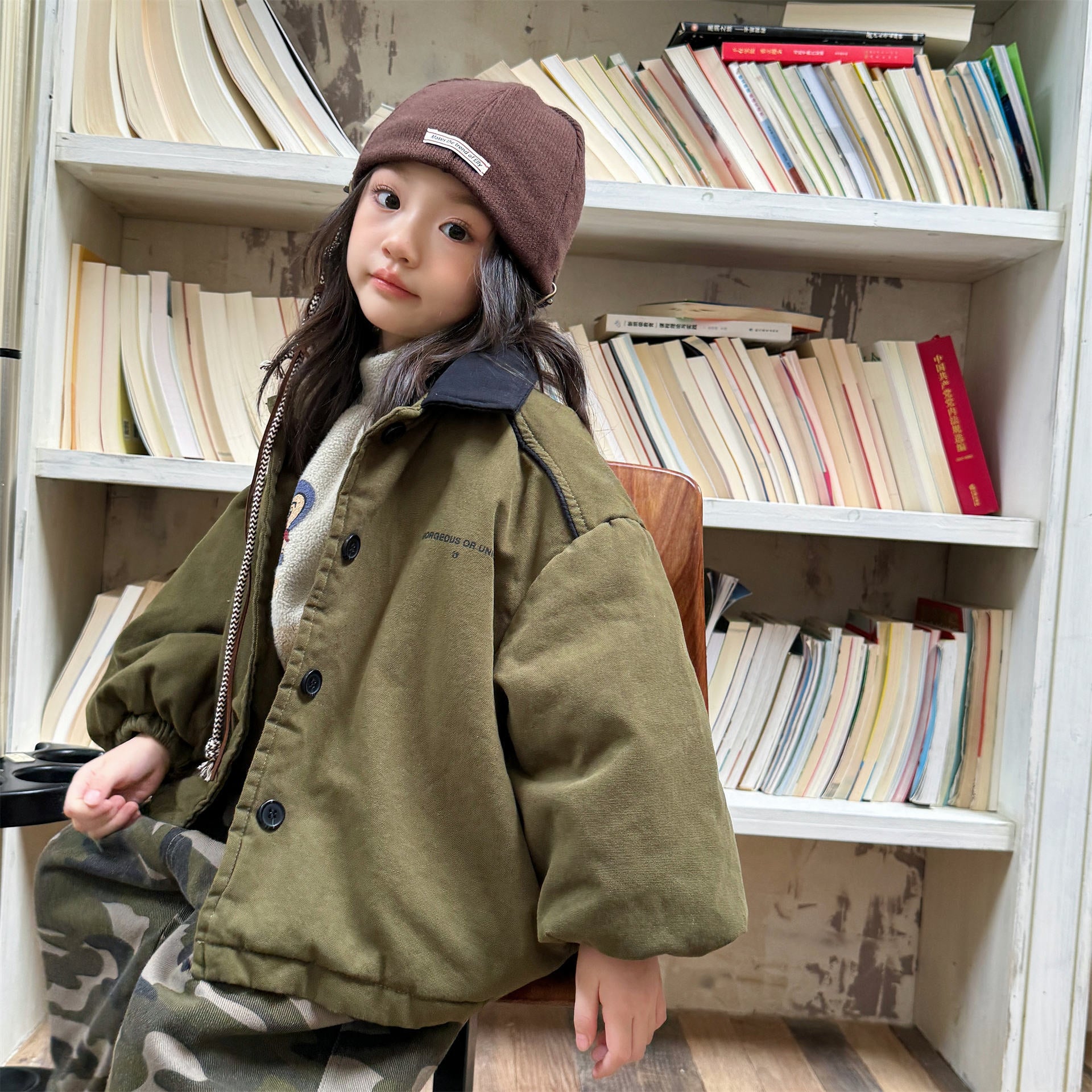 タフなワークテイストを取り入れたデザインが目を引く、ストリートカジュアルな中綿ジャケットです。内側は暖かなボア裏地で仕上げられ、おしゃれを楽しみながらベビーや子どもたちを寒さから守る機能的なアウターです。立体感のあるカーゴポケットや丸みを帯びたシルエットが、着るだけで洗練されたおしゃれな雰囲気を演出します。