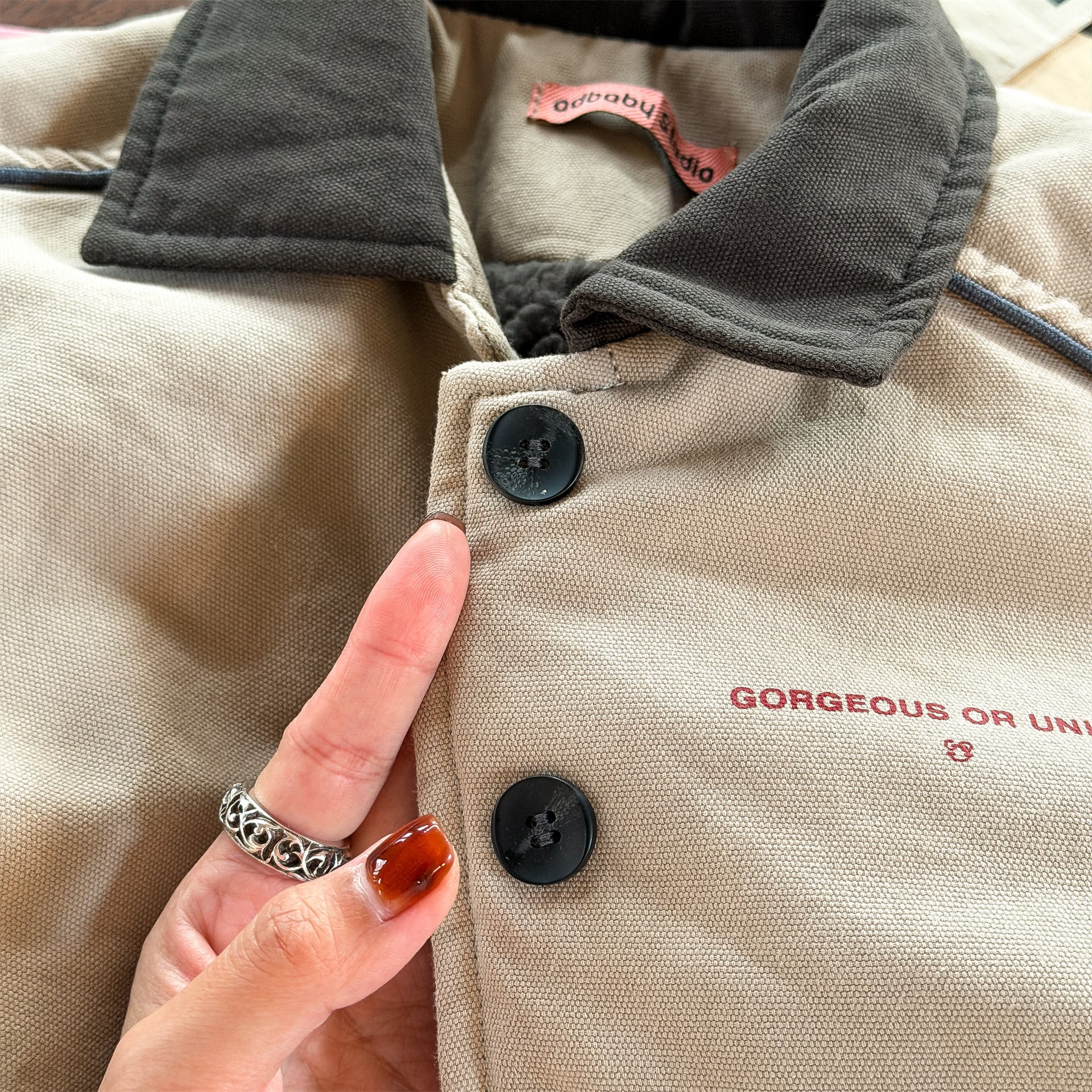 ・ ボタンやフックの縫い付けが甘く取れてしまう場合がございます。