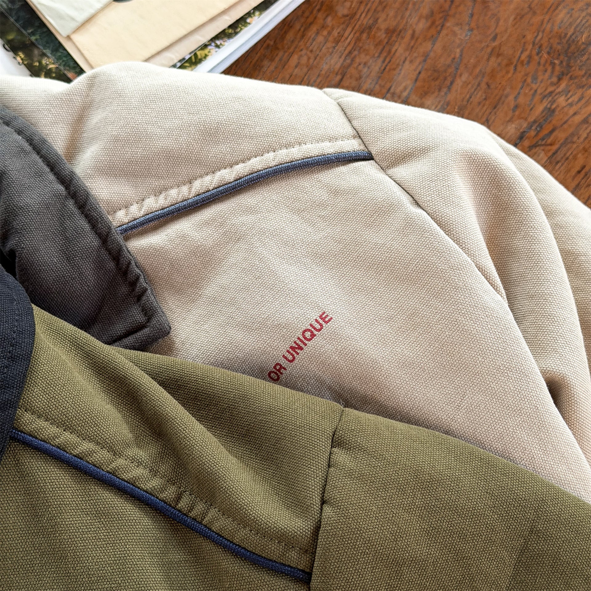 *海外製品は日本製品と比べ、使用生地が薄く、使用糸も細い場合が多いため、ほつれ(裏地のロックミシンの糸端の処理はされなず飛び出したままが非常に多いです)や伸縮性が悪い場合がございます。