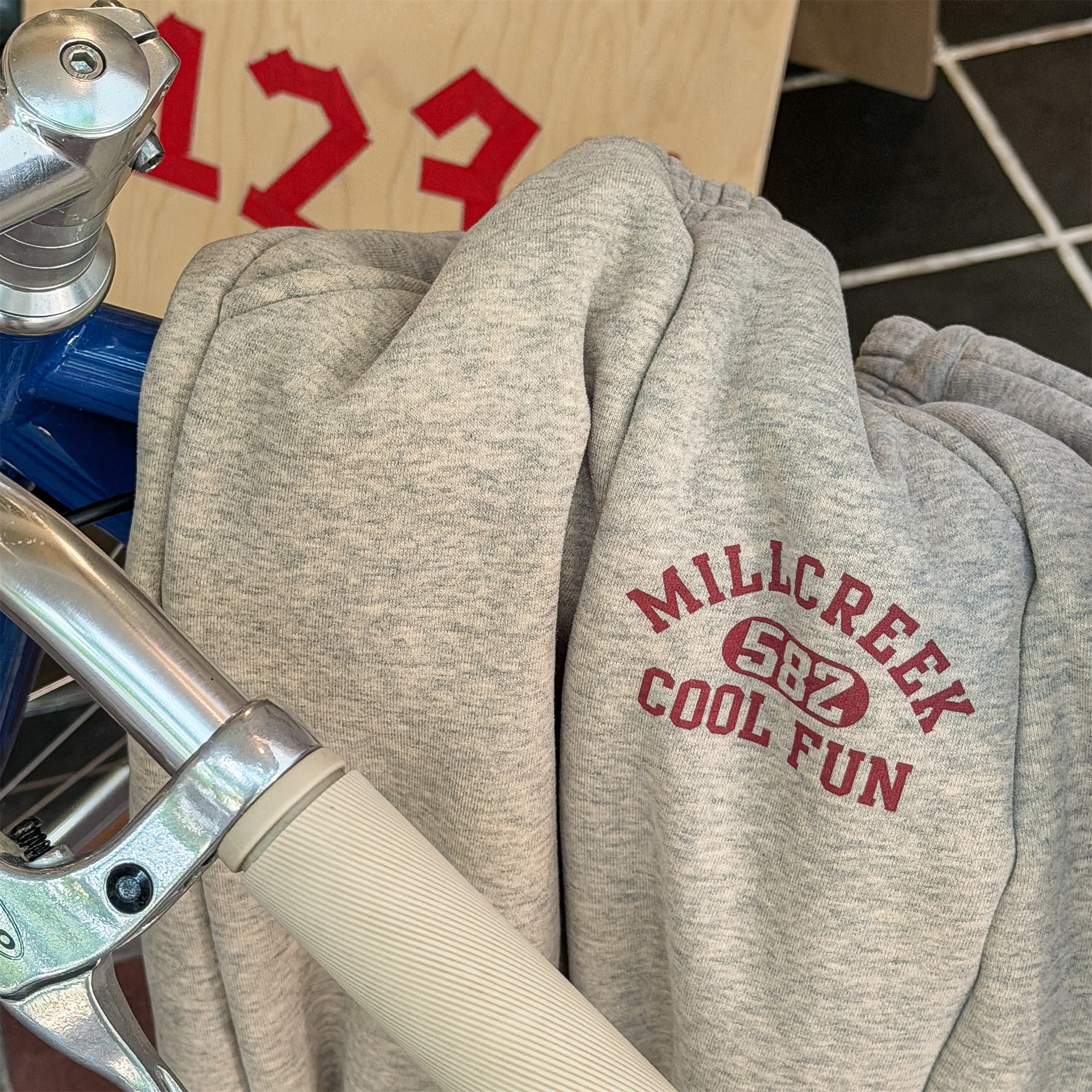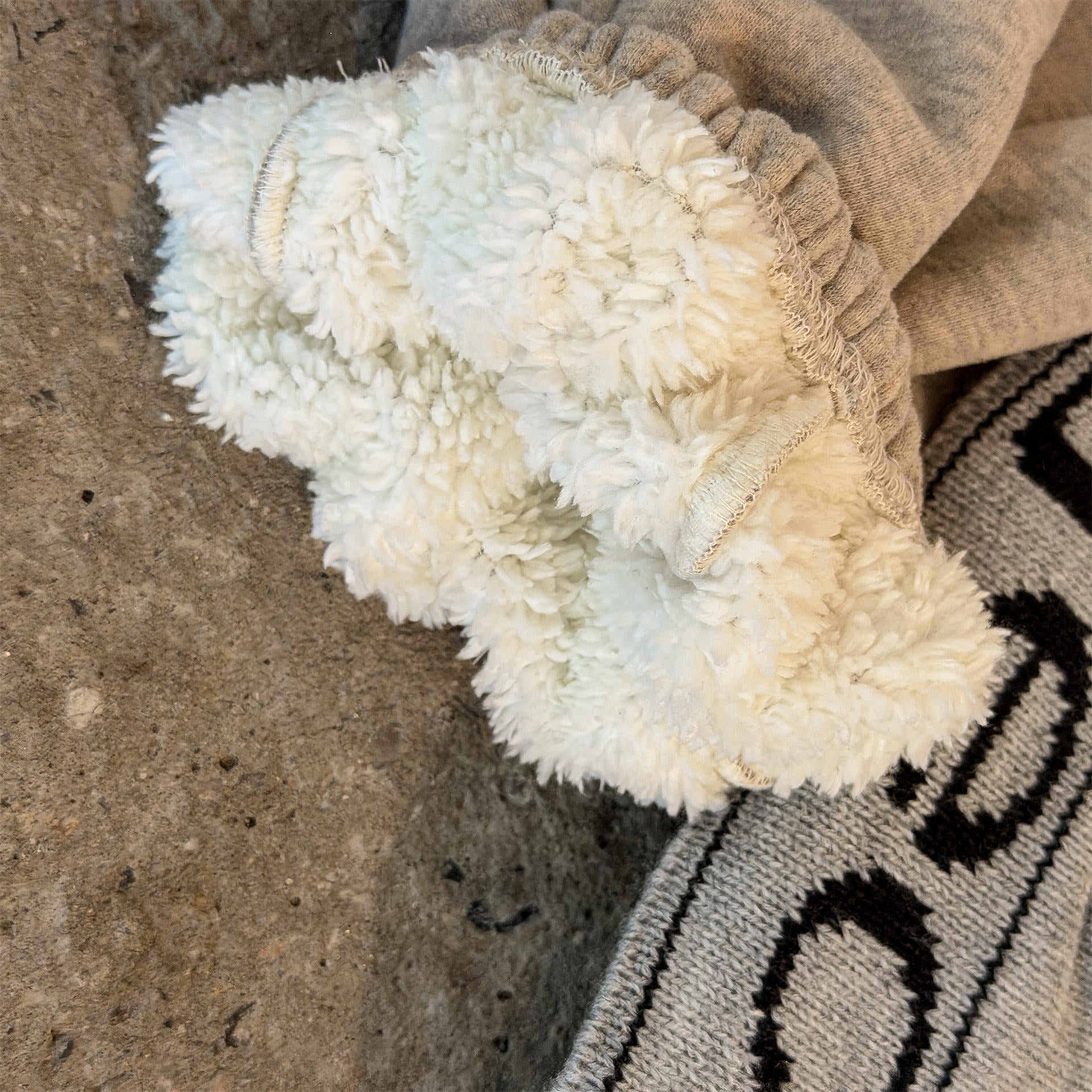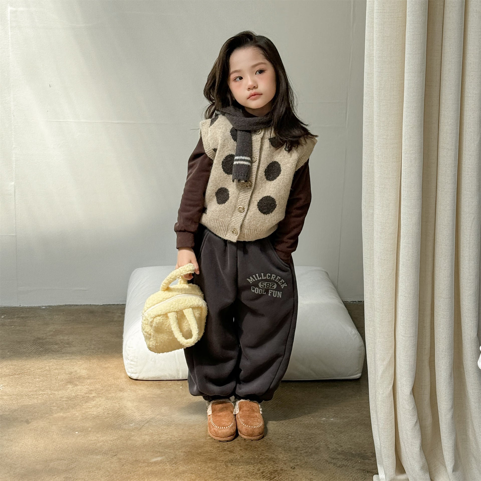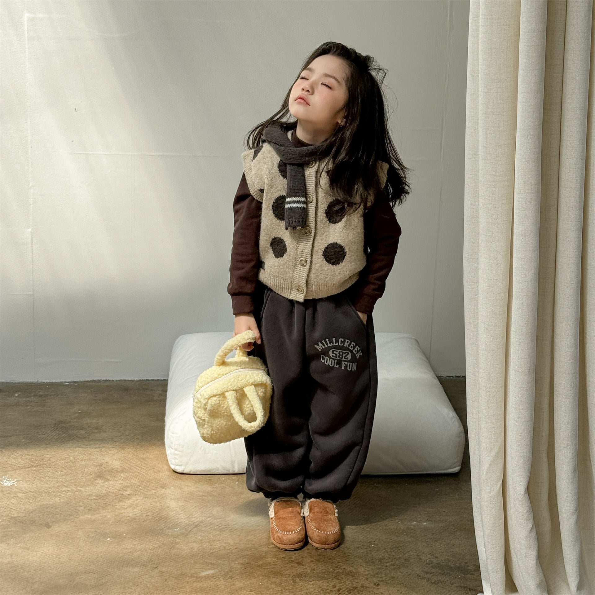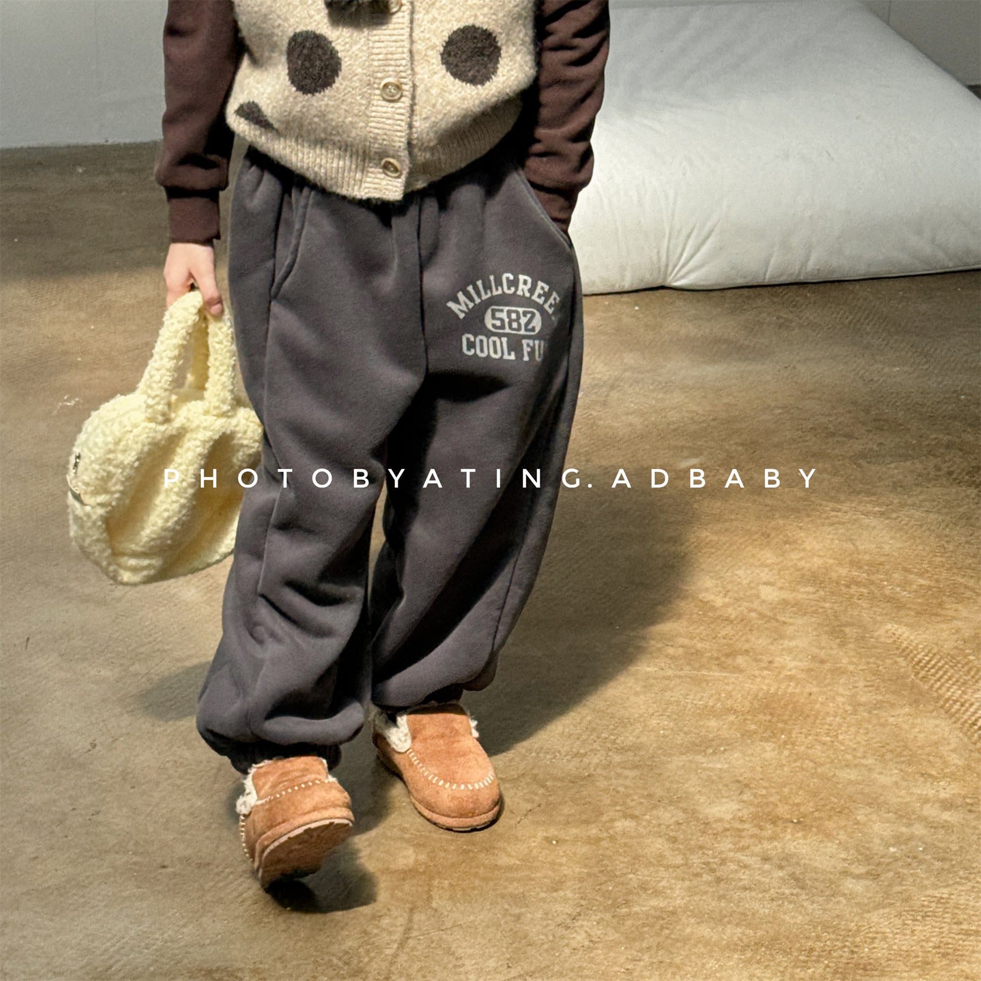 暖かな裏ボア素材で仕上げられた、ロゴ刺繍入りのスウェットパンツです。ゆったりとしたジョガーシルエットが、リラックス感とおしゃれな雰囲気を両立し、アクティブな子どもたちの動きを妨げません。シンプルなデザインながら、さりげない刺繍がアクセントとなり、カジュアルなボトムスながらも洗練された子ども服の着こなしを完成させます。