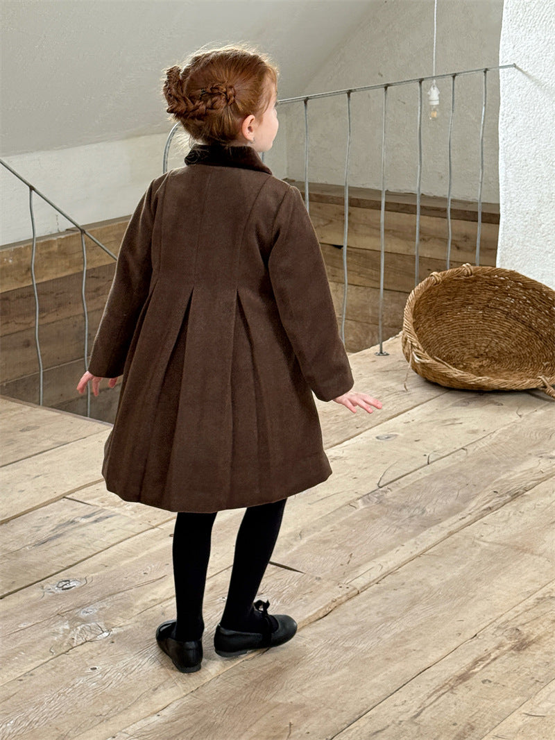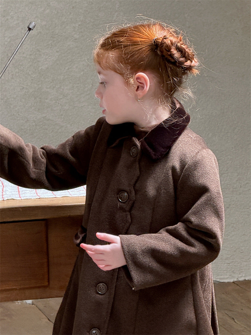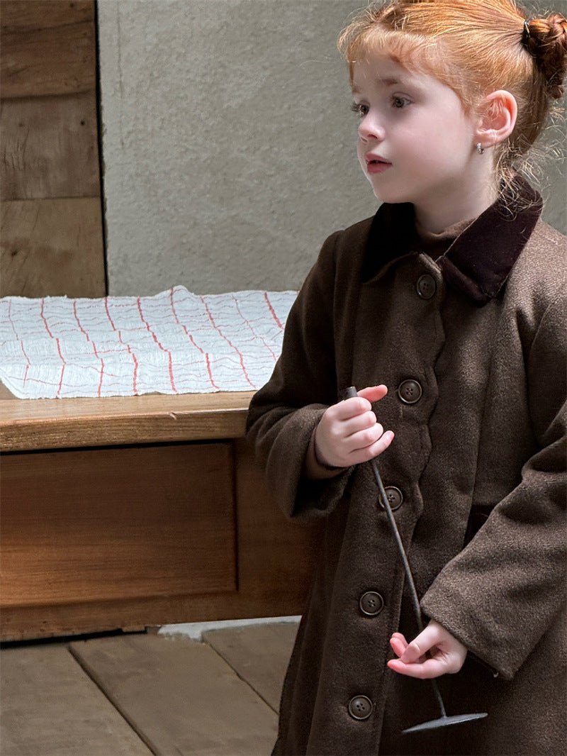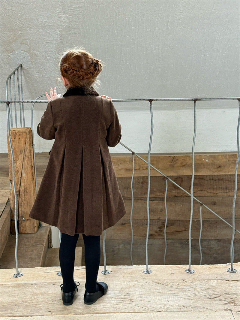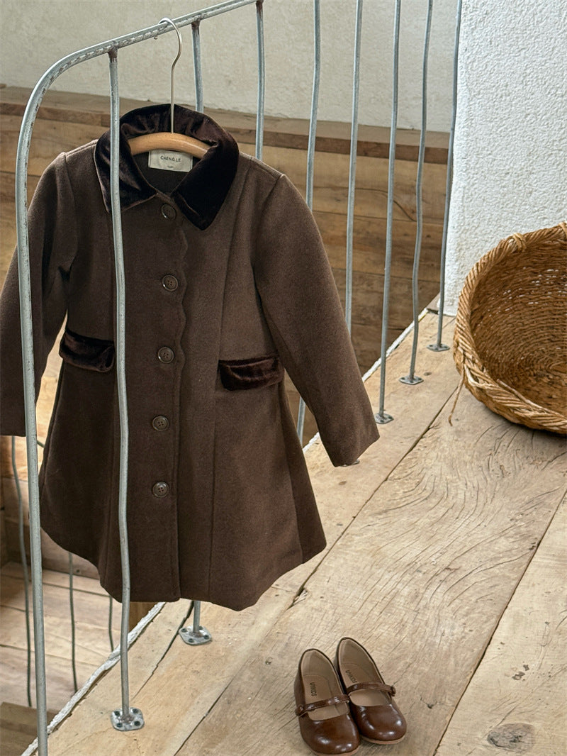 上品なカラーブロックデザインが目を引く、洗練されたムードを纏う襟付きのミディ丈コート。ふんわりと広がるAラインシルエットが愛らしい印象を与えつつ、中綿入りで寒い時季のお出かけを暖かくサポートします。エレガントさと機能性を両立させたこの子ども服のアウターは、羽織るだけでお出かけスタイルを格上げし、特別なシーンにも映える一着です。