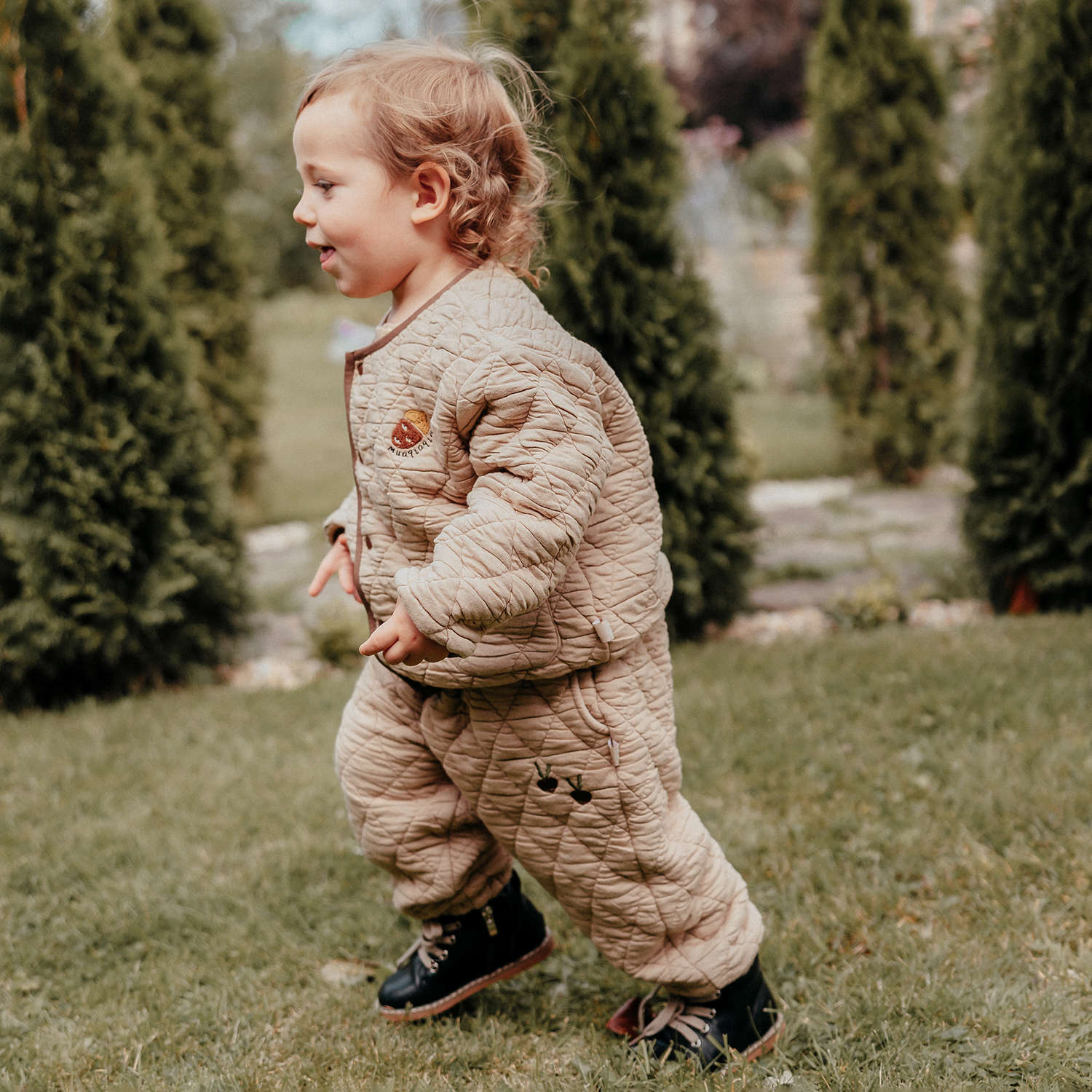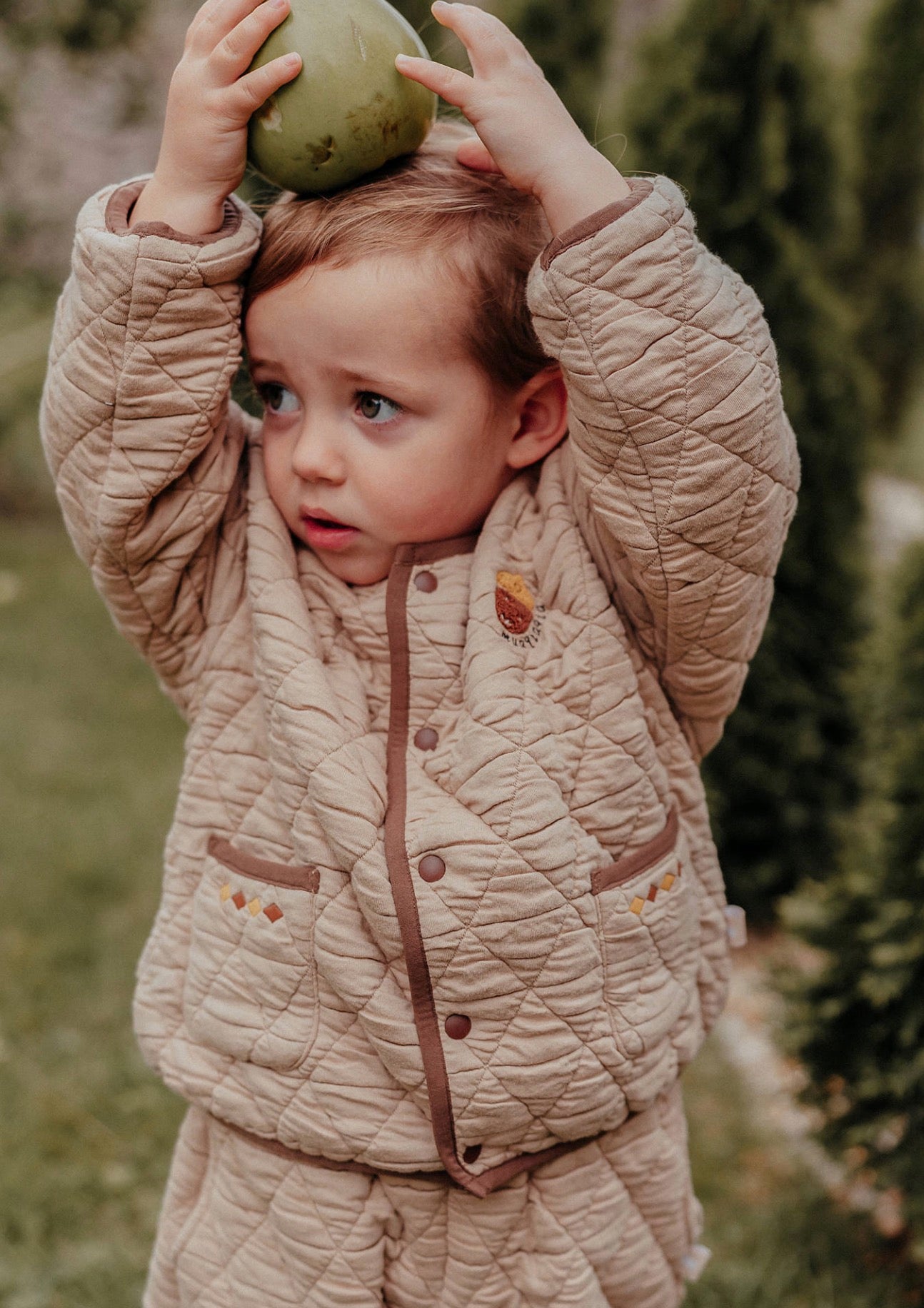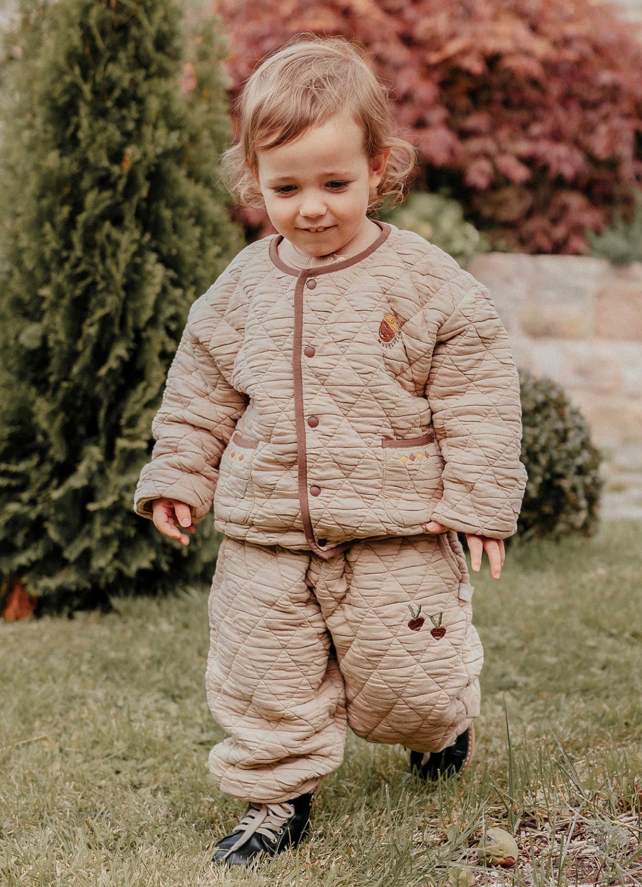 刺繍のモチーフを控えめにあしらったキルティングのジョガーパンツは、デイリーユースにぴったりのベビー服です。ふわふわとした心地よい裏フリース素材が、アクティブなお子さまの足元を優しく包み込みます。ユニセックスで楽しめるシンプルなデザインなので、どんなトップスやアウターとも馴染みやすく、カジュアルなコーディネートを格上げする一本として活躍します。