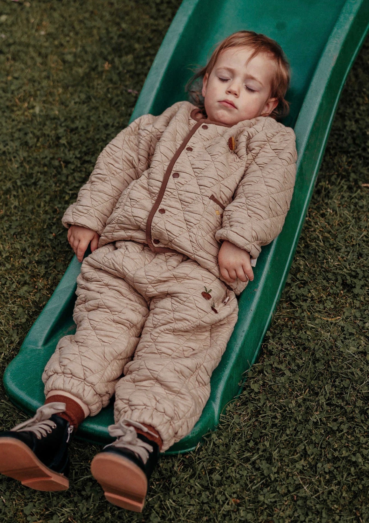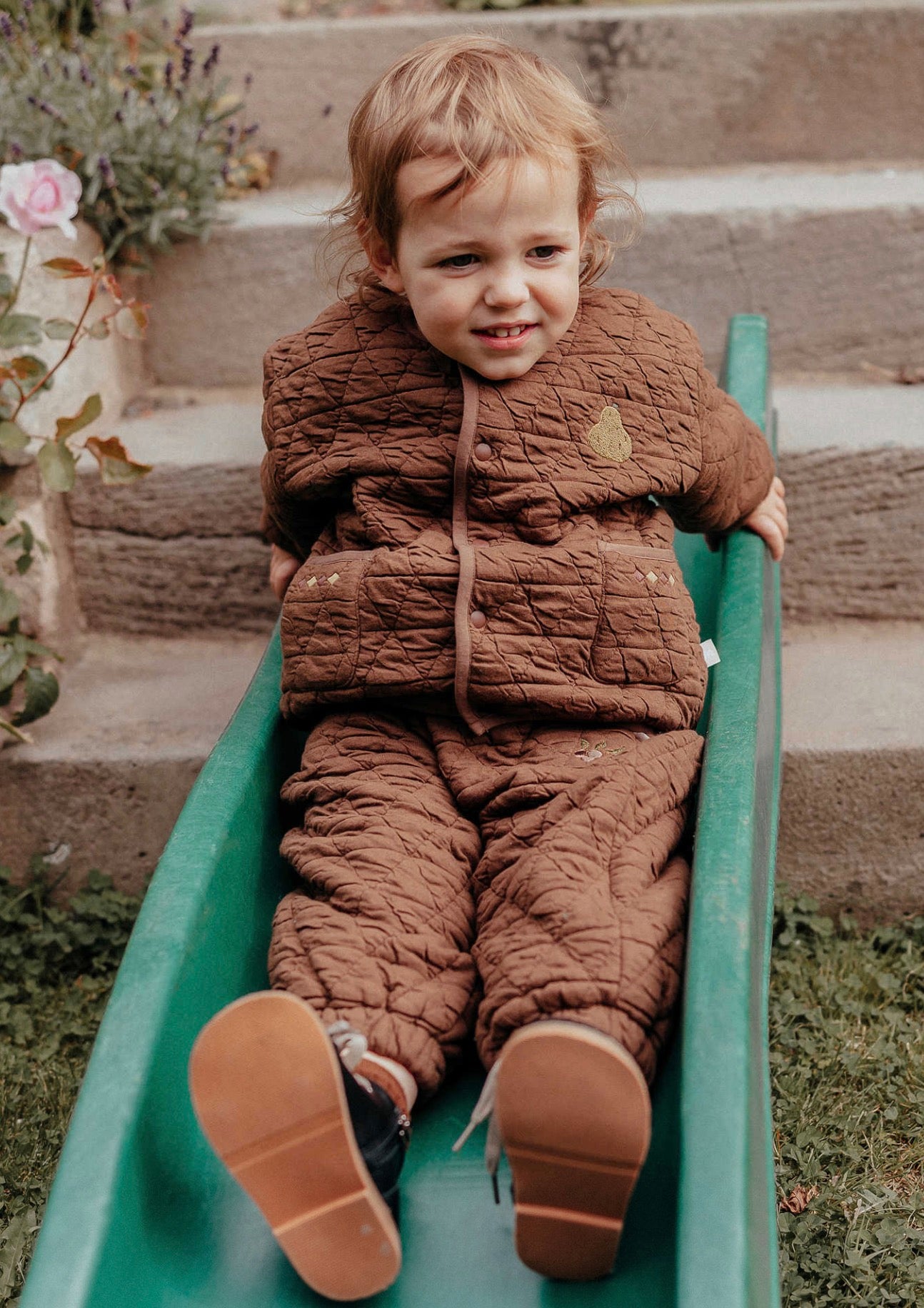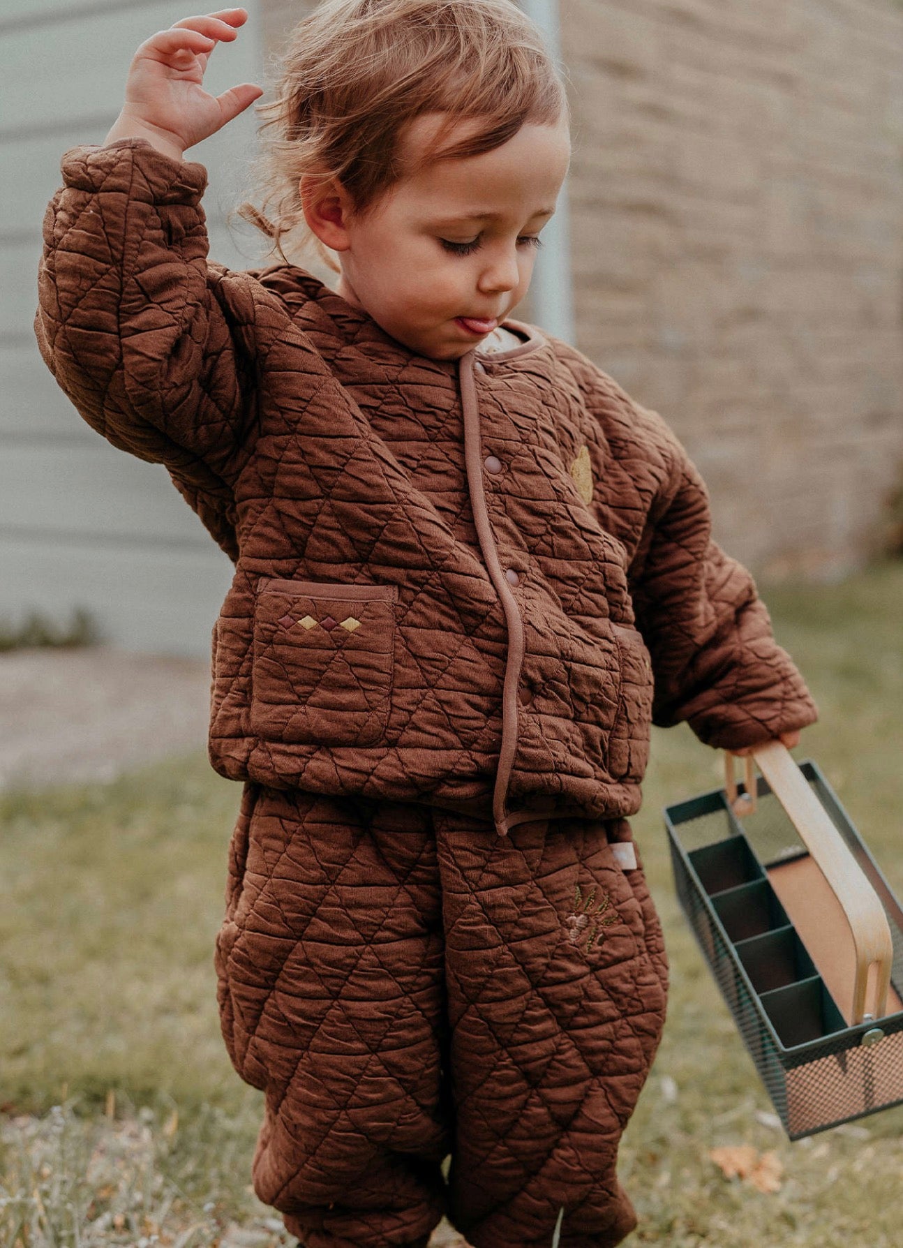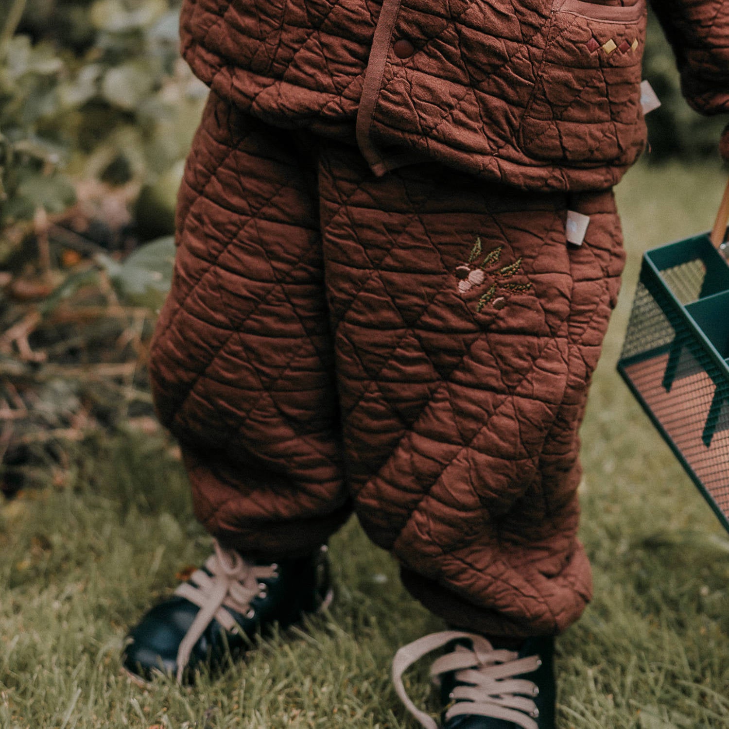 刺繍のモチーフを控えめにあしらったキルティングのジョガーパンツは、デイリーユースにぴったりのベビー服です。ふわふわとした心地よい裏フリース素材が、アクティブなお子さまの足元を優しく包み込みます。ユニセックスで楽しめるシンプルなデザインなので、どんなトップスやアウターとも馴染みやすく、カジュアルなコーディネートを格上げする一本として活躍します。