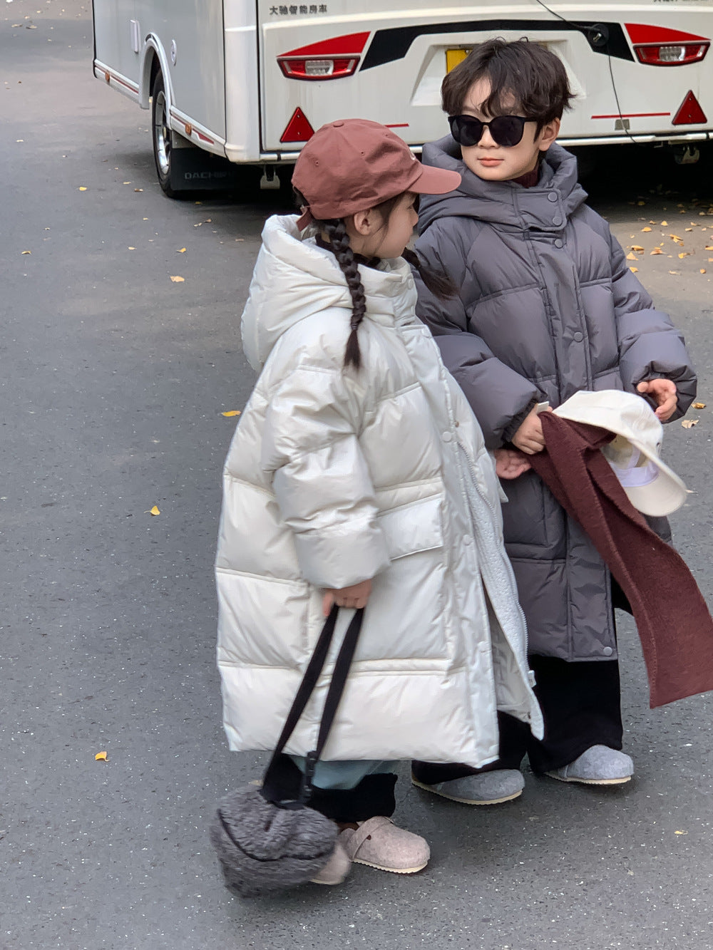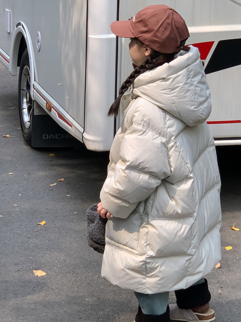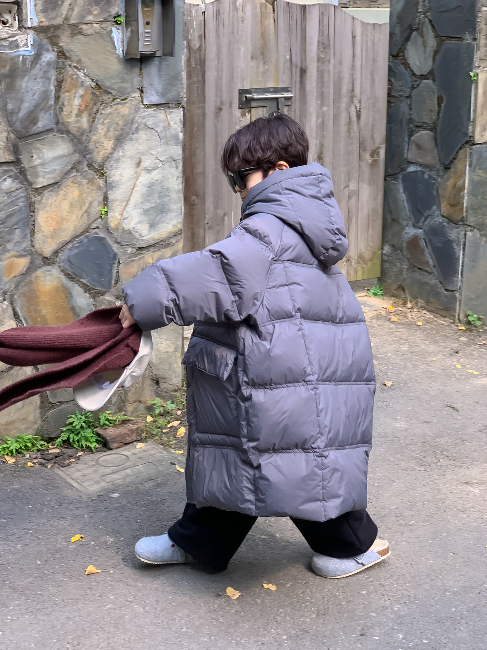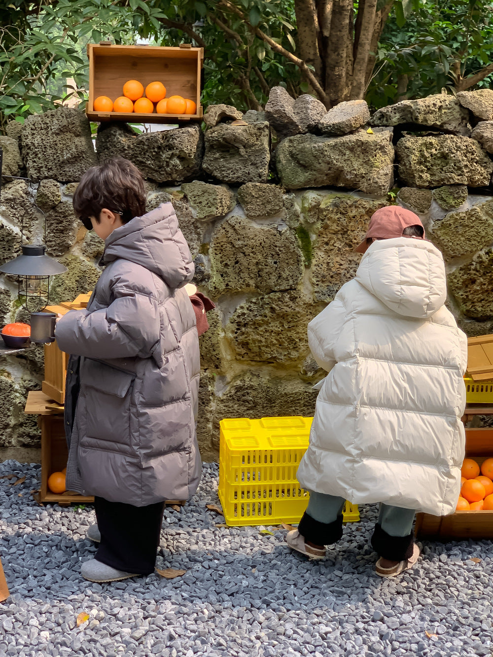 軽くて暖かいダウンジャケットは、寒い日のお出かけをサポートするロング丈のベンチコートです。ソリッドカラーのシンプルなデザインながら、フード付きで首元まで暖かく、洗練されたカジュアルスタイルを演出します。ゆったりとしたシルエットは動きやすく、厚手で防寒性の高いこのコートは、お子様の通園や通学、冬のアクティビティに欠かせないアウターとして重宝します。