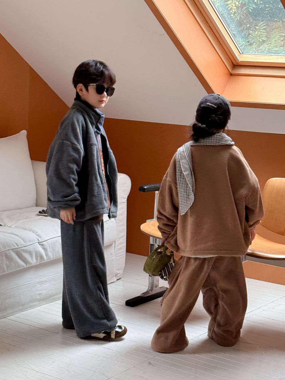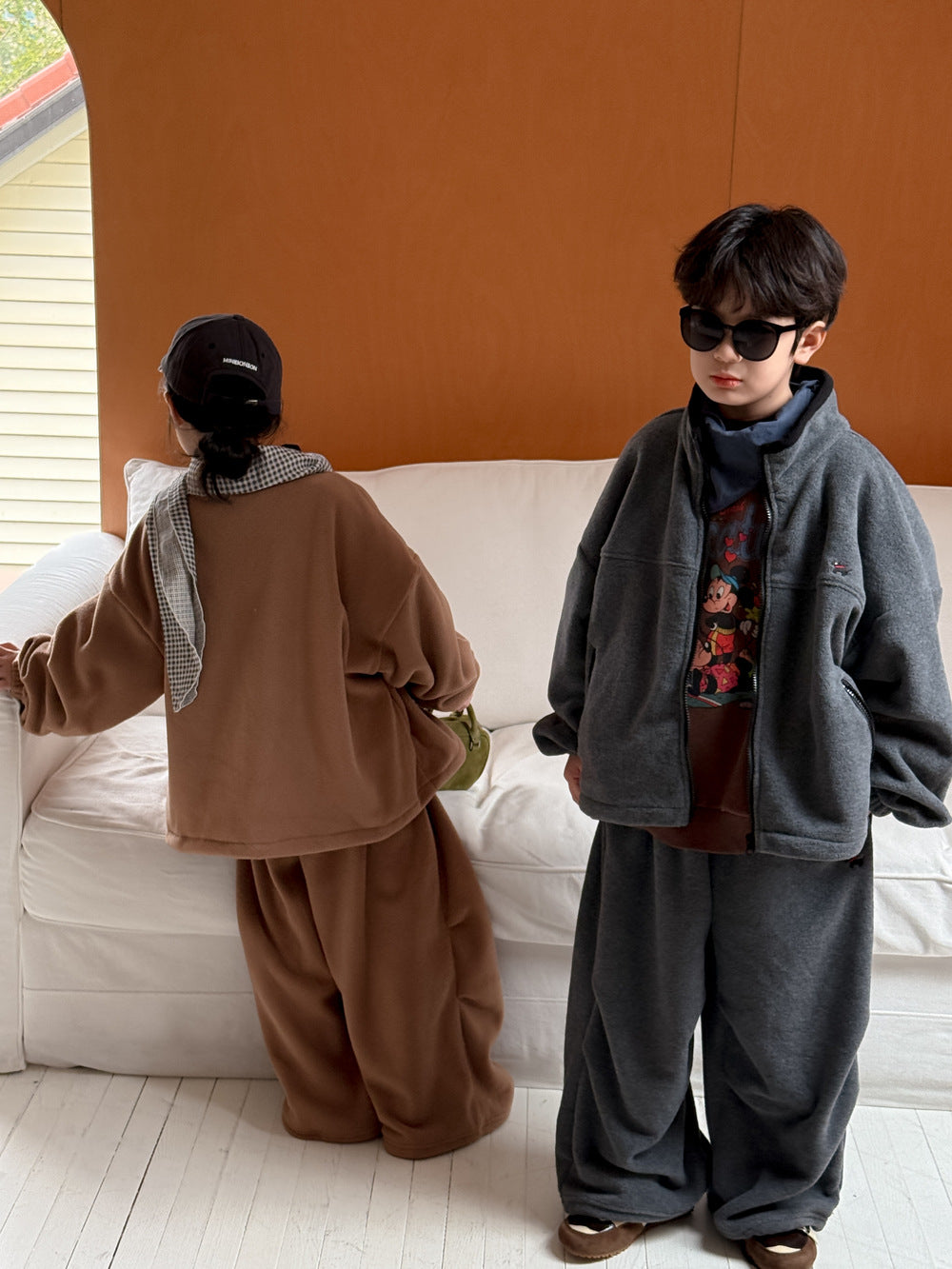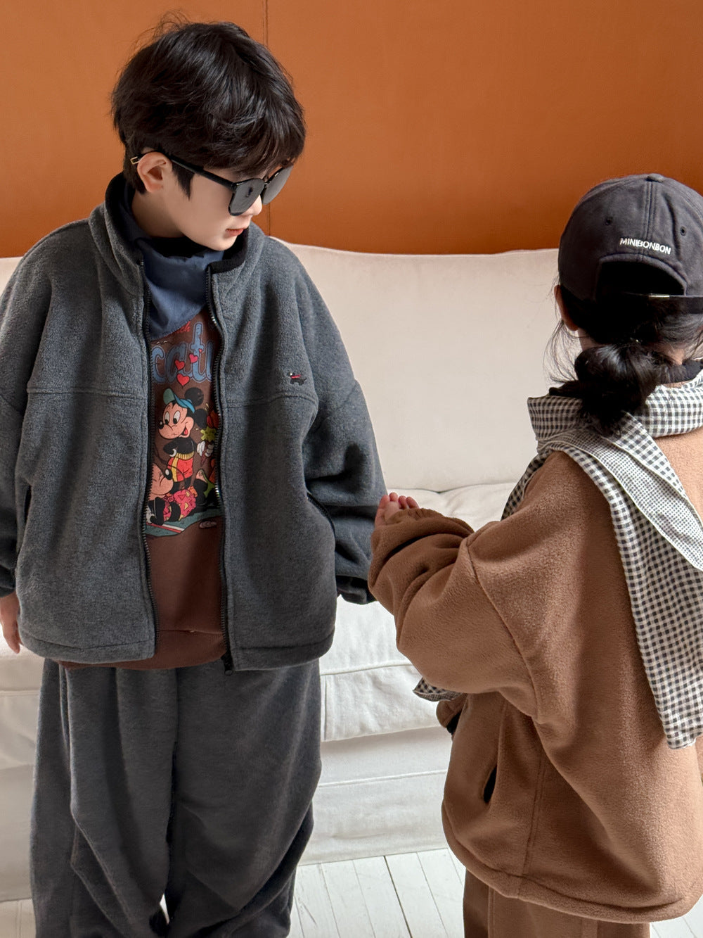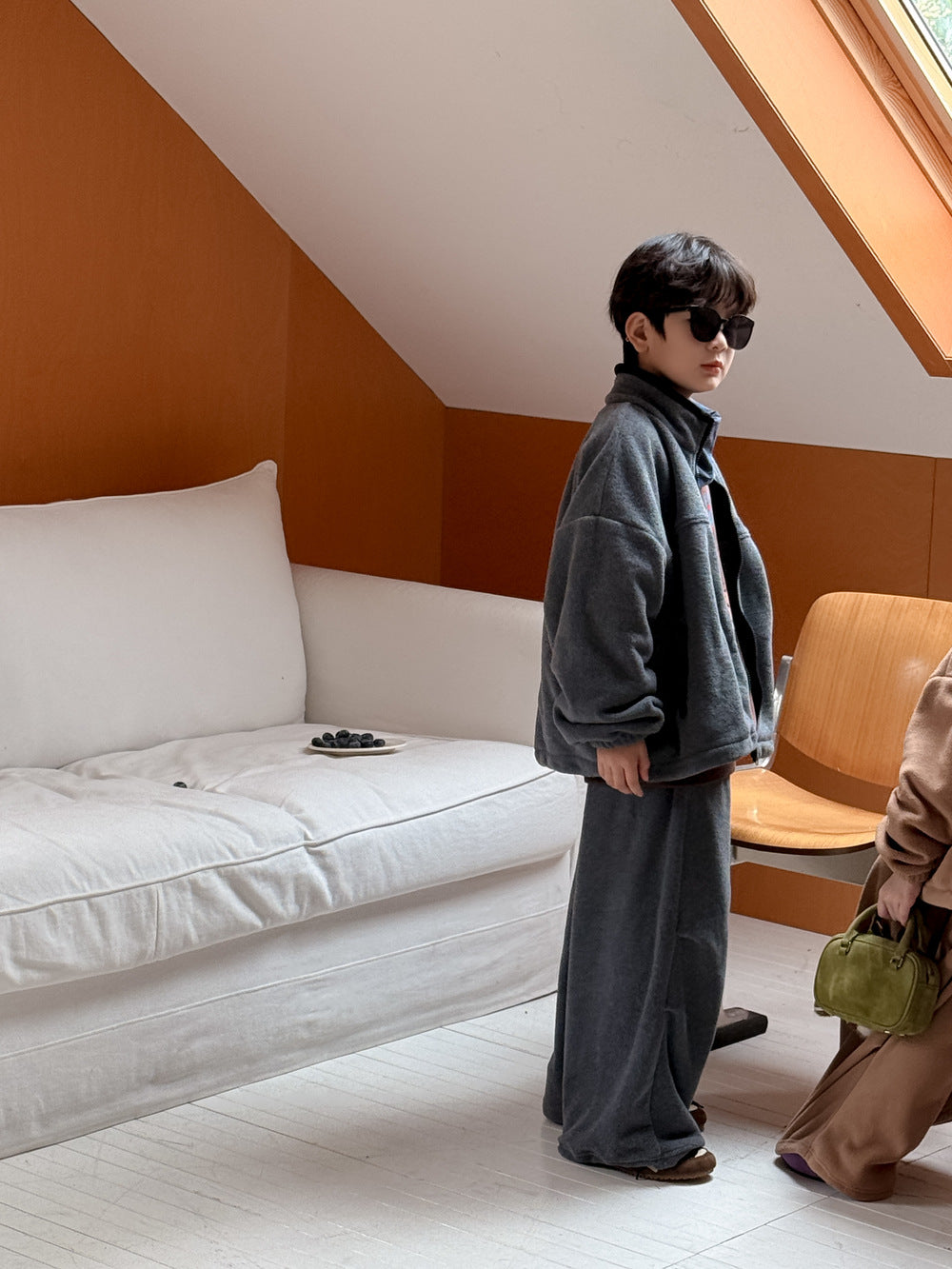セットアップ キッズ 裏起毛 ボア 厚手 スタンドカラー オーバーサイズ ジップ【mh0011659】