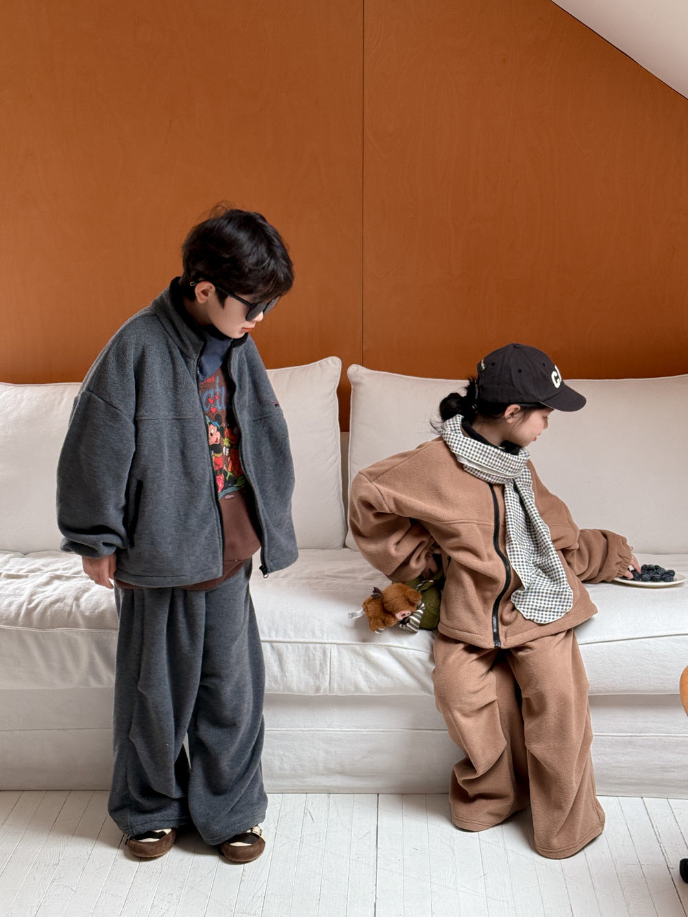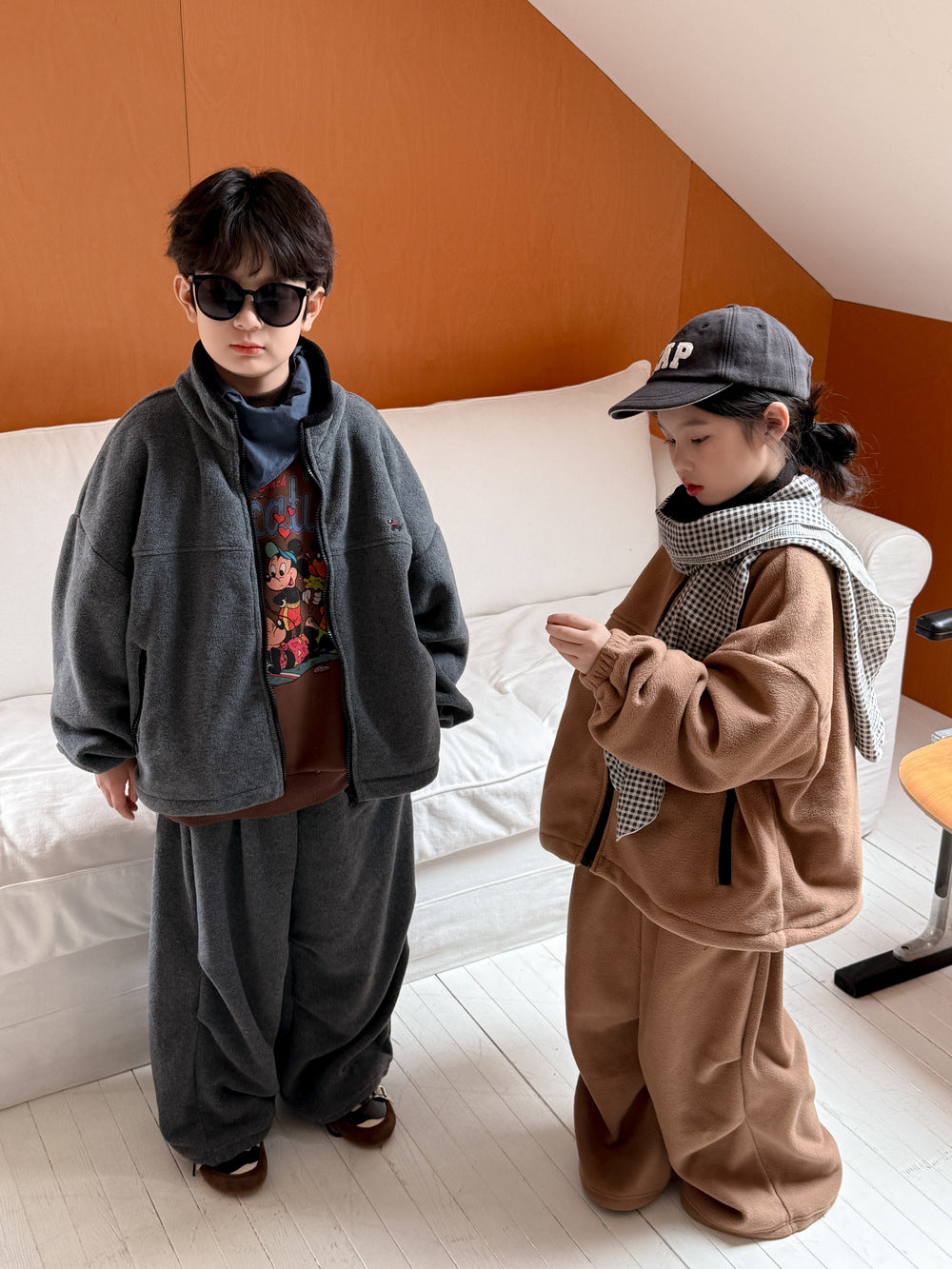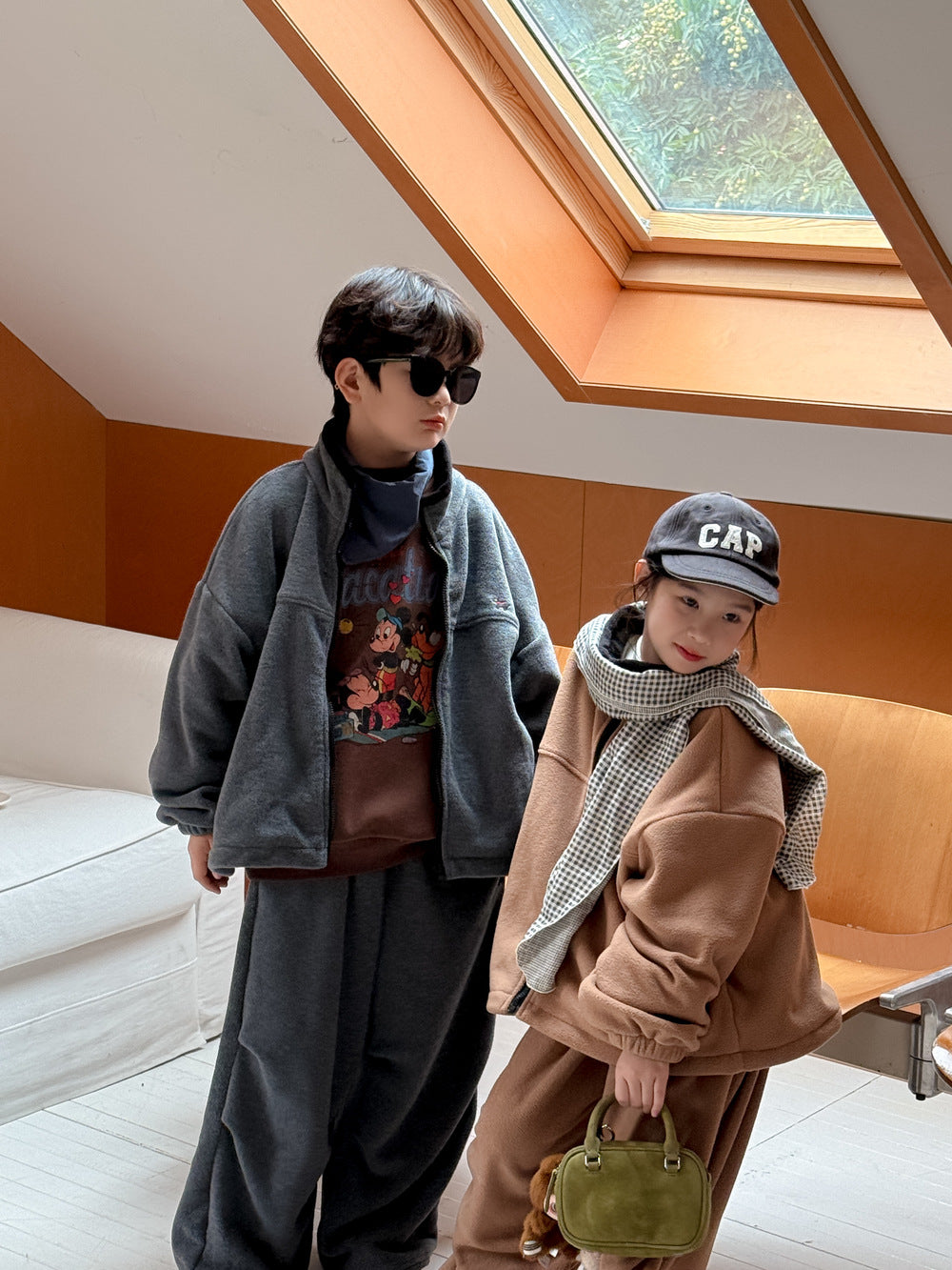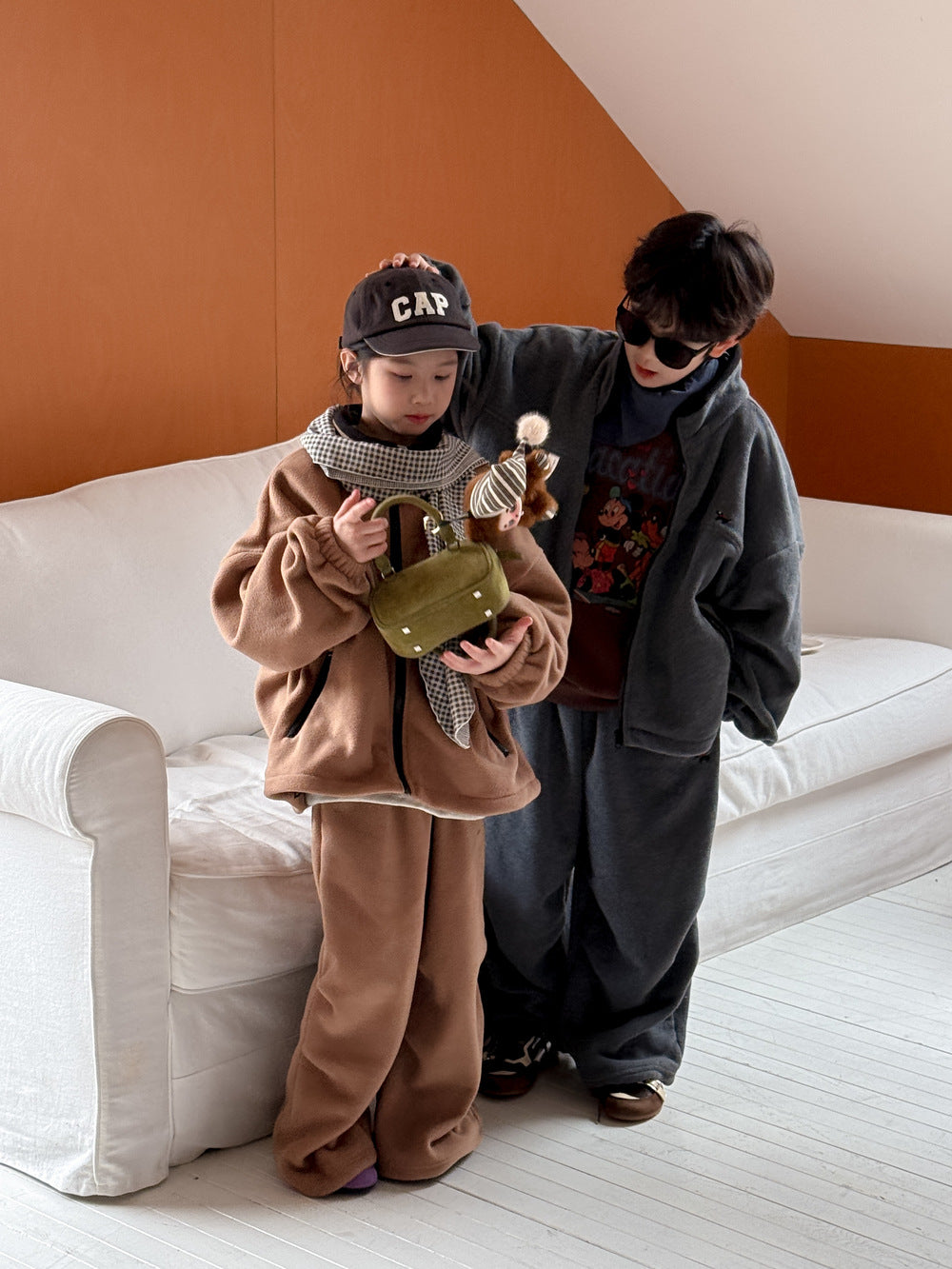 セットアップ キッズ 裏起毛 ボア 厚手 スタンドカラー オーバーサイズ ジップ【mh0011659】