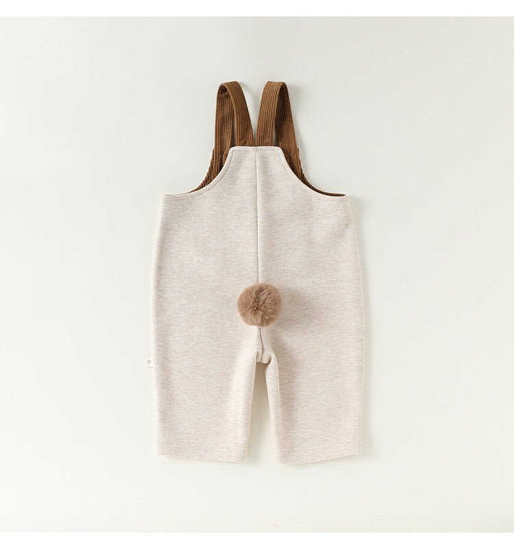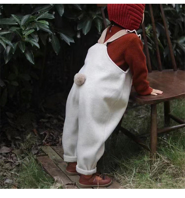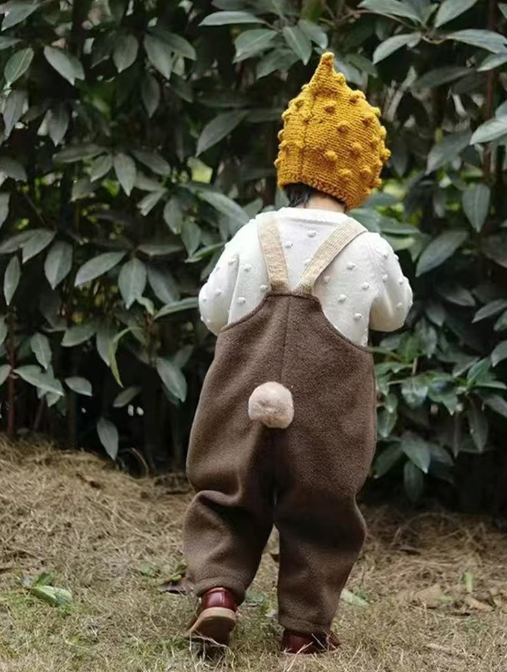 サロペット ウール調 厚手 しっぽ付 オーバーオール 防寒【mh0011707】