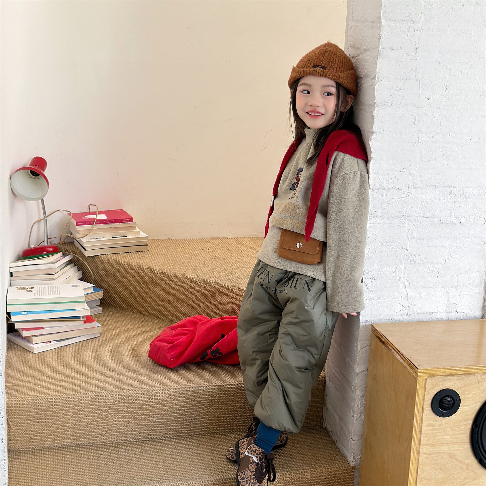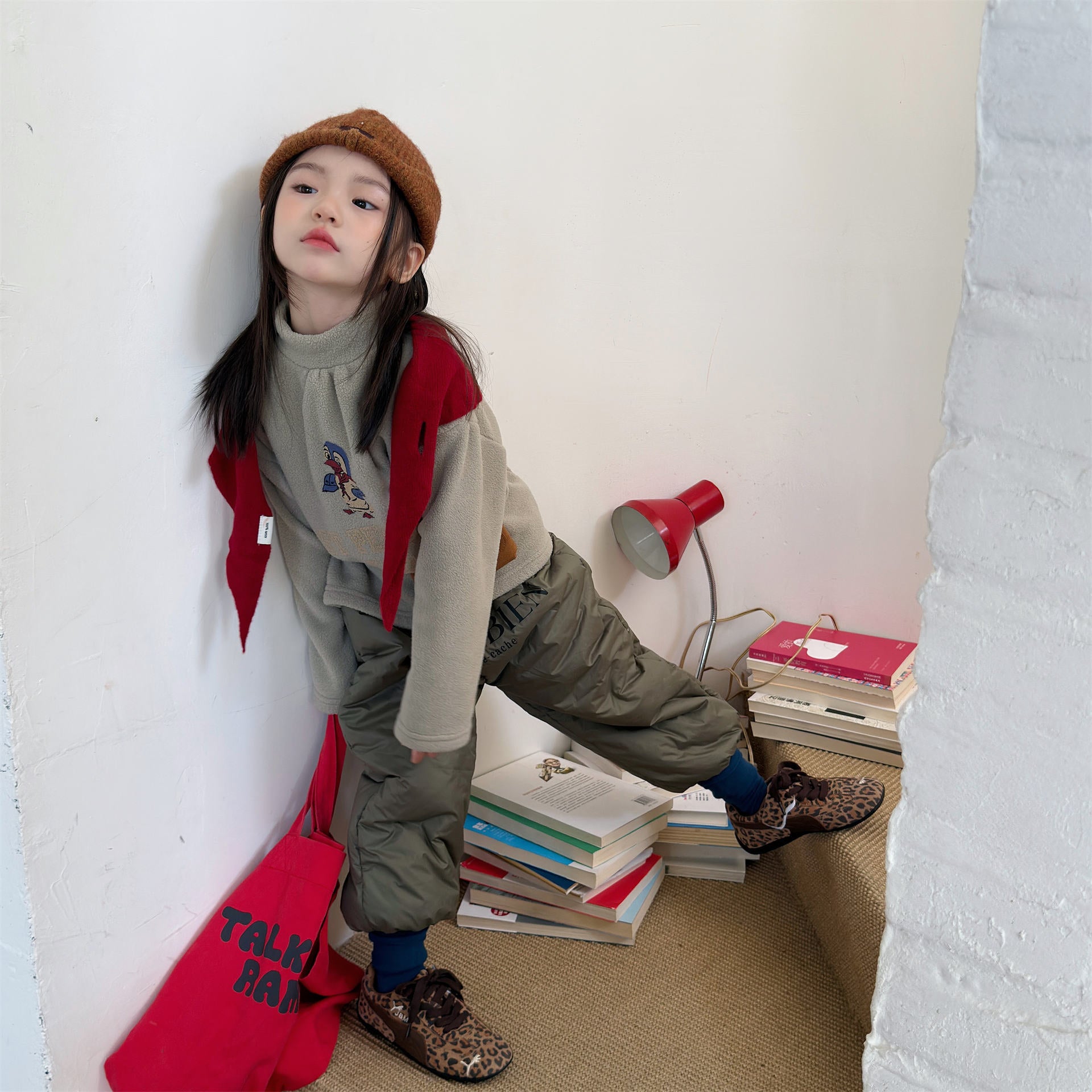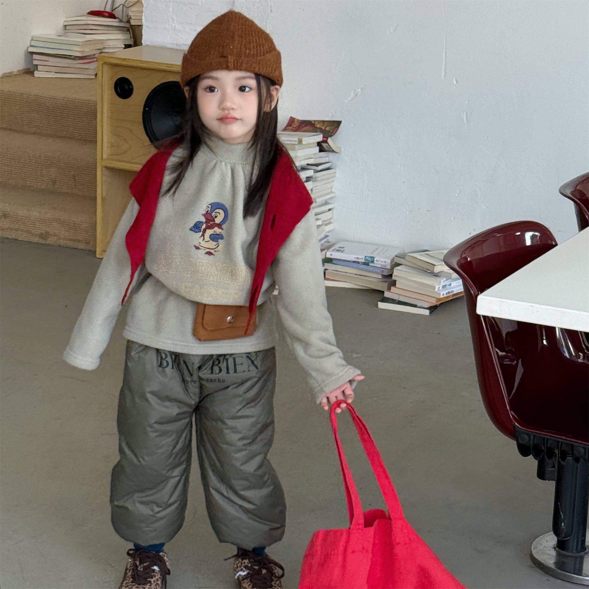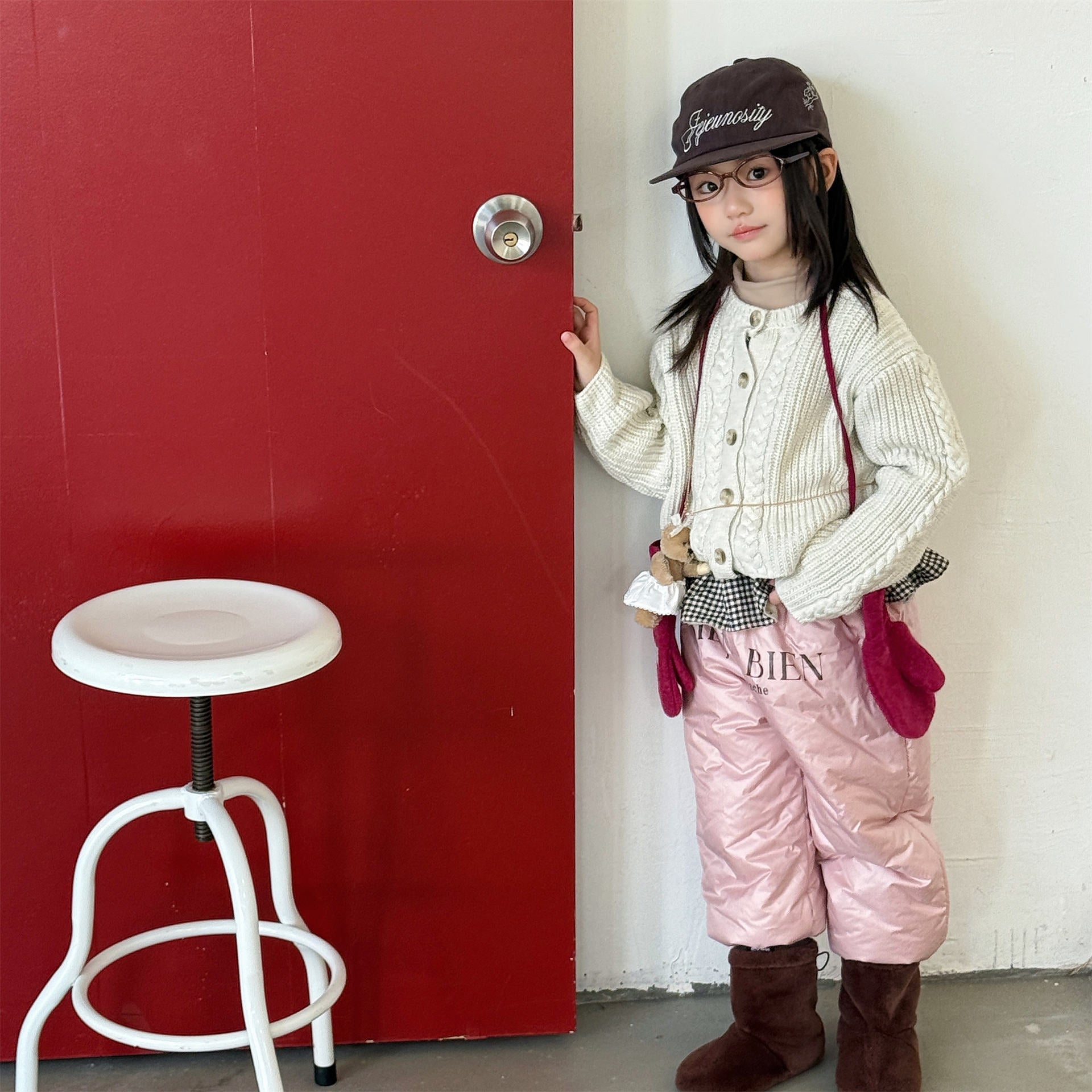 中綿を封入することで圧倒的な保温性を実現した、真冬の寒さに対応する防寒ジョガーパンツです。冷気をシャットアウトする厚手の生地感ながら、裾を絞ったジョガーシルエットに仕上げることで足元をすっきりと見せ、活発な動きを妨げない快適な穿き心地を実現しています。さりげなく施されたロゴプリントがスポーティーなアクセントを加え、男の子にも女の子にも似合う洗練された韓国スタイルのデザインが魅力です。通学や冬の屋外レジャーなど、厳しい寒さの中でもお子様の足を暖かく守る、機能性とファッション性を兼ね備えた頼れる一着です。