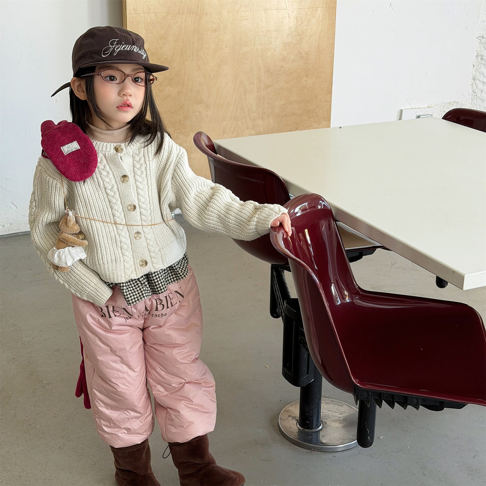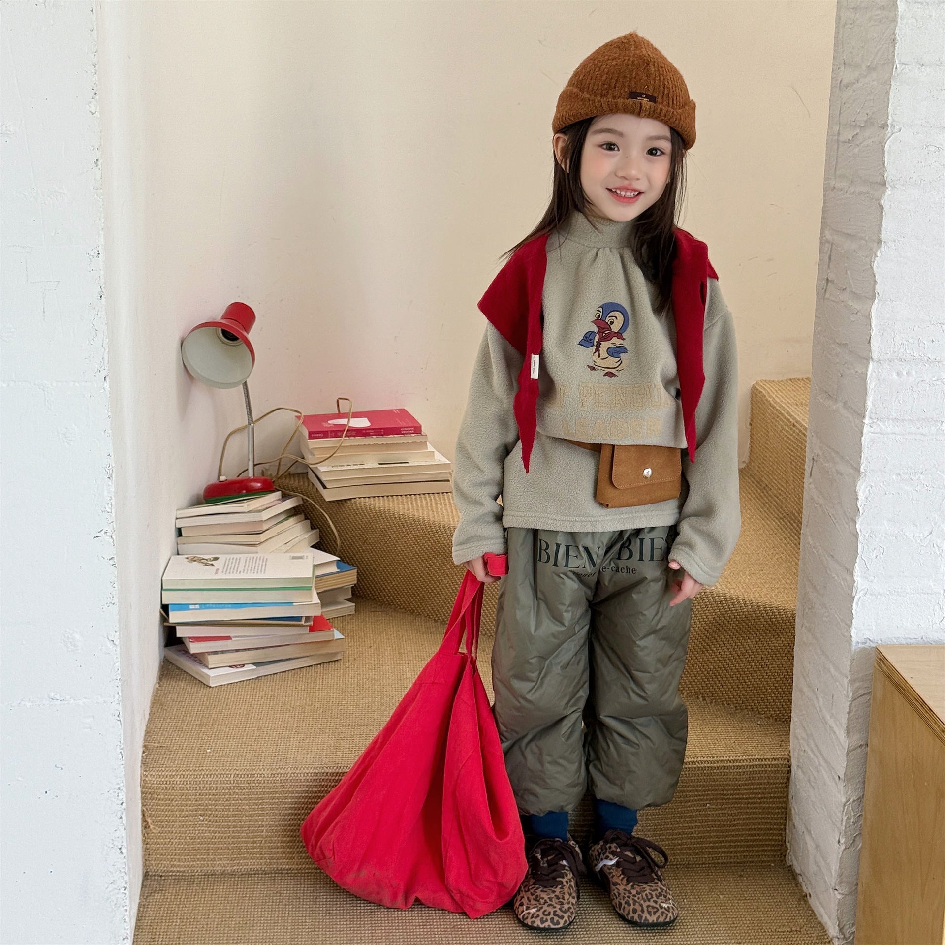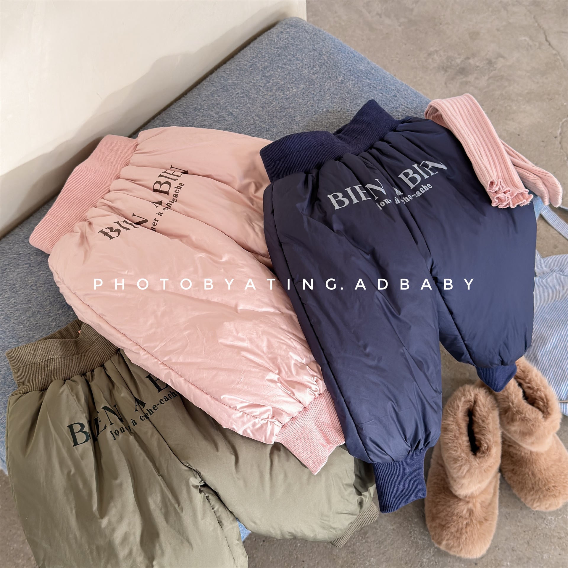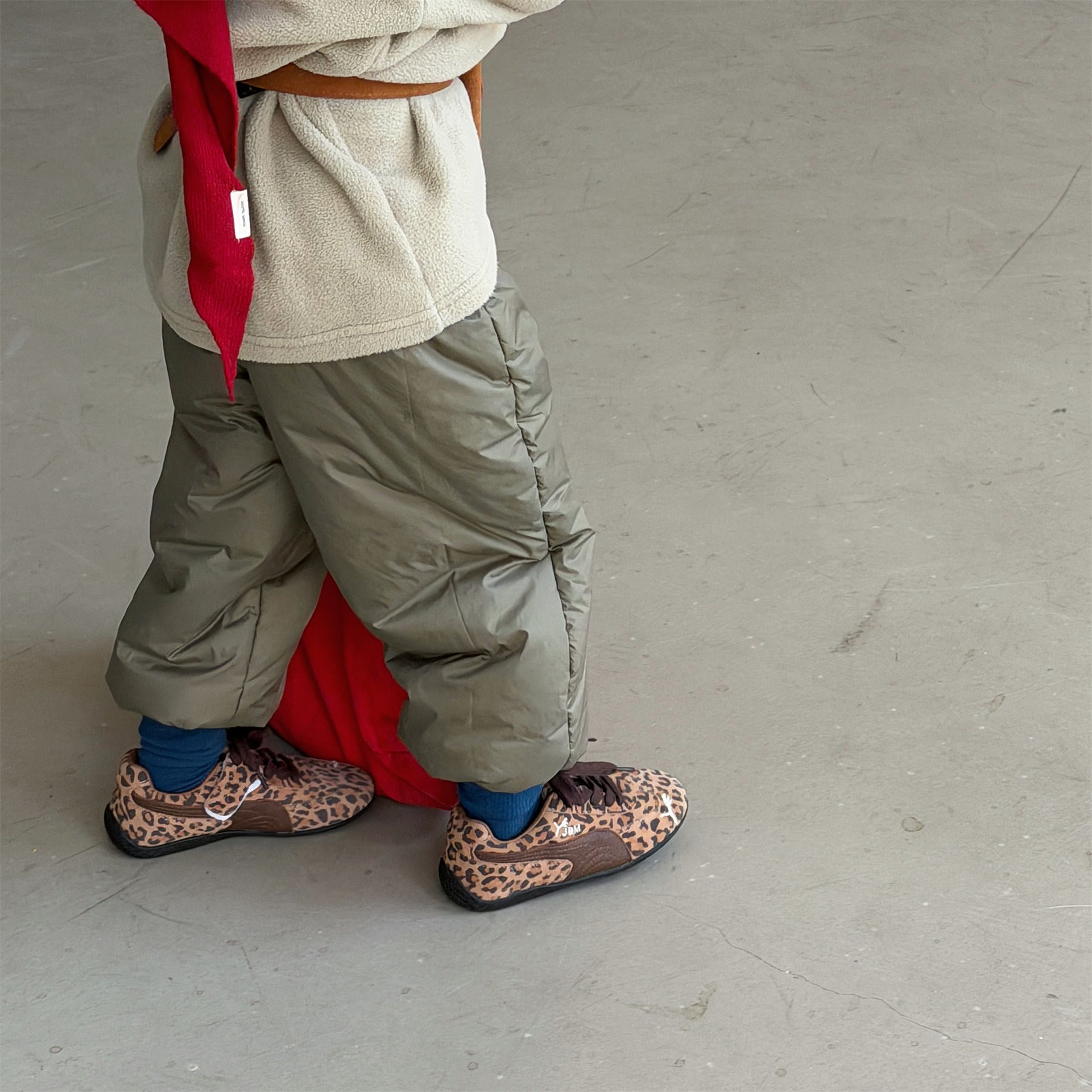 中綿を封入することで圧倒的な保温性を実現した、真冬の寒さに対応する防寒ジョガーパンツです。冷気をシャットアウトする厚手の生地感ながら、裾を絞ったジョガーシルエットに仕上げることで足元をすっきりと見せ、活発な動きを妨げない快適な穿き心地を実現しています。さりげなく施されたロゴプリントがスポーティーなアクセントを加え、男の子にも女の子にも似合う洗練された韓国スタイルのデザインが魅力です。通学や冬の屋外レジャーなど、厳しい寒さの中でもお子様の足を暖かく守る、機能性とファッション性を兼ね備えた頼れる一着です。