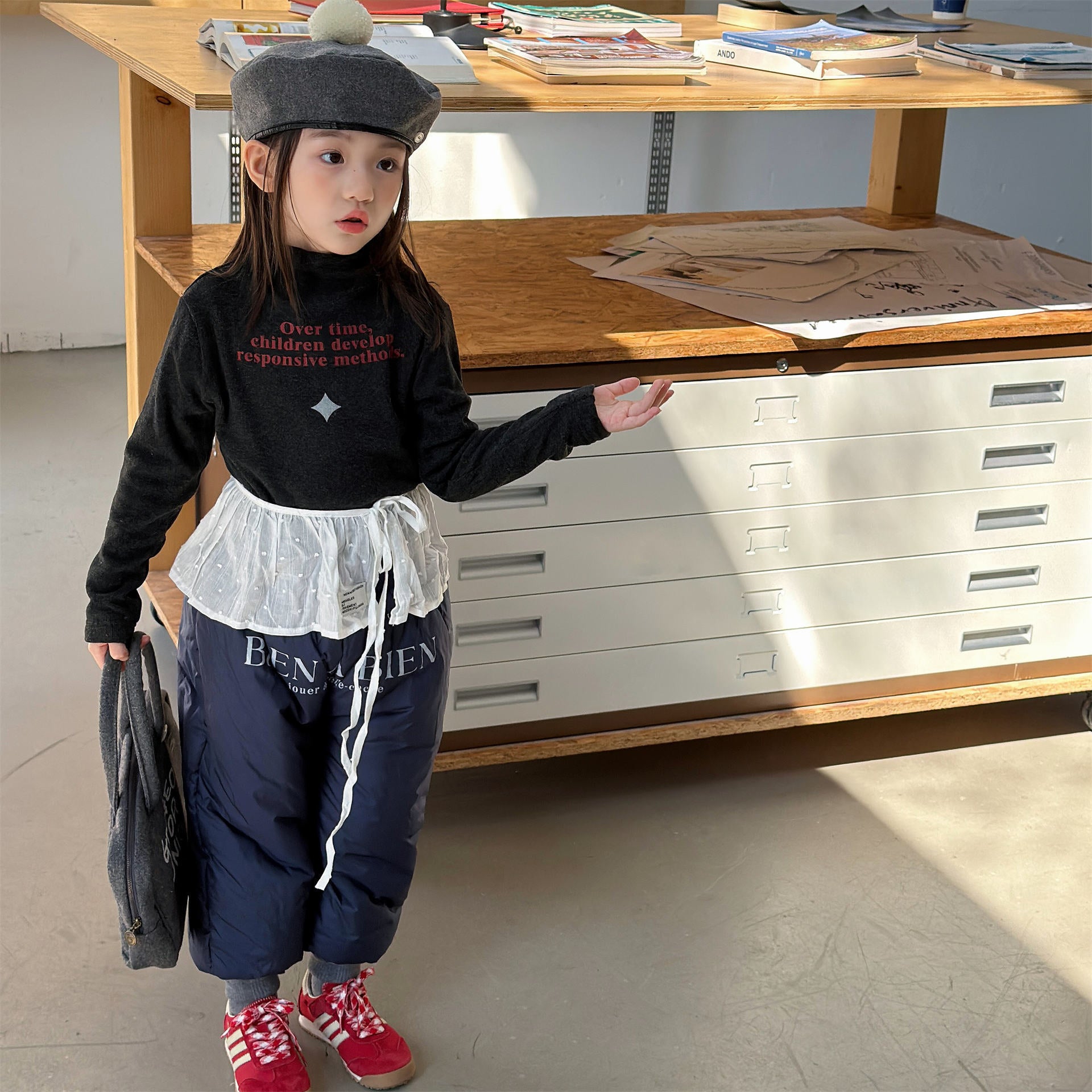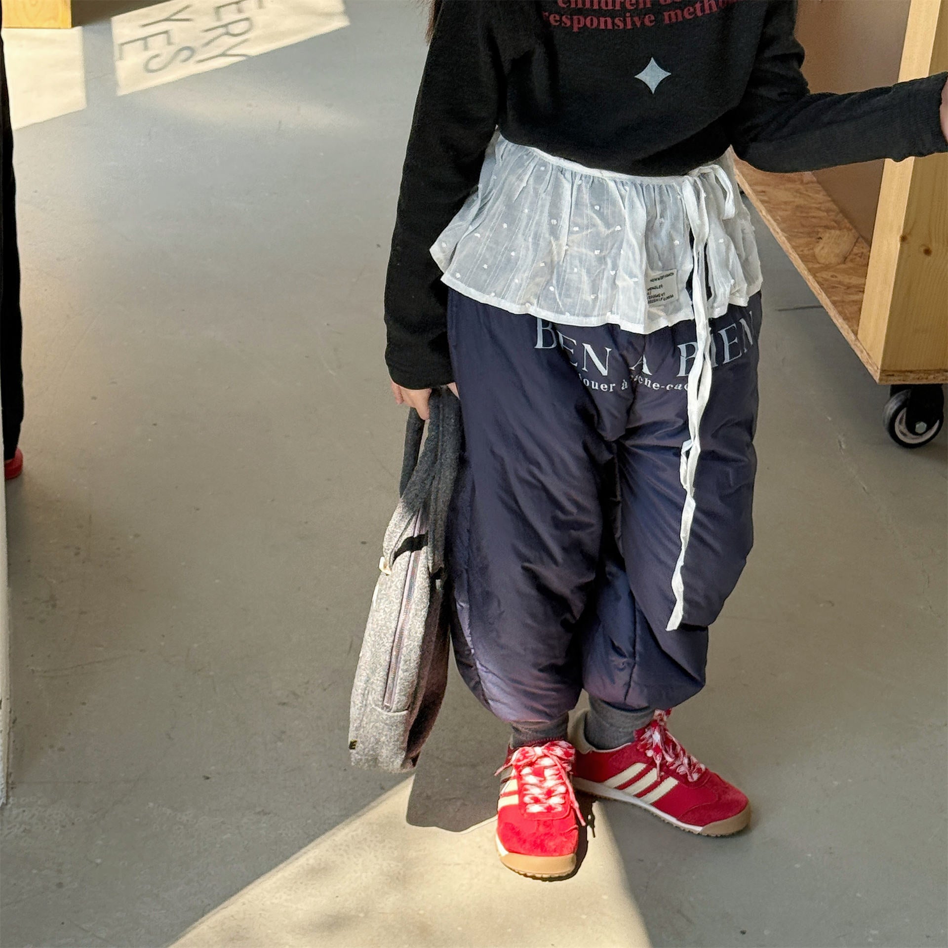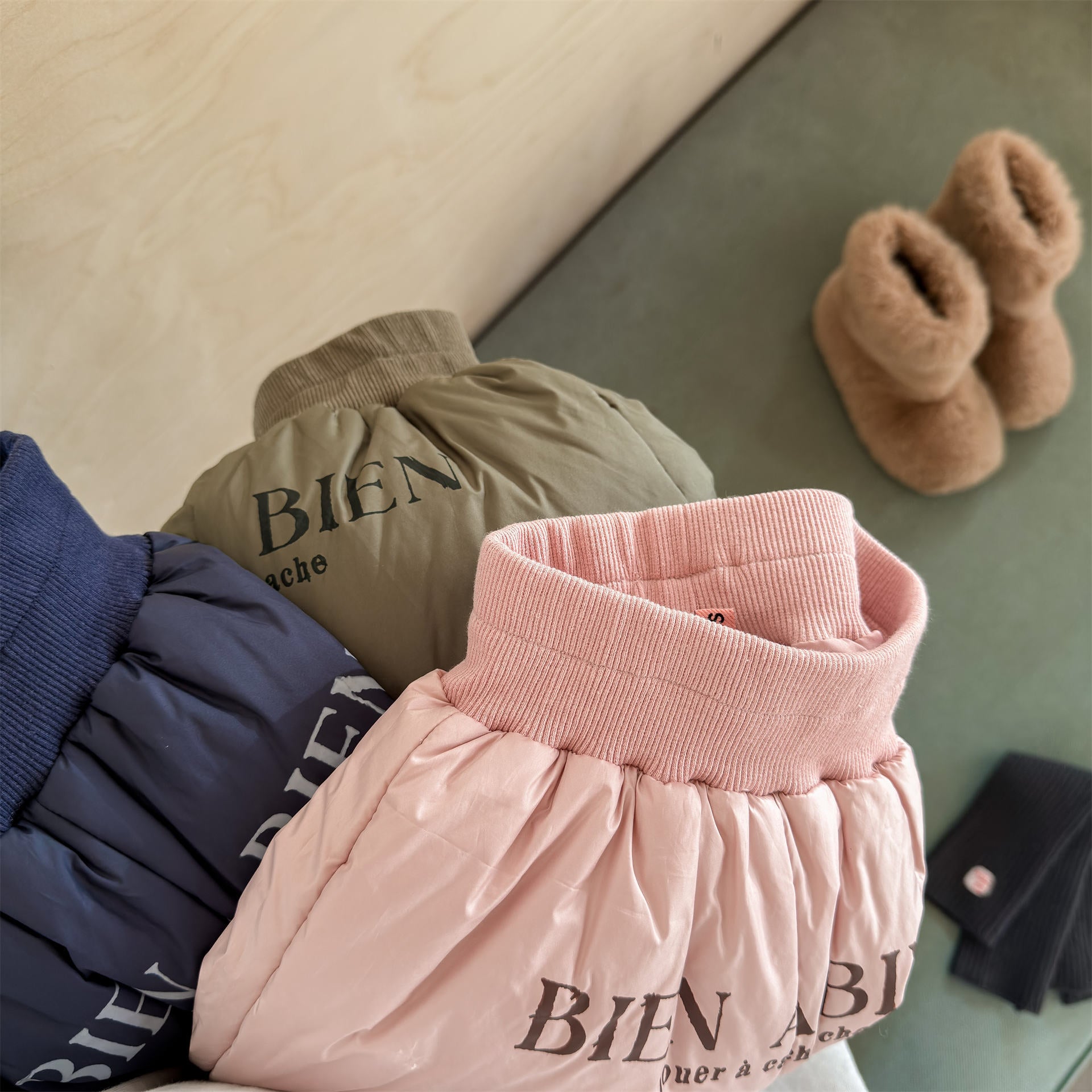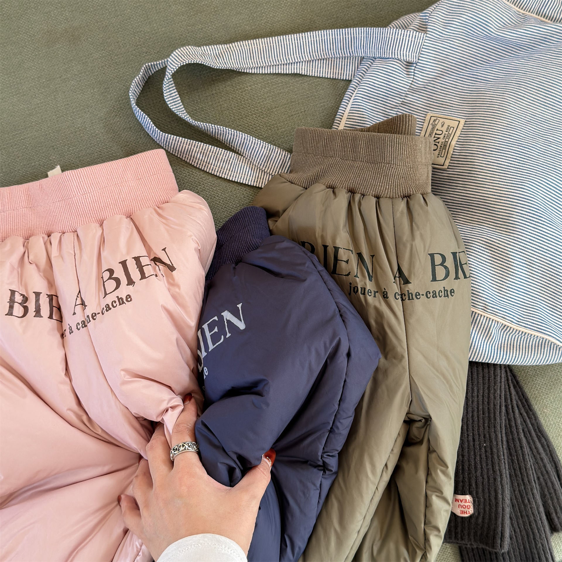 中綿を封入することで圧倒的な保温性を実現した、真冬の寒さに対応する防寒ジョガーパンツです。冷気をシャットアウトする厚手の生地感ながら、裾を絞ったジョガーシルエットに仕上げることで足元をすっきりと見せ、活発な動きを妨げない快適な穿き心地を実現しています。さりげなく施されたロゴプリントがスポーティーなアクセントを加え、男の子にも女の子にも似合う洗練された韓国スタイルのデザインが魅力です。通学や冬の屋外レジャーなど、厳しい寒さの中でもお子様の足を暖かく守る、機能性とファッション性を兼ね備えた頼れる一着です。