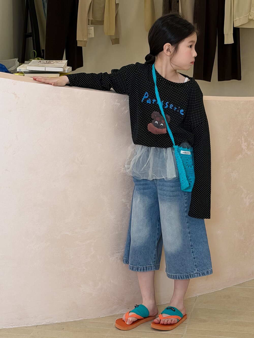 遊び心あふれるドットと愛らしいキャラクター。春の主役になる、柔らかな風合いの長袖Tシャツ