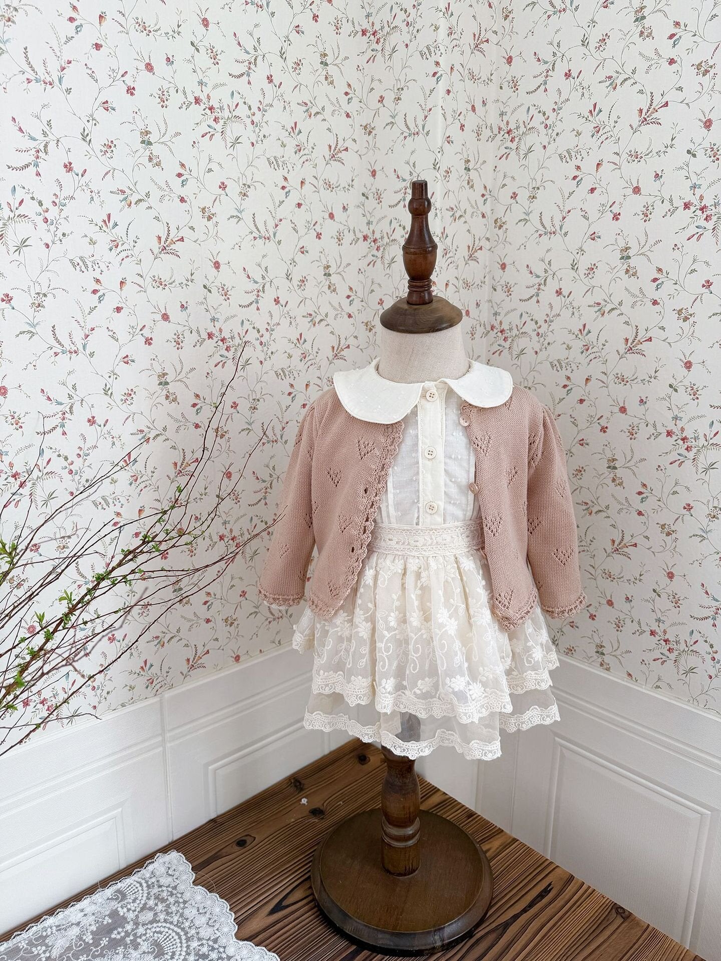 素材は、デリケートなお子様の肌にも嬉しい高品質なコットンをメインに使用。独自のソフト加工を施しているため、レース特有のゴワつきがなく、しっとりと柔らかな肌触りです。内側はパンツ仕様になっているため、活発に動いても安心なデザイン。ウエストは総ゴム仕様でお腹周りを締め付けず、お着替えもスムーズです。落ち着いたアイボリーカラーは、どんなトップスとも相性が良く、上品なコーディネートを完成させてくれます。