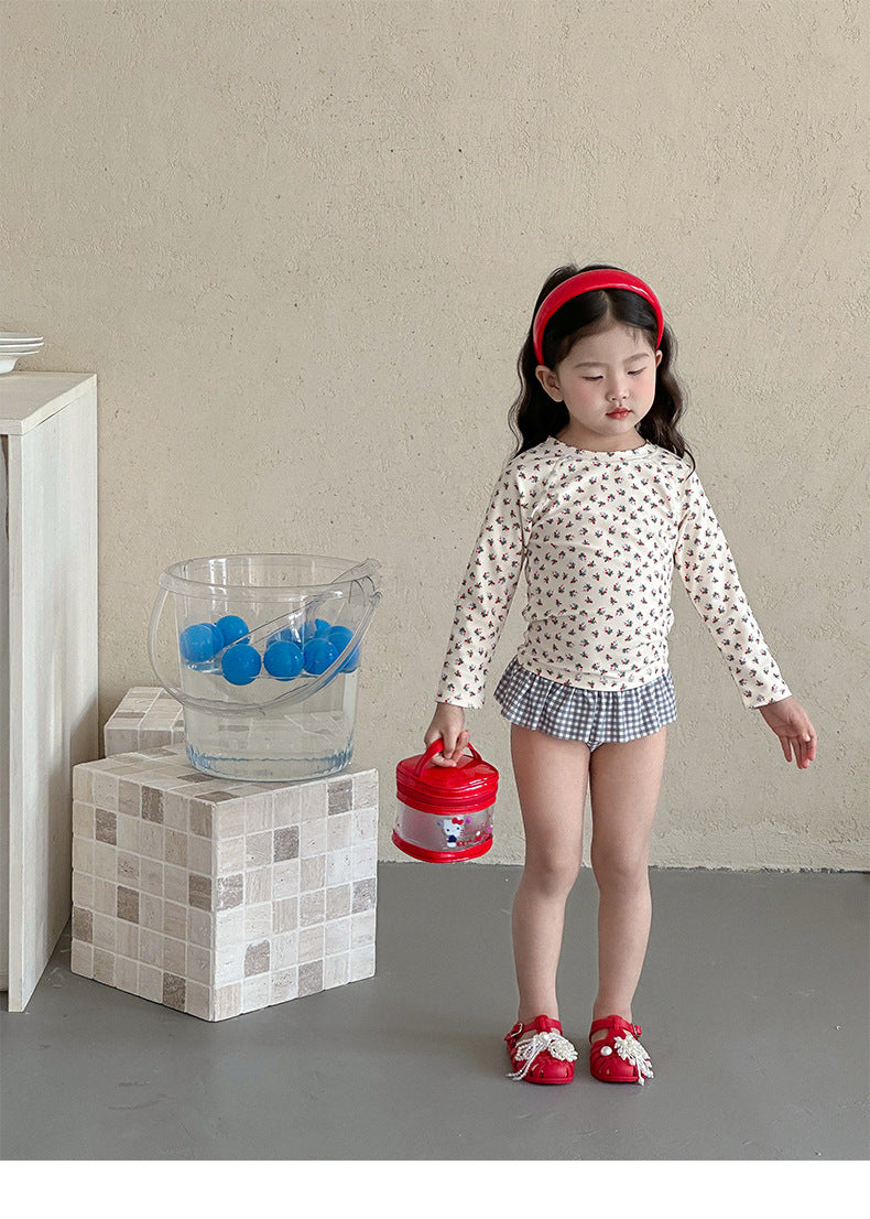UPF50+ 小花柄長袖ラッシュガード & ギンガムフリルショーツ
