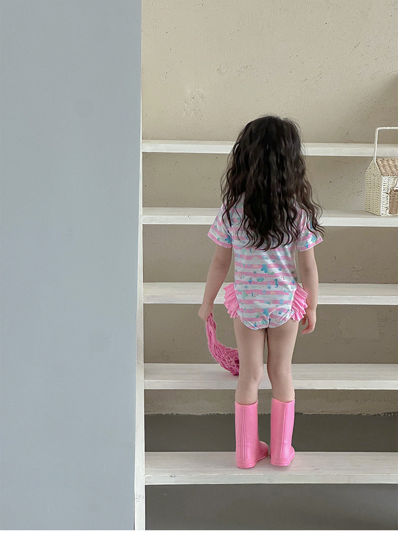 UPF50 Plus Marine Striped Short Sleeve One-piece マリンボーダー 水着【mh0012601】