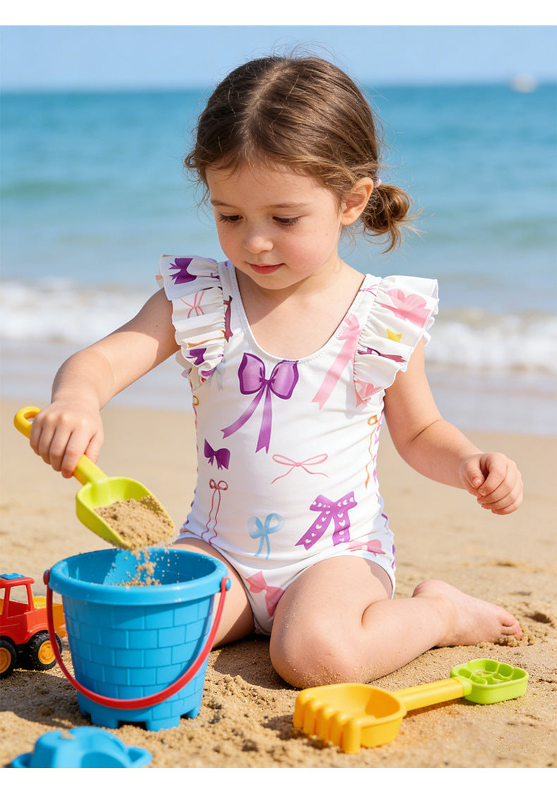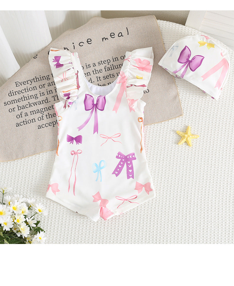 お子様が大好きなリボンモチーフをたっぷり散りばめた、最高にキュートなワンピース水着が登場しました。