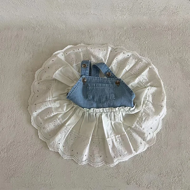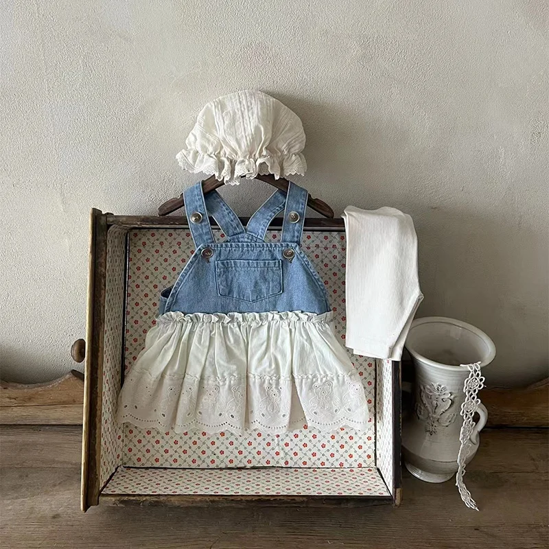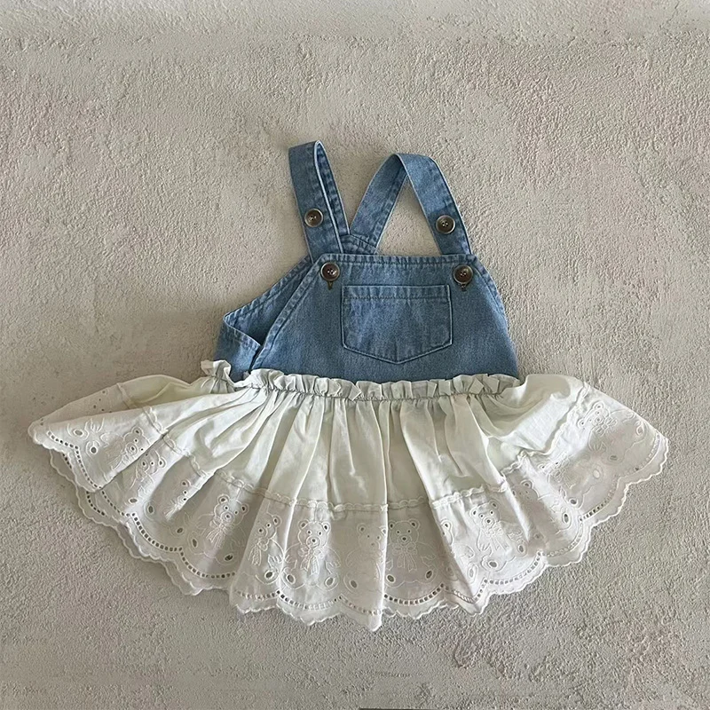ベビー デニム レース ドッキング サスペンダー ワンピース ガールズ