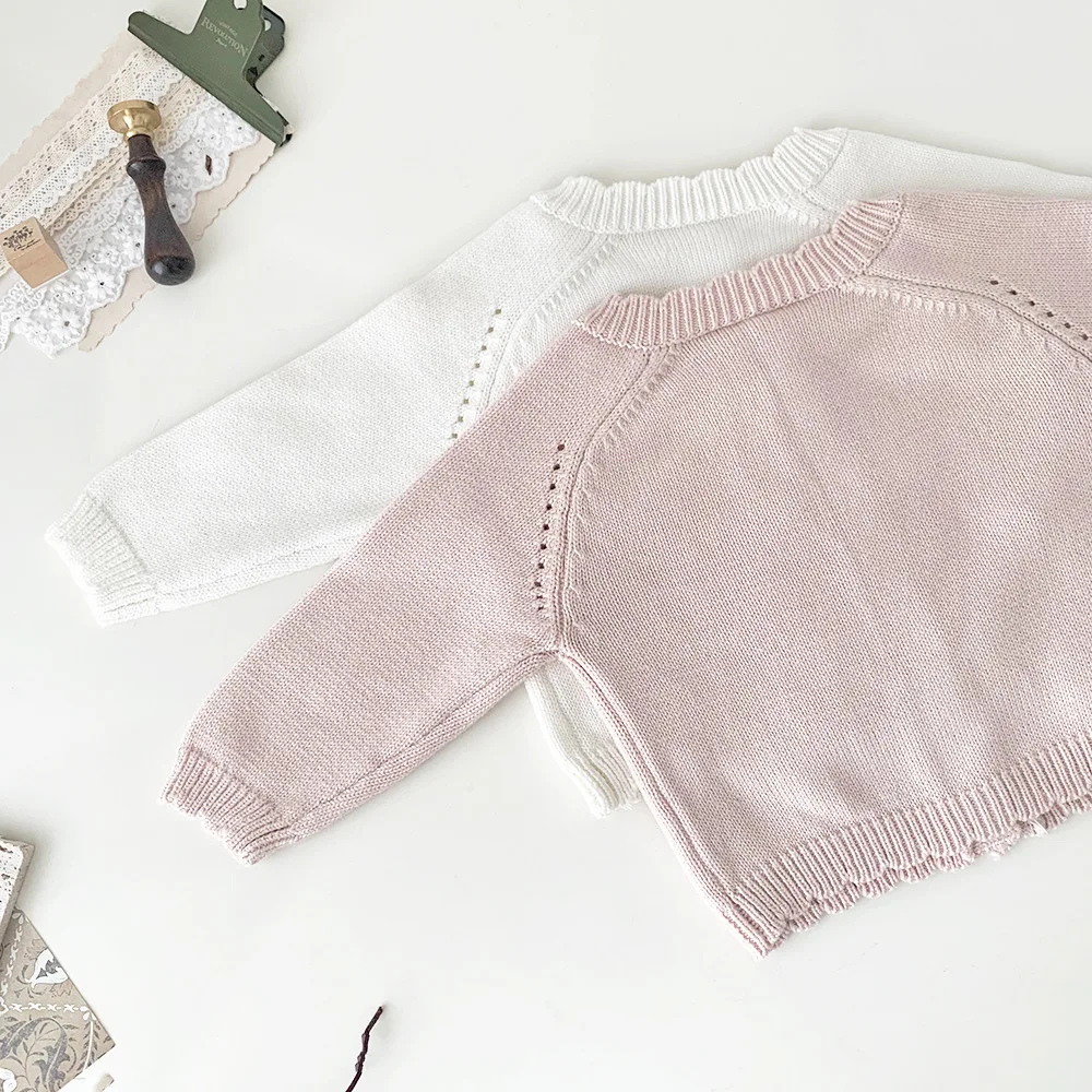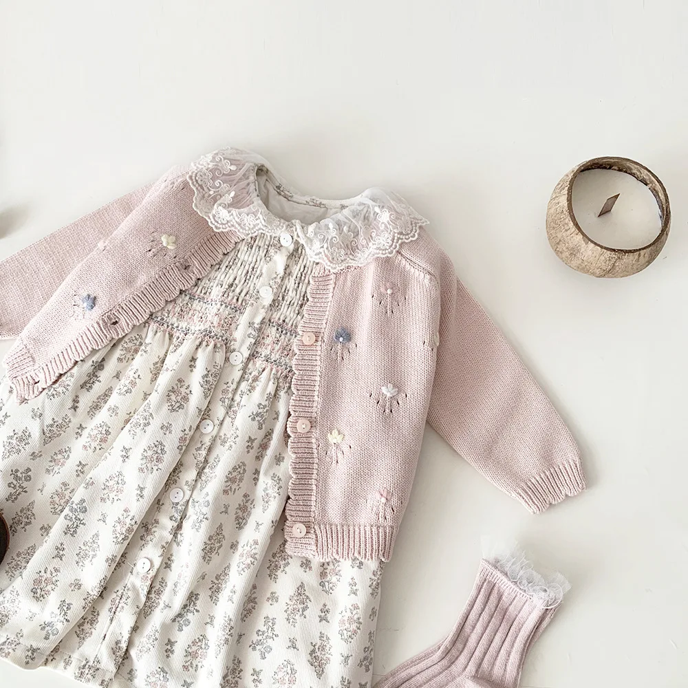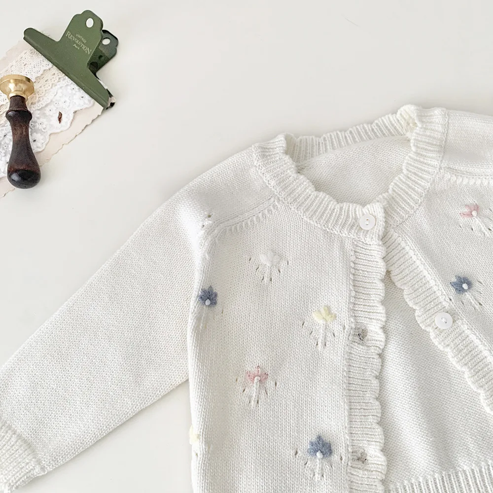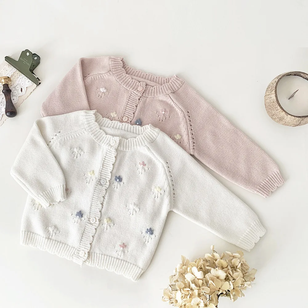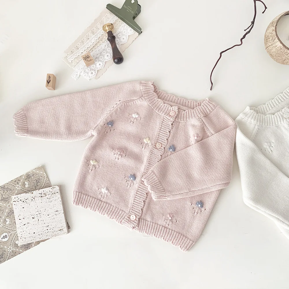 ベビー キッズ ニットカーディガン ジャケット フラワー 花柄 刺繍 アイボリー ピンク 2カラー ガールズ 女の子 子供服