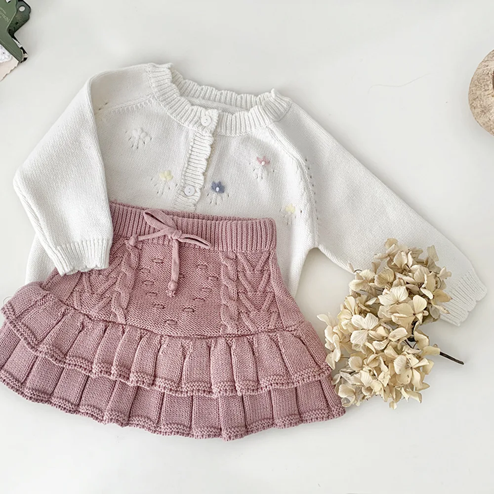 ベビー キッズ をオシャレに演出するベビー キッズ ニットカーディガン ジャケット。肌触りの良い素材で、花柄の刺繍のアクセントが可愛いアイボリーとピンクの2カラーからなるガールズ専用のモデルです。