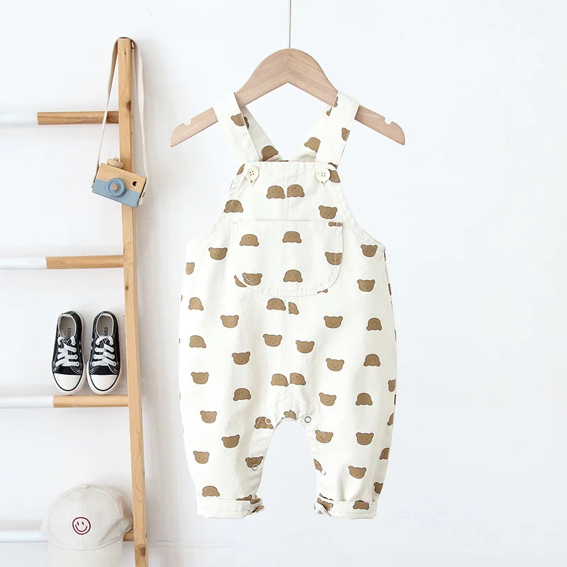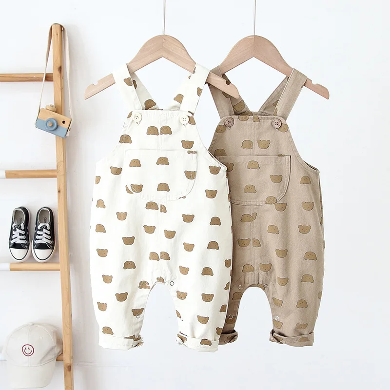 ベビーオーバーオール サスペンダーパンツ サロペット ベアくまプリント 2カラー