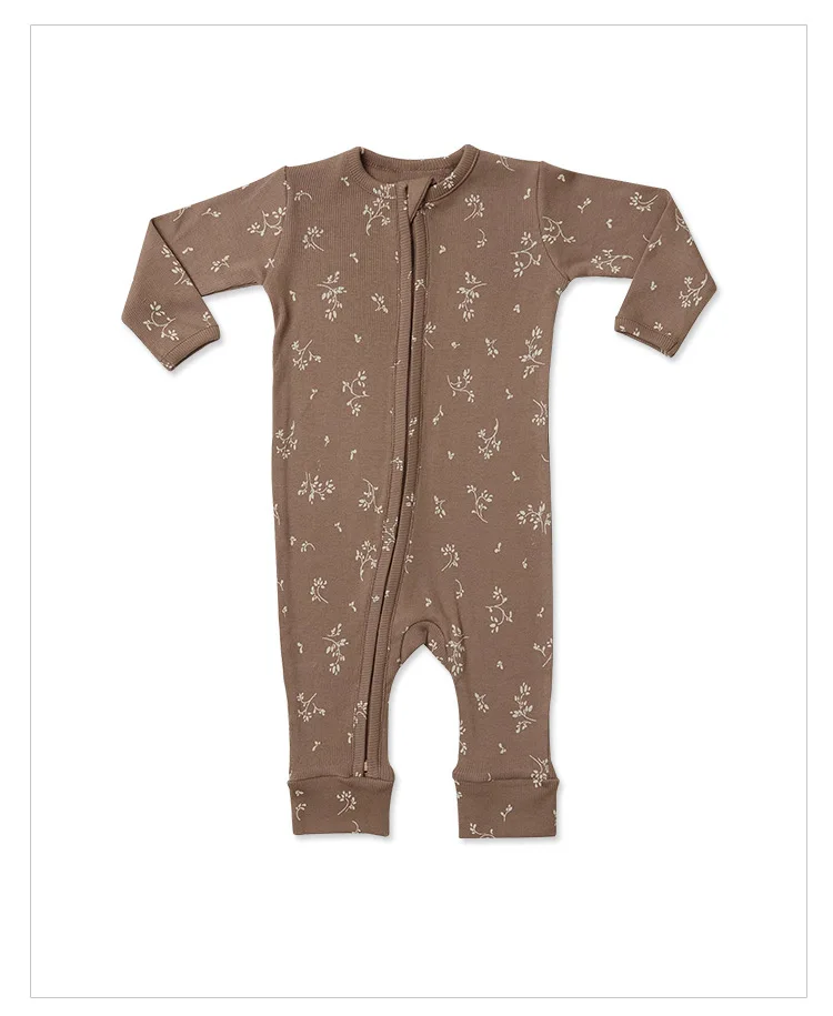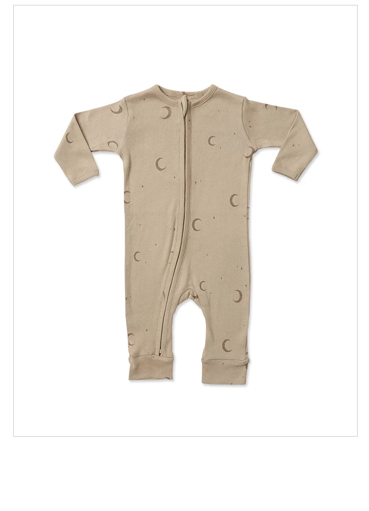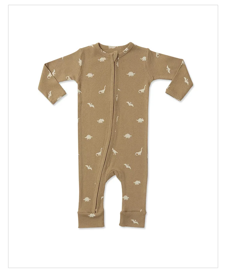 ベビー ジップアップ 長袖 ジャンプスーツ ロンパース ダイナソー 恐竜 オリーブ ムーン【mh0001481】