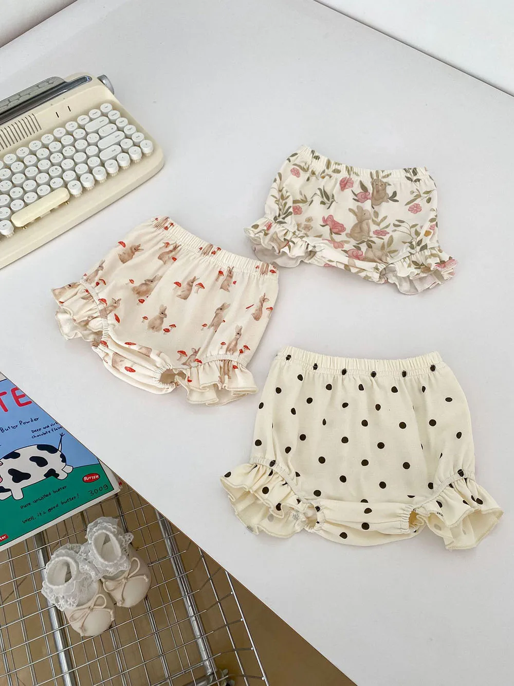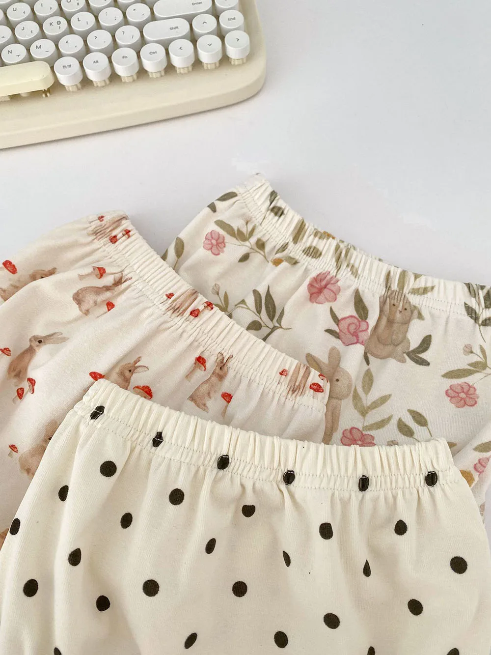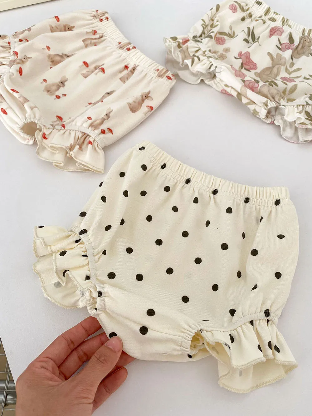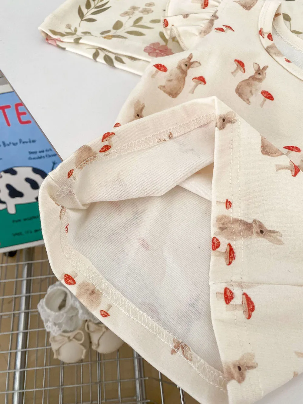 ベビーセットアップ 2点セット フリルスリーブTシャツ+ブルマパンツ うさぎラビット/マッシュルーム/水玉ドット【mh0005491】