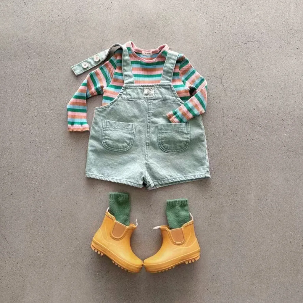 快適でスタイリッシュなデニムのサロペットパンツです。ベビーオーバーオールとしても使えるデザインで、子供たちの夏のおしゃれをサポートします。サスペンダー付きで、しっかりとしたコットン素材で作られているので、お子様の動きを妨げません。着心地も良く、オシャレなルックスでお子様の自信をサポートします。2カラーから選べるので、お子様の好みに合わせてコーディネートが楽しめます。