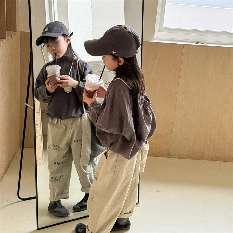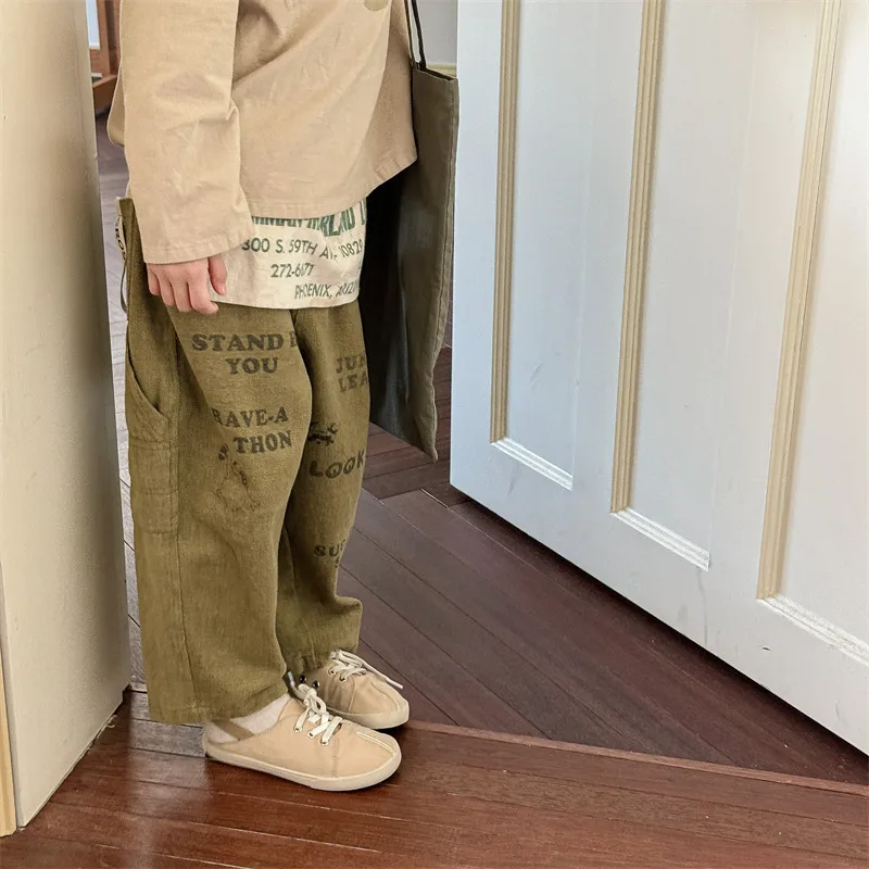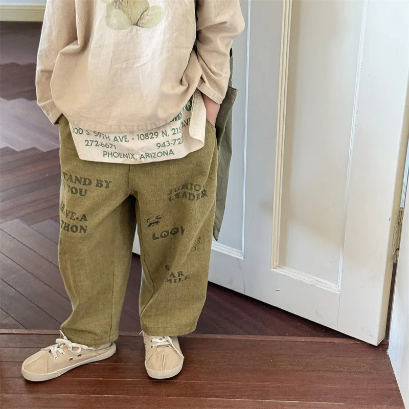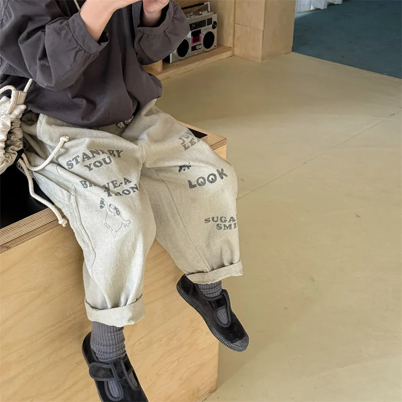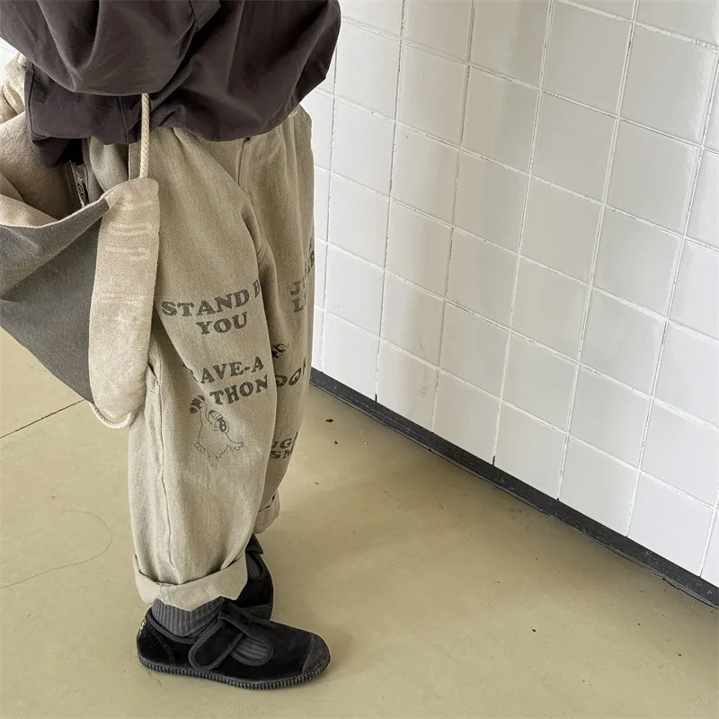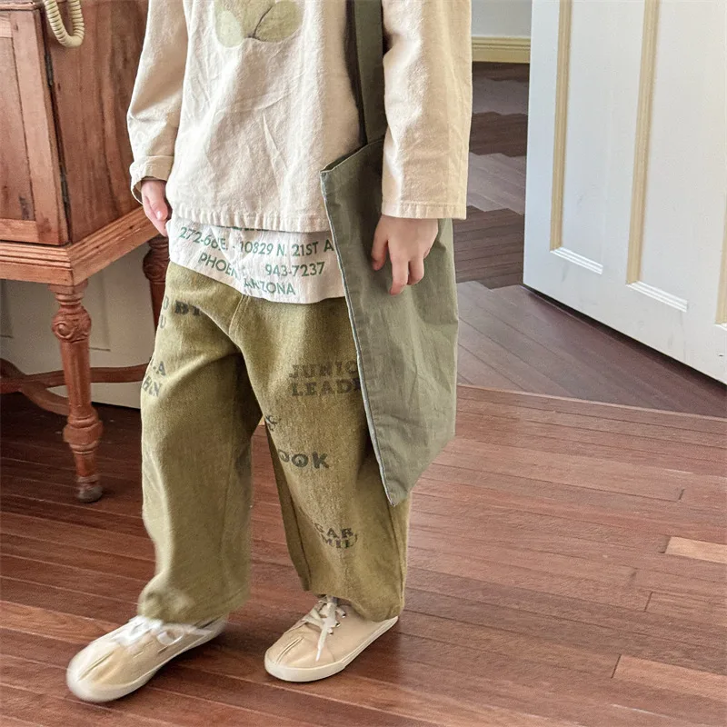 キッズパンツ ルーズロングパンツ レターロゴプリント 2カラー【mh0006605】