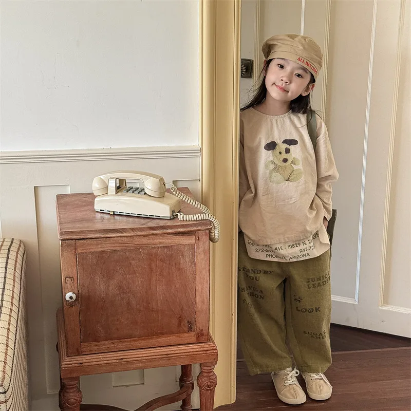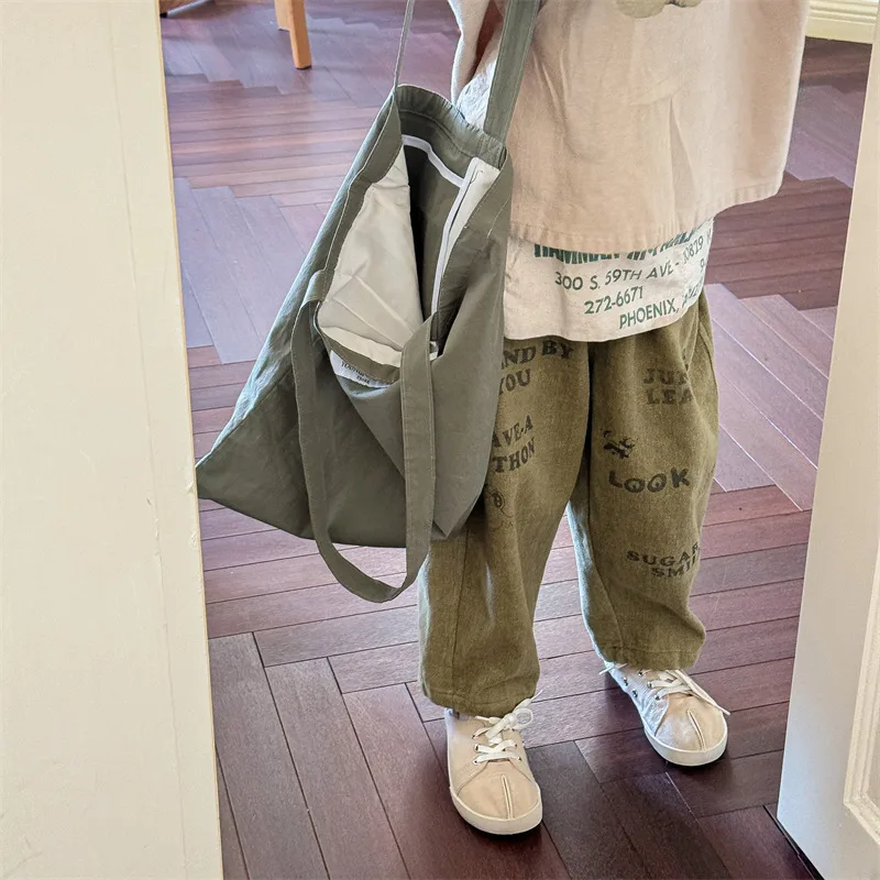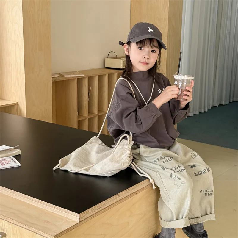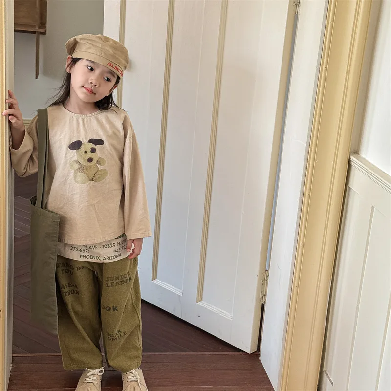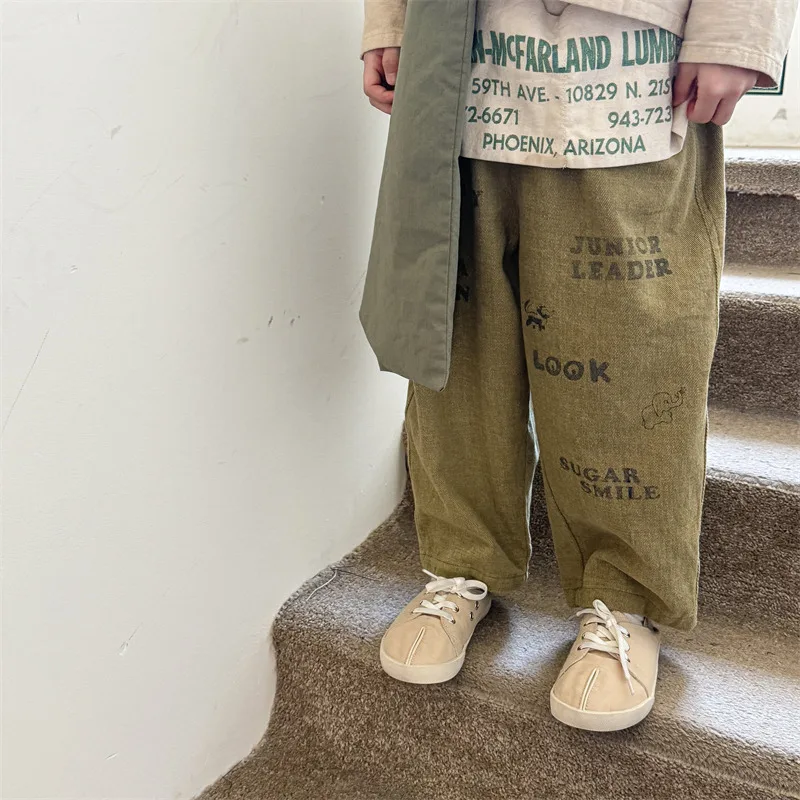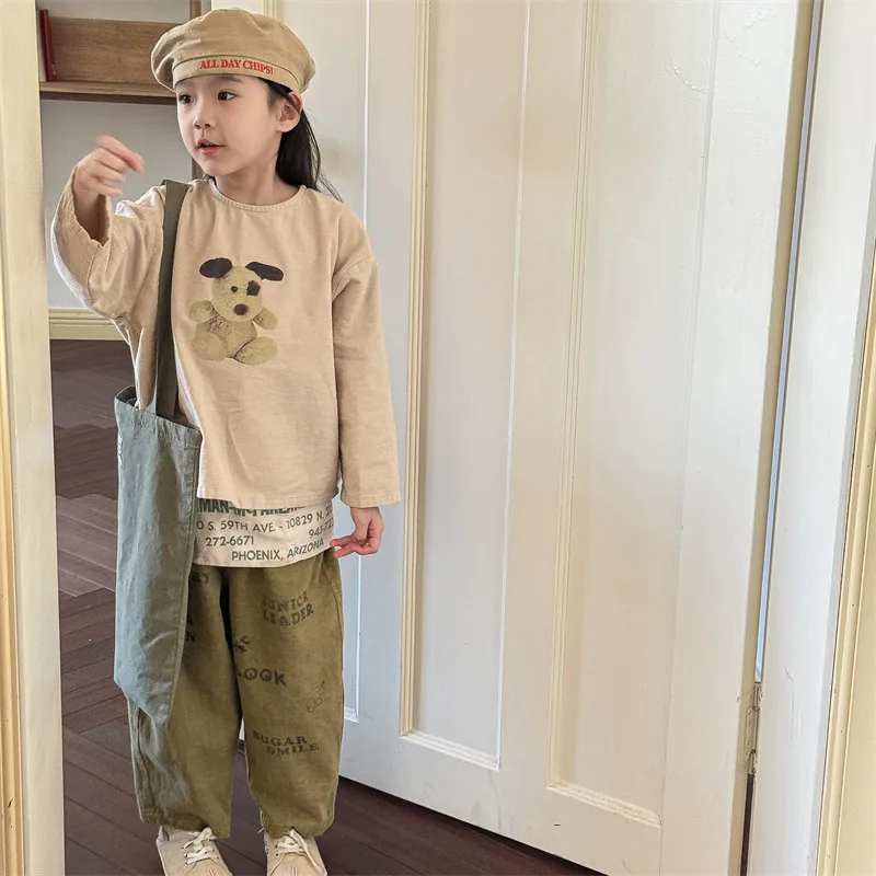 キッズパンツ ルーズロングパンツ レターロゴプリント 2カラー【mh0006605】