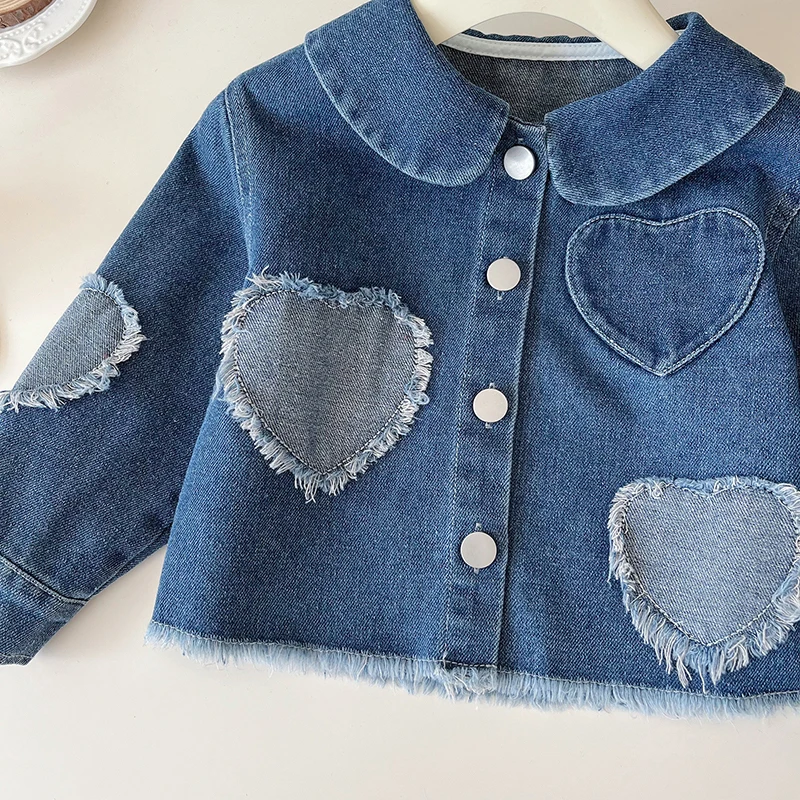 #キッズファッション #デニムセットアップ #ハートデザイン #パッチワーク #秋コーデ #おしゃれキッズ #ガールズコーデ