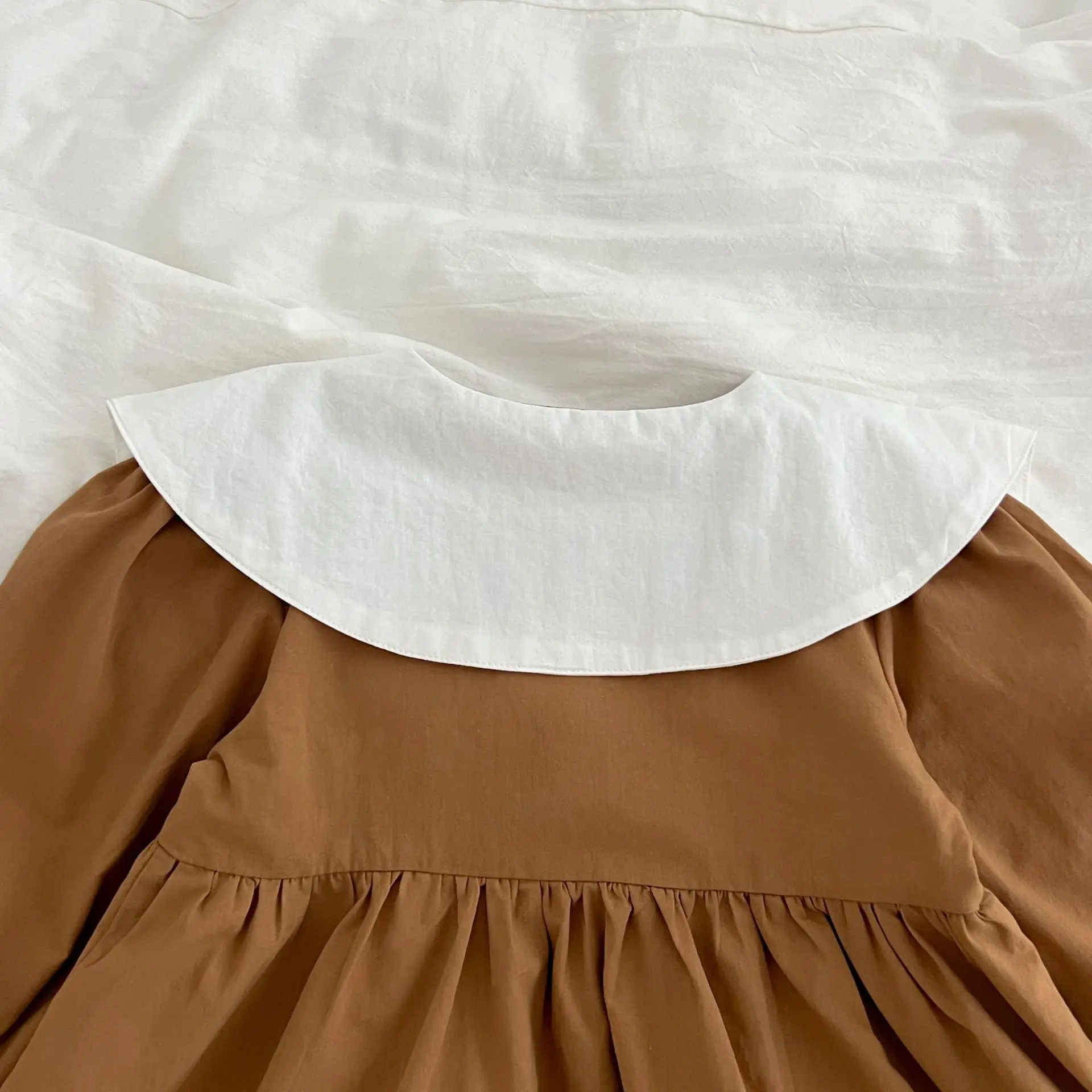 ベビーロンパース/キッズワンピース ギザギザ襟長袖パフスリーブボディスーツ/ワンピース リンクコーデ 姉妹 お揃いコーデ【mh0007286】