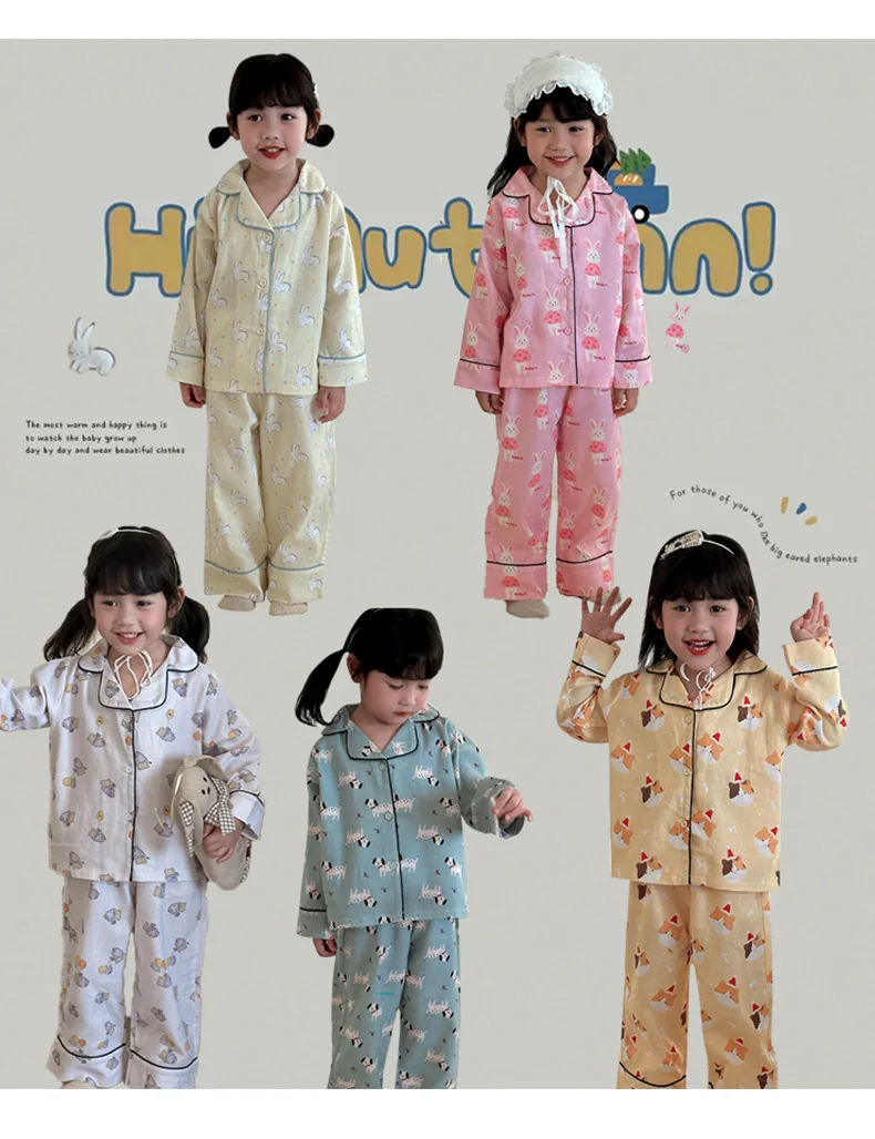 キッズパジャマセット アニマルプリント長袖シャツ+ロングパンツ 5カラー【mh0007314】