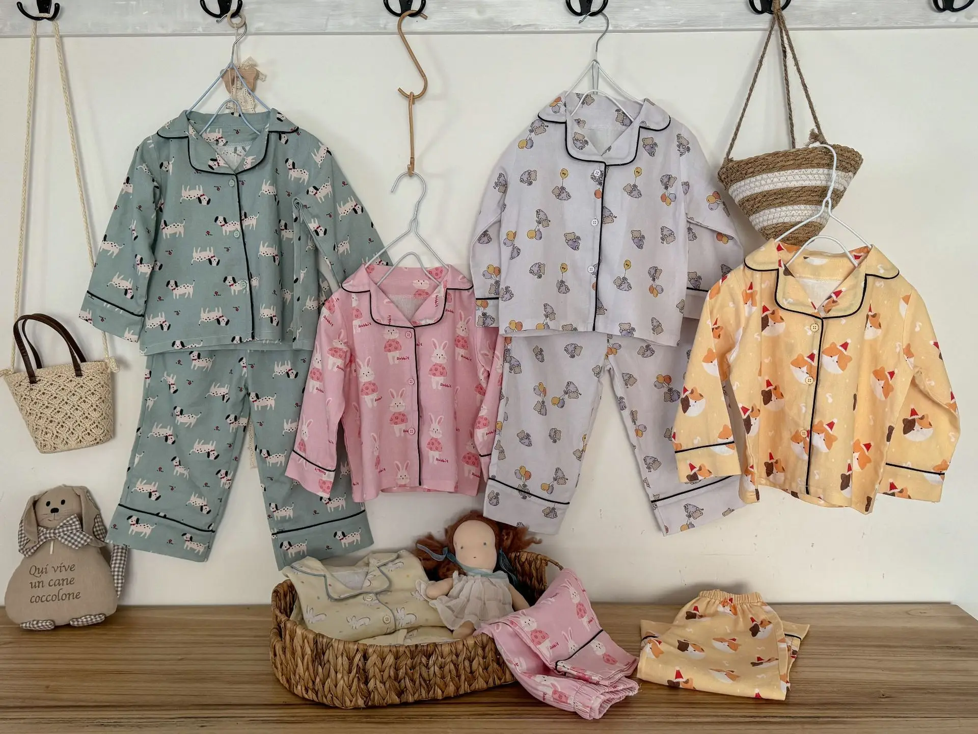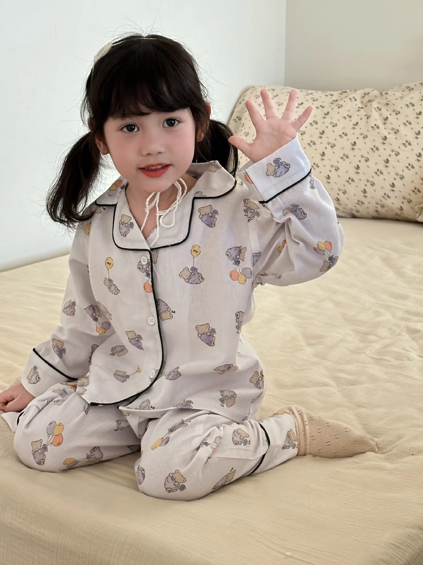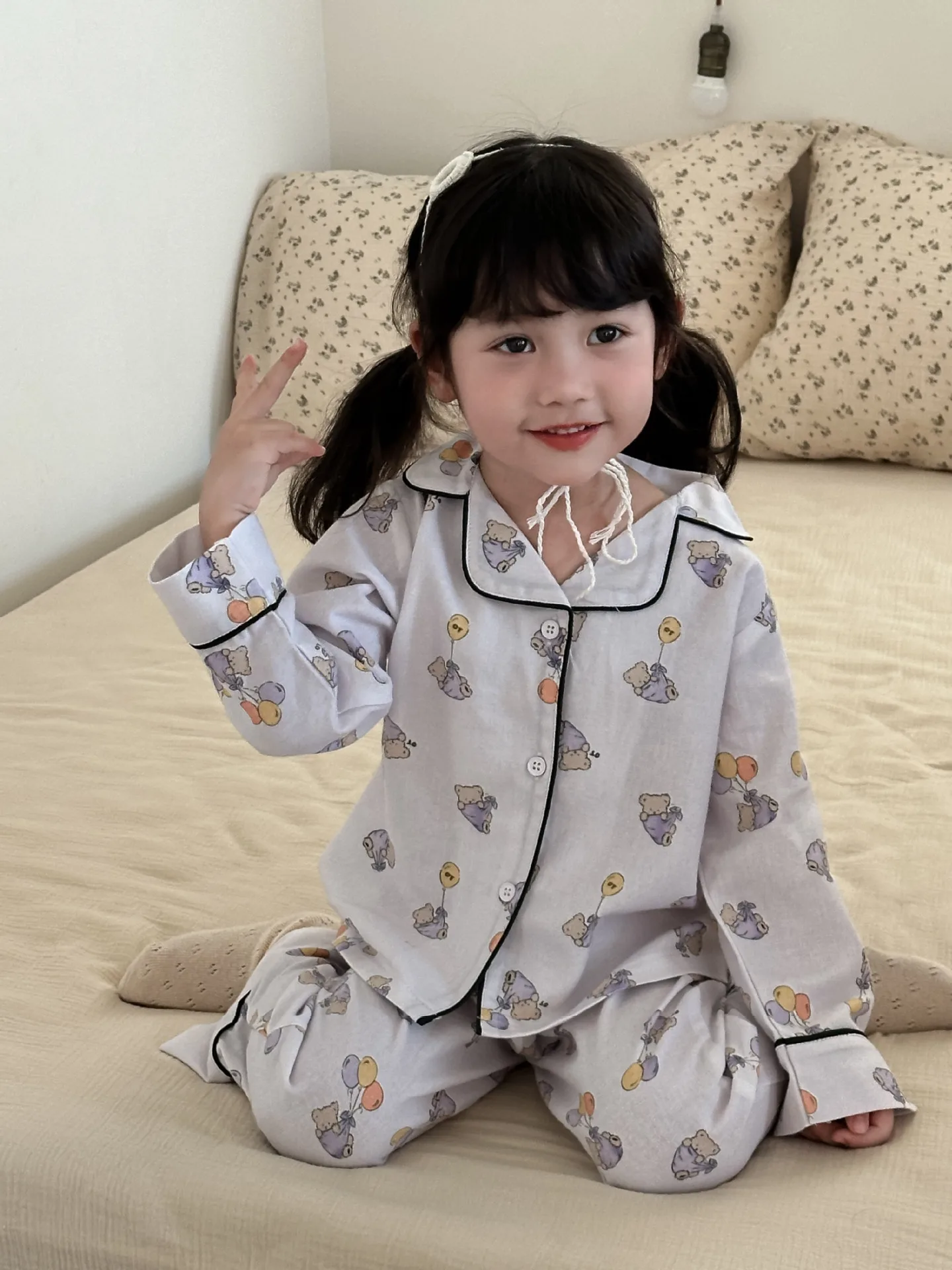#キッズパジャマ #アニマルプリント #長袖シャツ #ロングパンツ #子供服 #カジュアルスタイル #ホームウェア