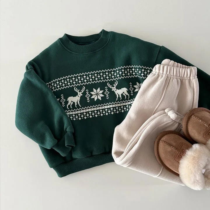 キッズトップス トナカイ鹿エルクスノーフレイクプリント裏フリース長袖スウェットシャツトレーナー 3カラー【mh0007506】