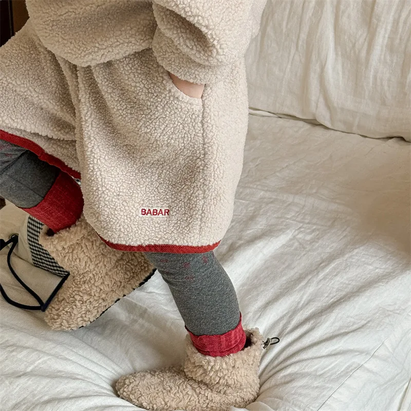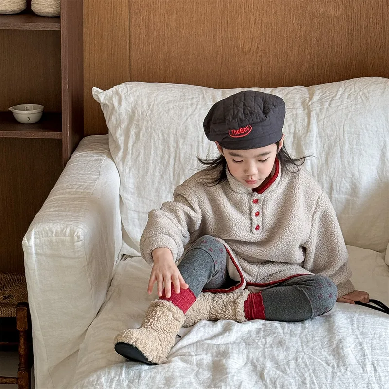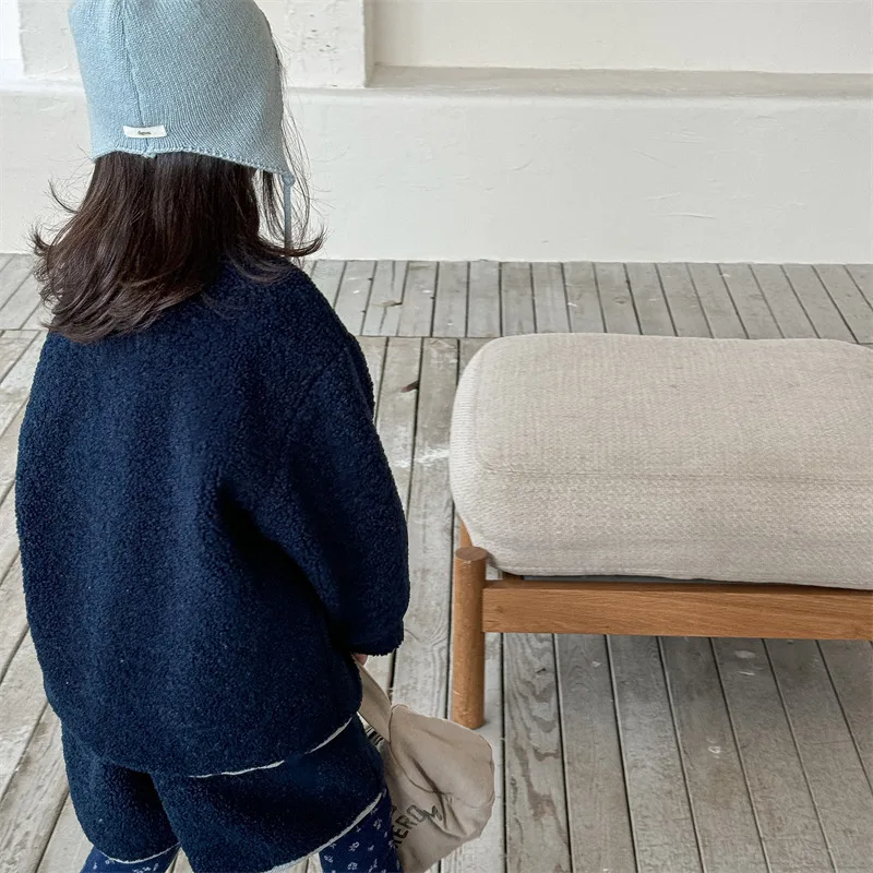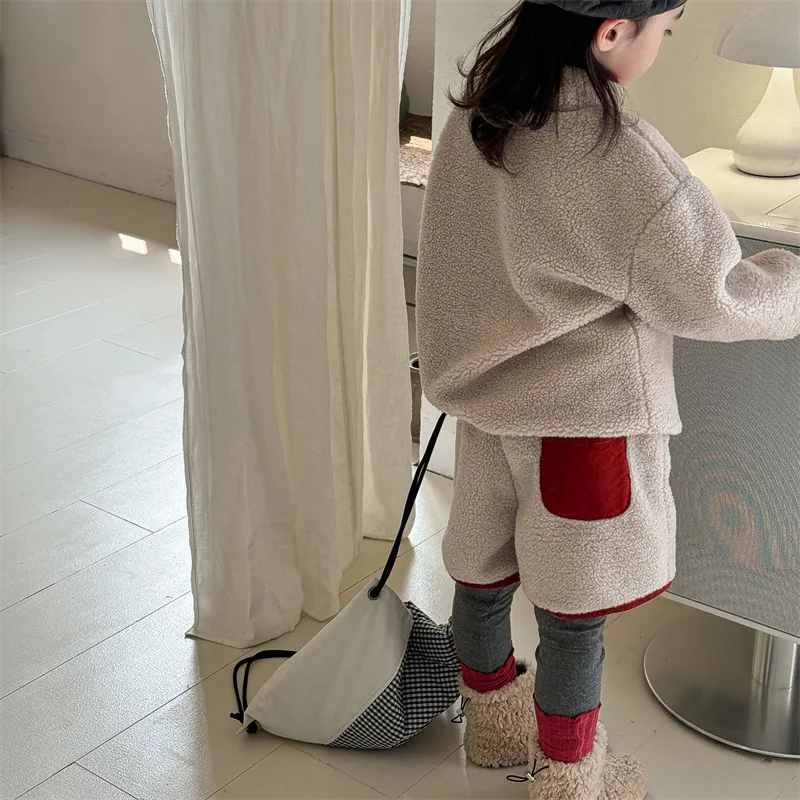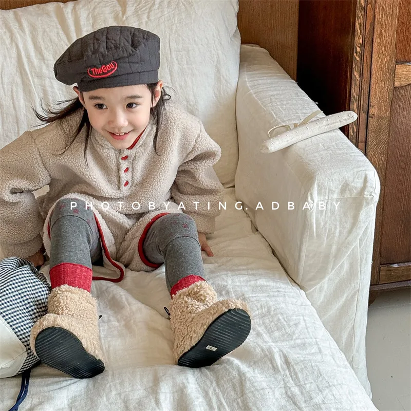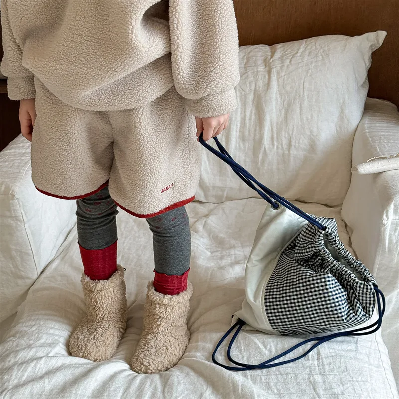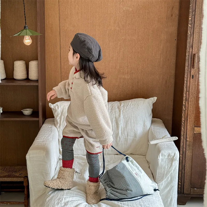 スタンドカラーのボアフリーススウェットシャツとショートパンツの2点セットは、寒い日でも暖かく快適に過ごせるアイテムです。柔らかなフリース素材が肌に優しく、温かさをしっかりと保ちます。スウェットシャツはスタンドカラーで首元もしっかりと保温し、ショートパンツは動きやすく、お子さまの活発な動きに対応します。シンプルでありながら、ボアフリースならではの暖かさと可愛らしさが特徴で、普段使いやお出かけにもぴったりです。寒い季節のコーディネートに役立つ、実用的かつおしゃれなセットです。