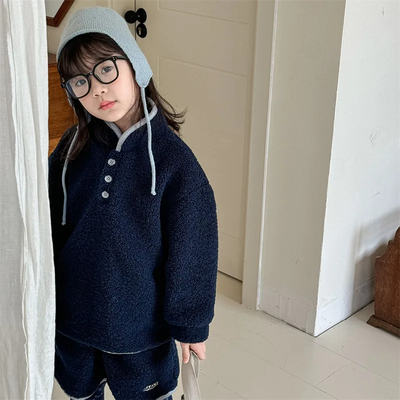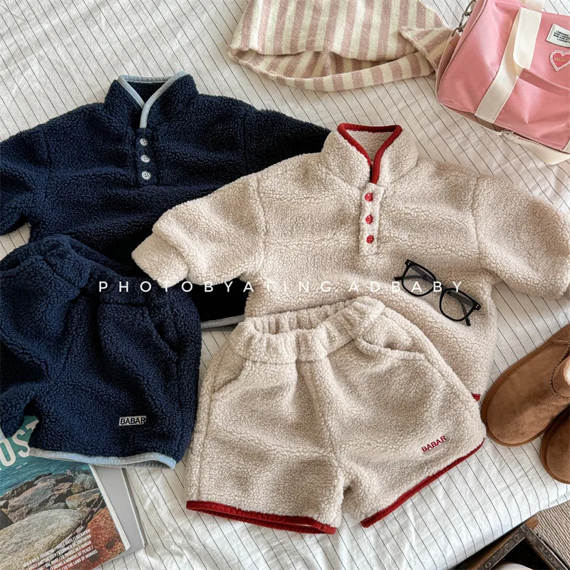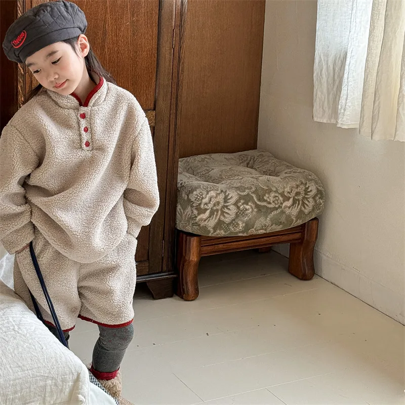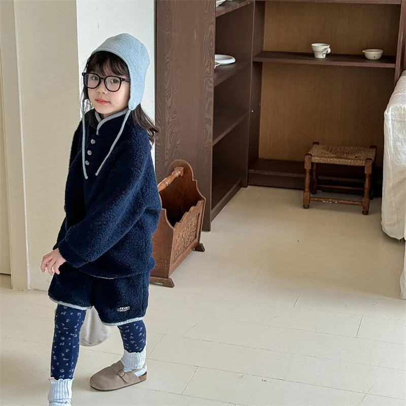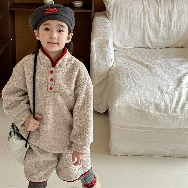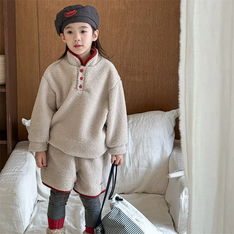 キッズセットアップ 2点セット スタンドカラーボアフリーススウェットシャツ+ショートパンツ【mh0007766】