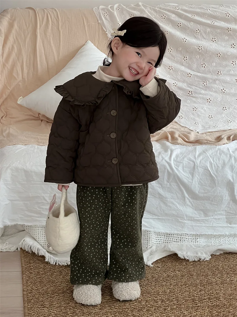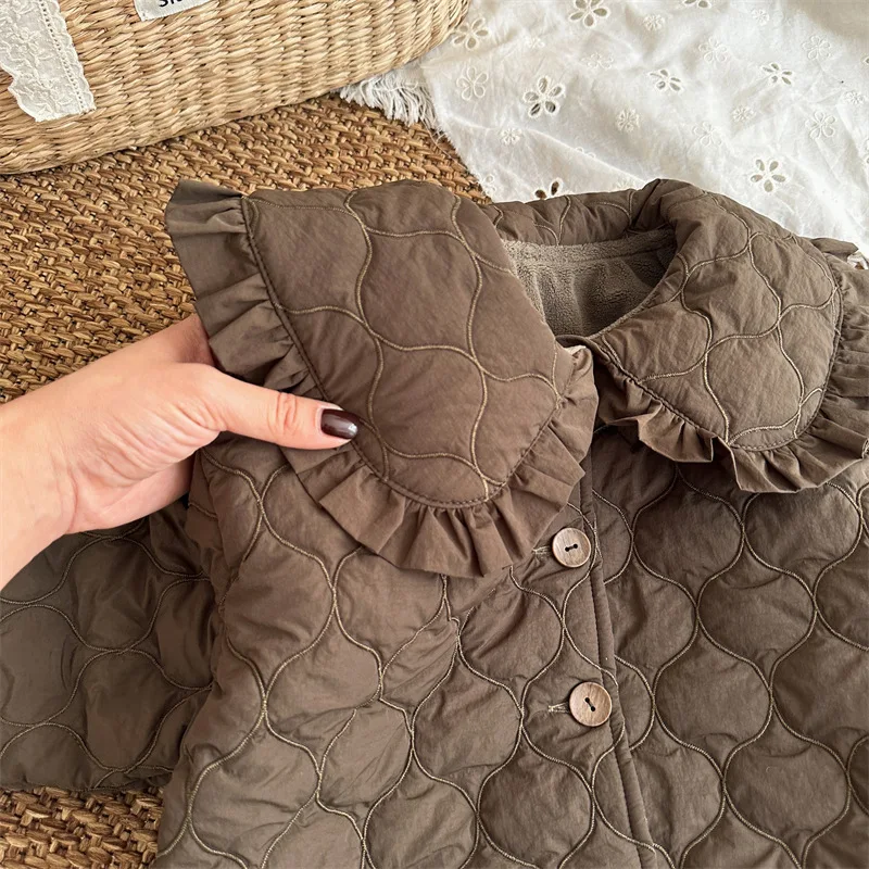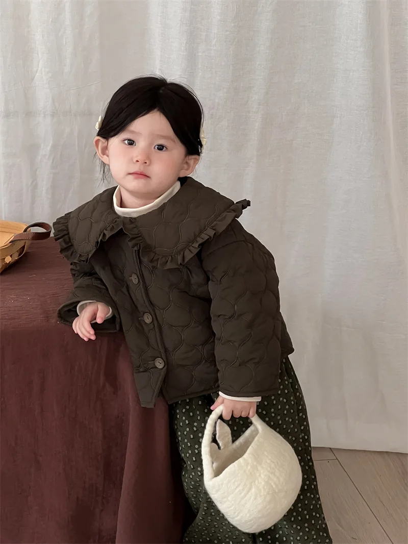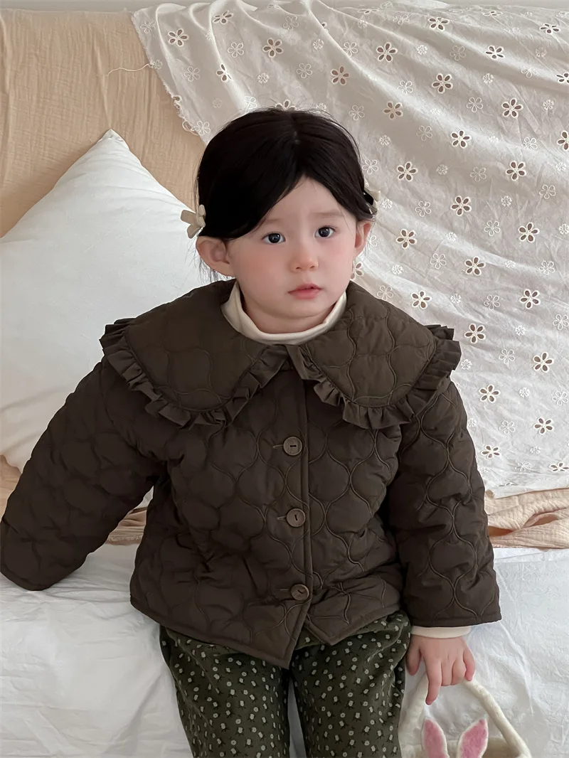 #キッズアウター #フリル襟 #ウェーブキルティング #パデッドコート #韓国子供服 #暖かいジャケット #女の子アウター
