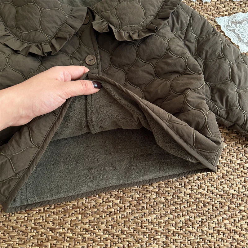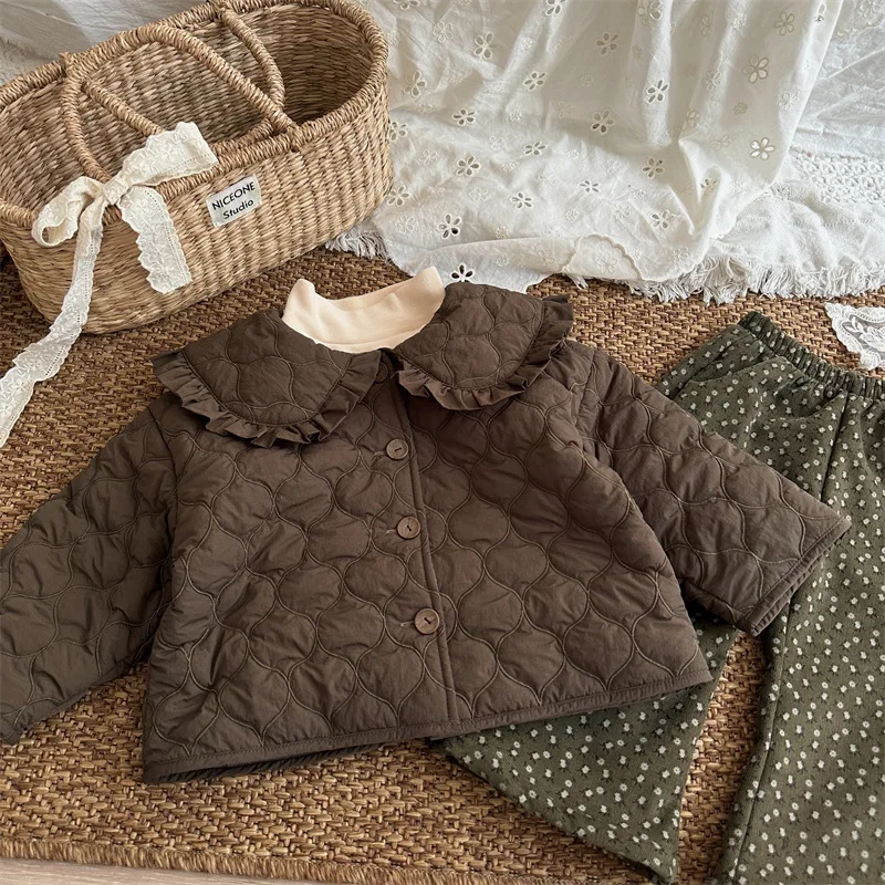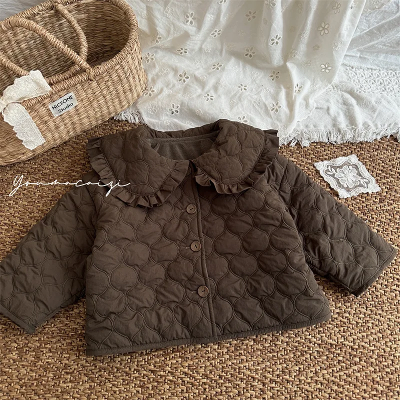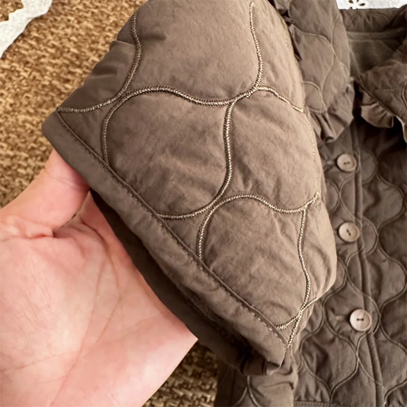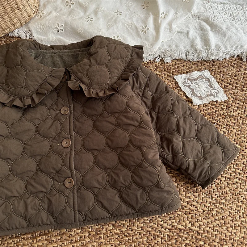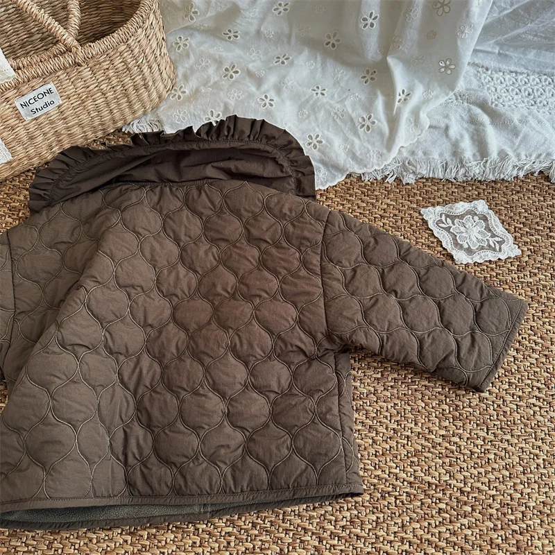 #キッズアウター #フリル襟 #ウェーブキルティング #パデッドコート #韓国子供服 #暖かいジャケット #女の子アウター