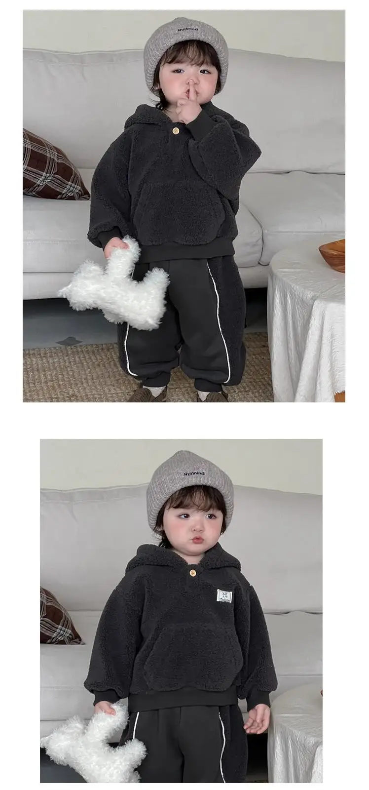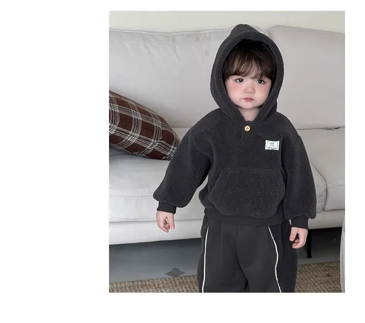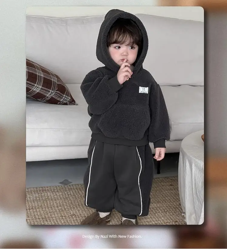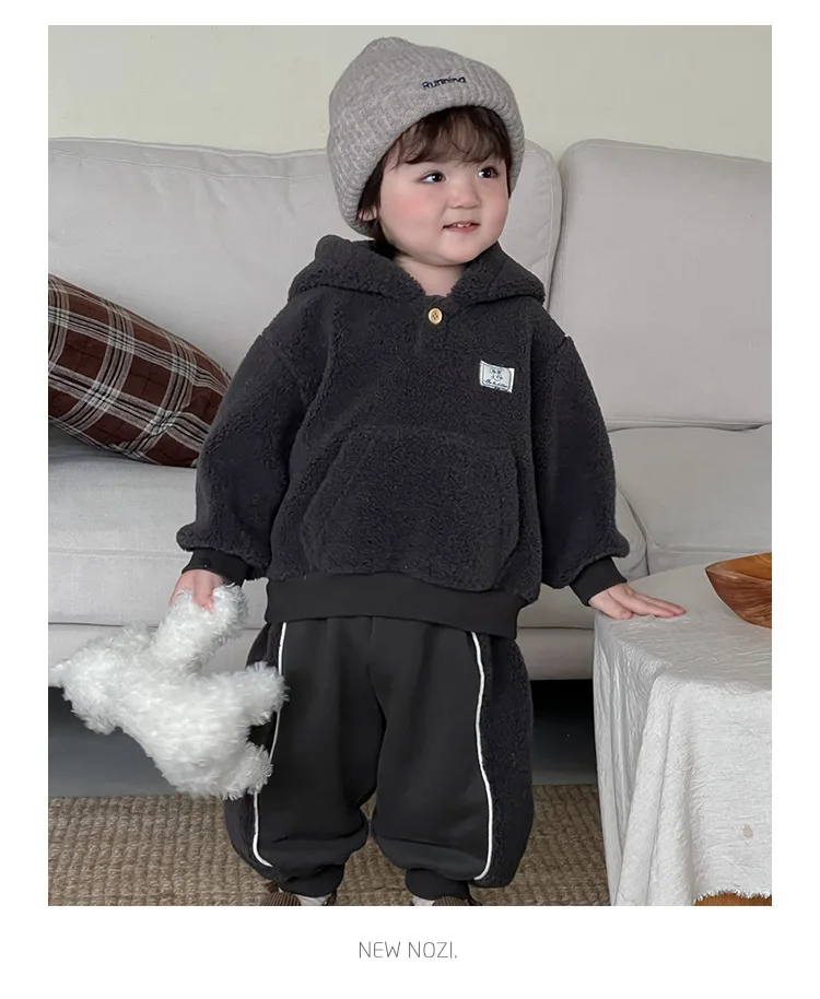 #ベビー服 #キッズファッション #ボアフリース #フーディパーカー #スウェットパンツ #韓国子供服 #冬用セットアップ