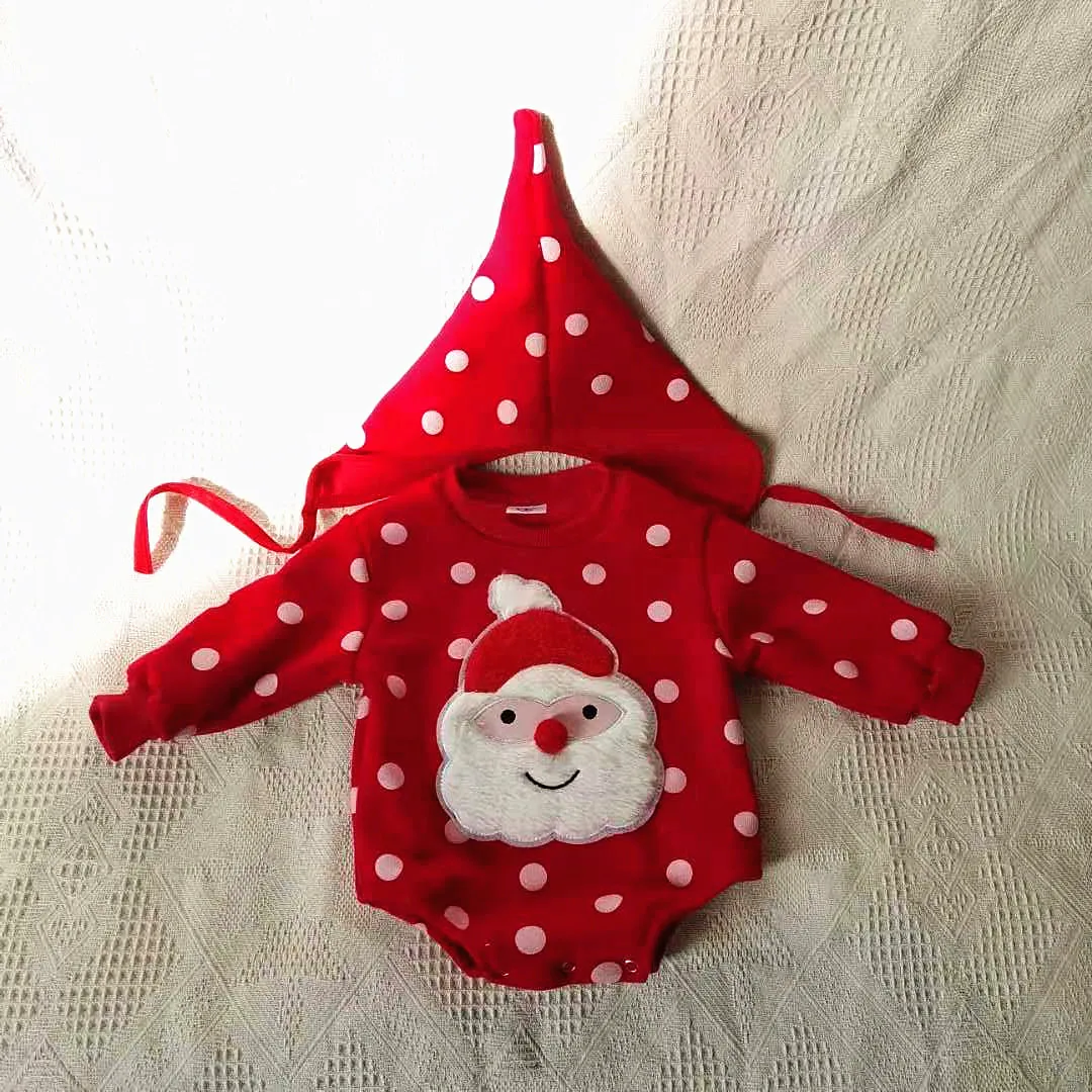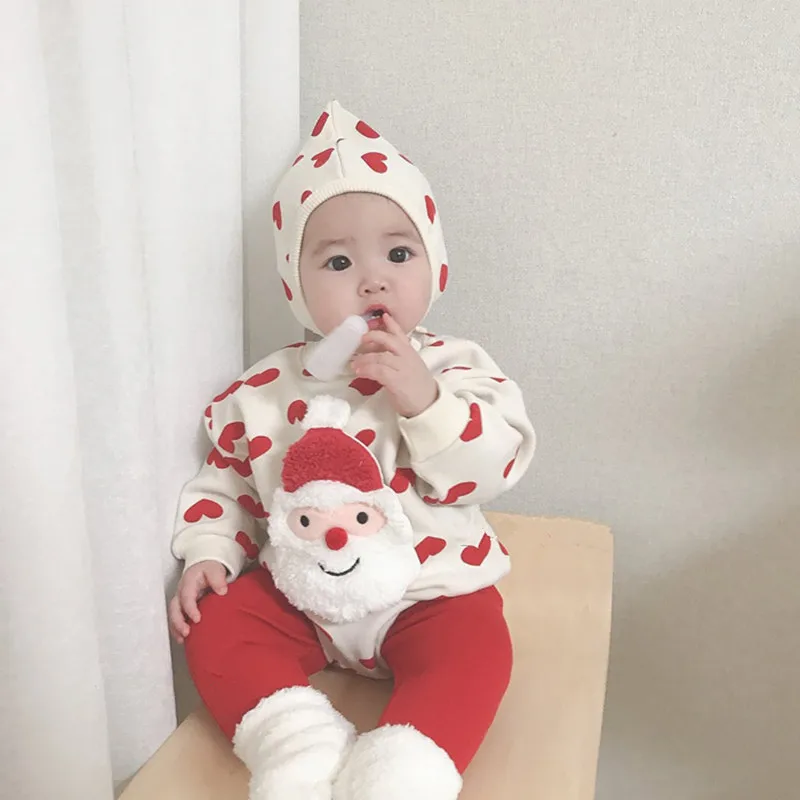 ベビーロンパース/タイツ クリスマスサンタ長袖ボディスーツ+ボンネット帽子/足つきレギンスパンツ【mh0008055】