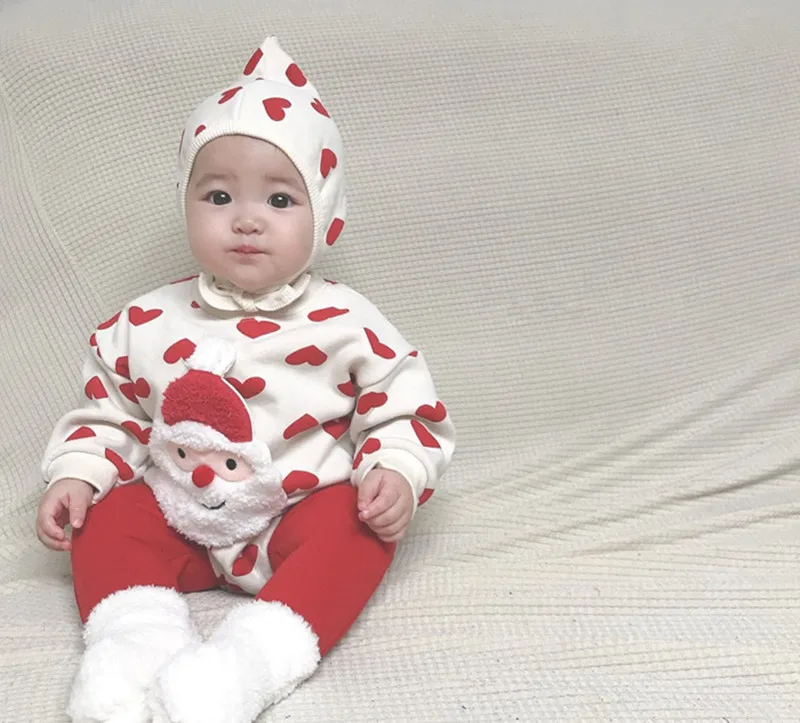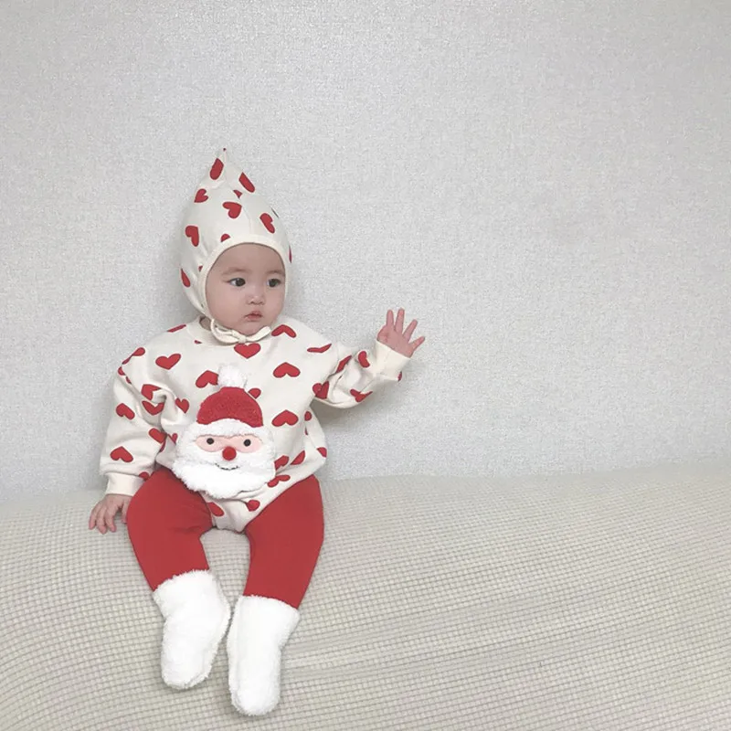 #ベビー服 #クリスマスコーデ #サンタボディスーツ #足つきレギンス #ボンネット帽子 #冬用ベビーウェア #赤ちゃんイベント服